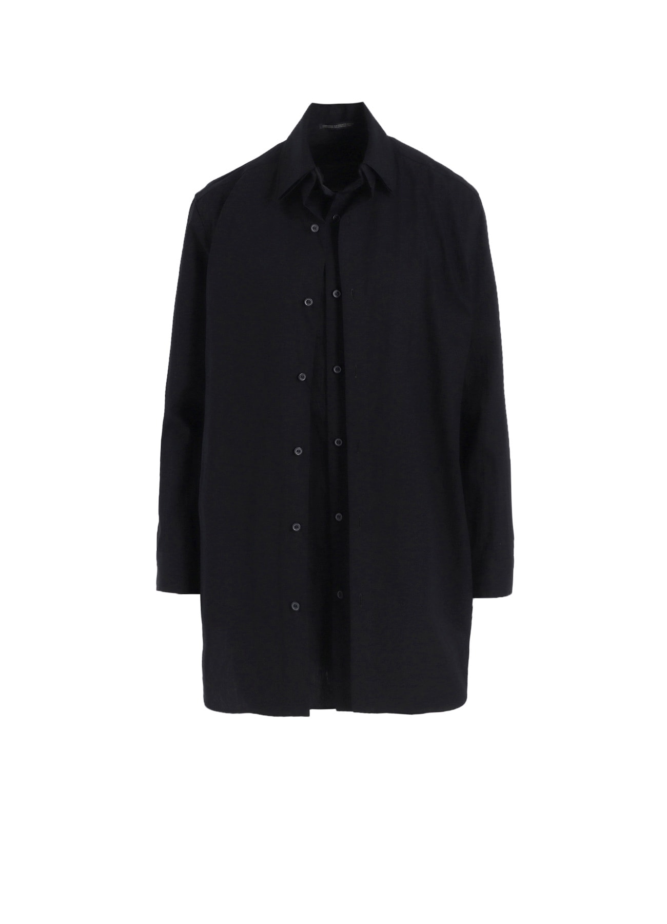 前立てが二重になったデザインブラウス。高密度で綺麗な表面感のブロード生地を使用。適度な光沢感があり、やや薄手ながら透け感のない素材です。ハリのあるサラッとした肌触りが心地よく、シワ洗い加工を施すことで、柔らかな味のある自然な風合いになっています。釦の留め方でシルエットの変化をお楽しみ頂けます。モデル着用画像はサンプルアイテムを使用しています。製品とサイズや風合いが異なる場合がございます。詳しくはSIZE INFOをご確認下さい。