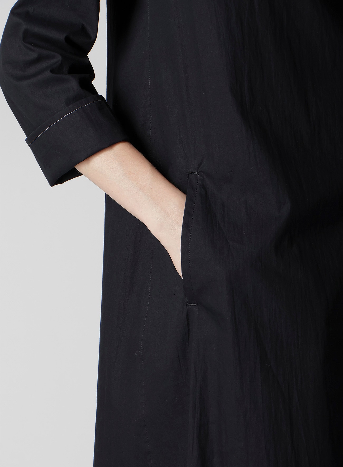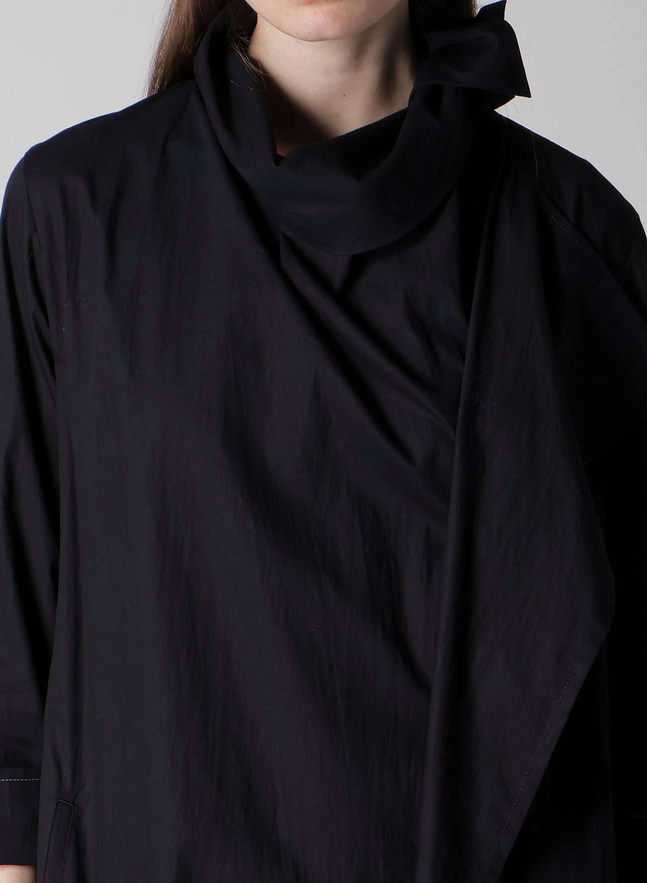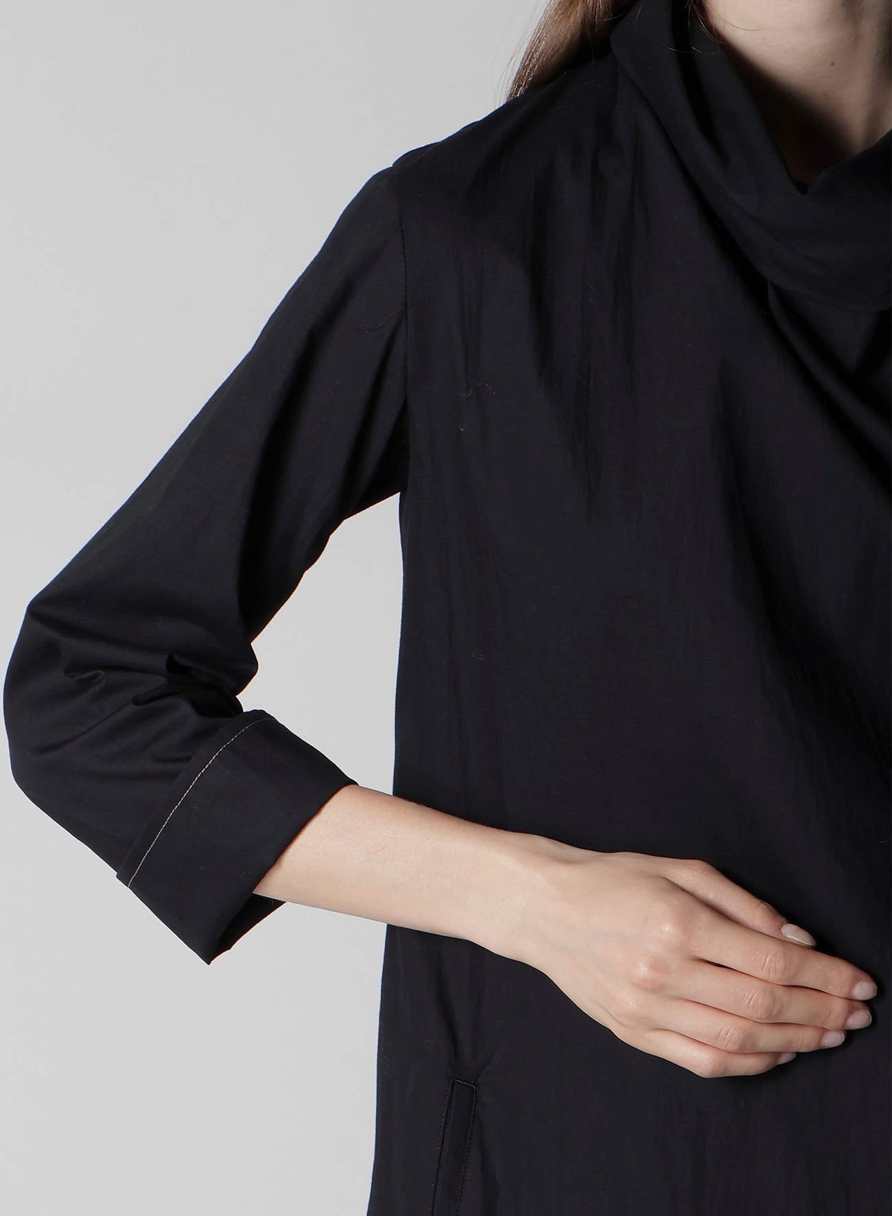 高密度で綺麗な表面感のブロード生地を使用。適度な光沢感があり、やや薄手ながら透け感のない素材です。ハリのあるサラッとした肌触りが心地よく、シワ洗い加工を施すことで、柔らかな味のある自然な風合いになっています。素材感も相まって、シルエットが美しく際立った1枚です。