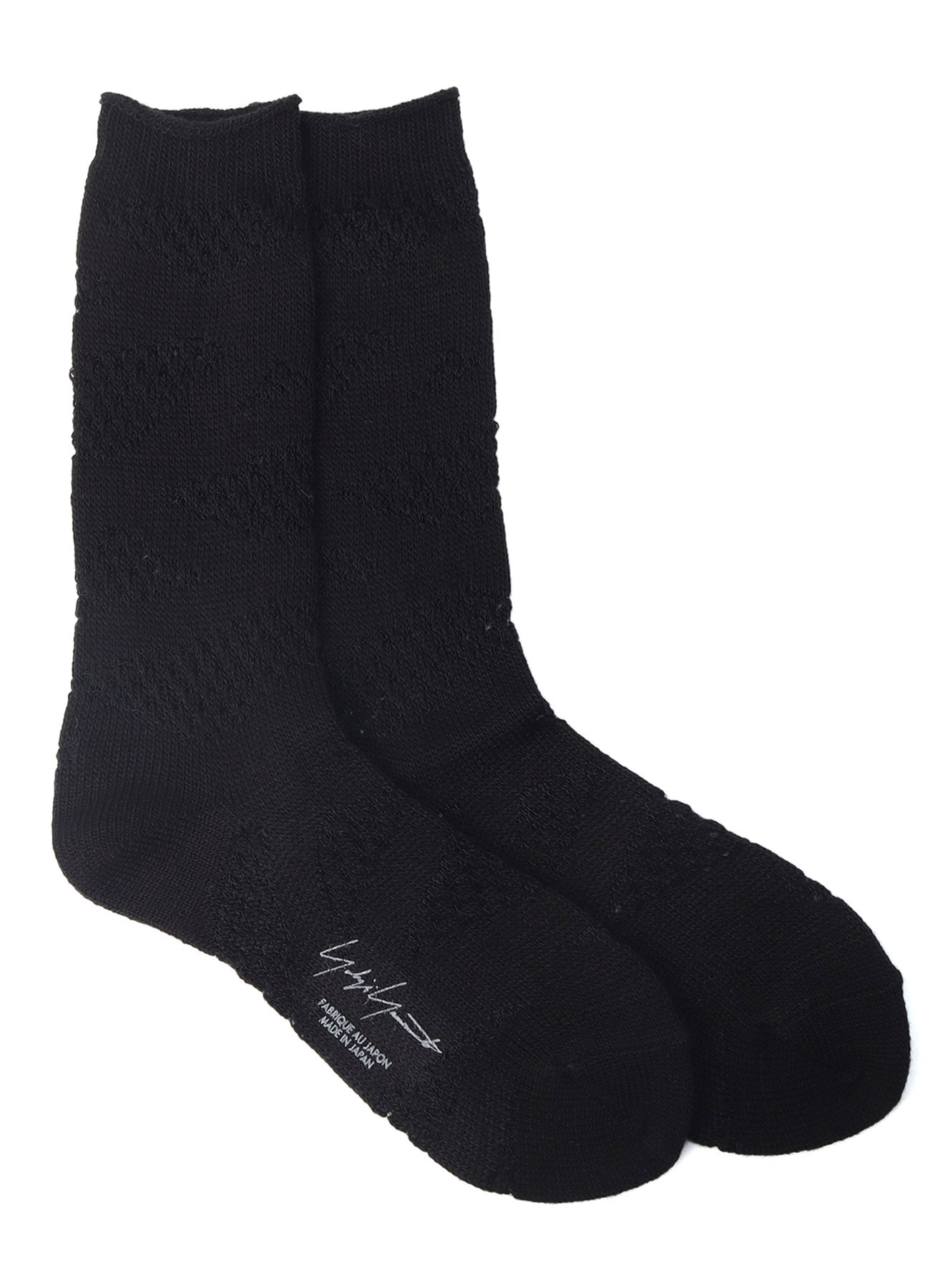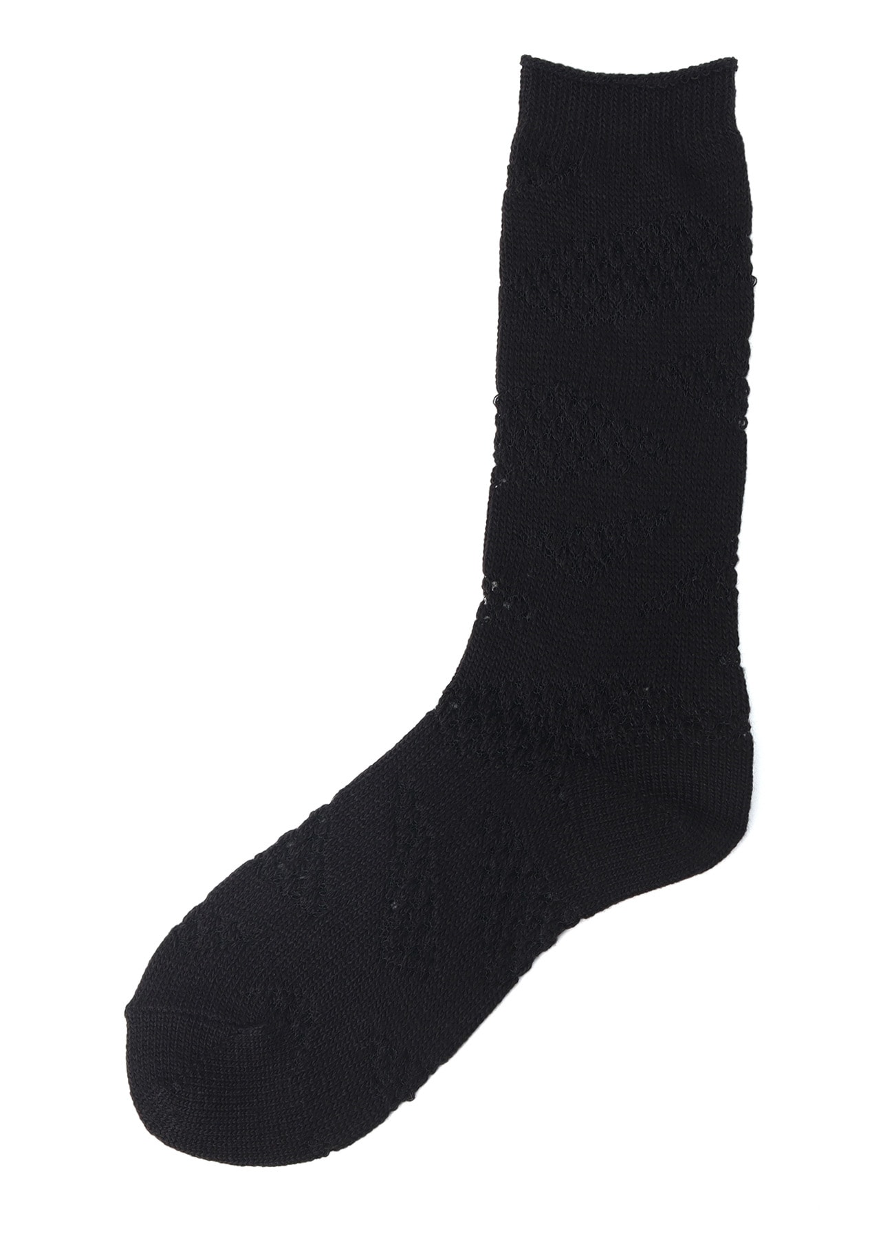 ラインデザインが特徴のリブソックス。ウール混の太番手の糸と、テグスの透け感でラインデザインを表現したソックスです。
