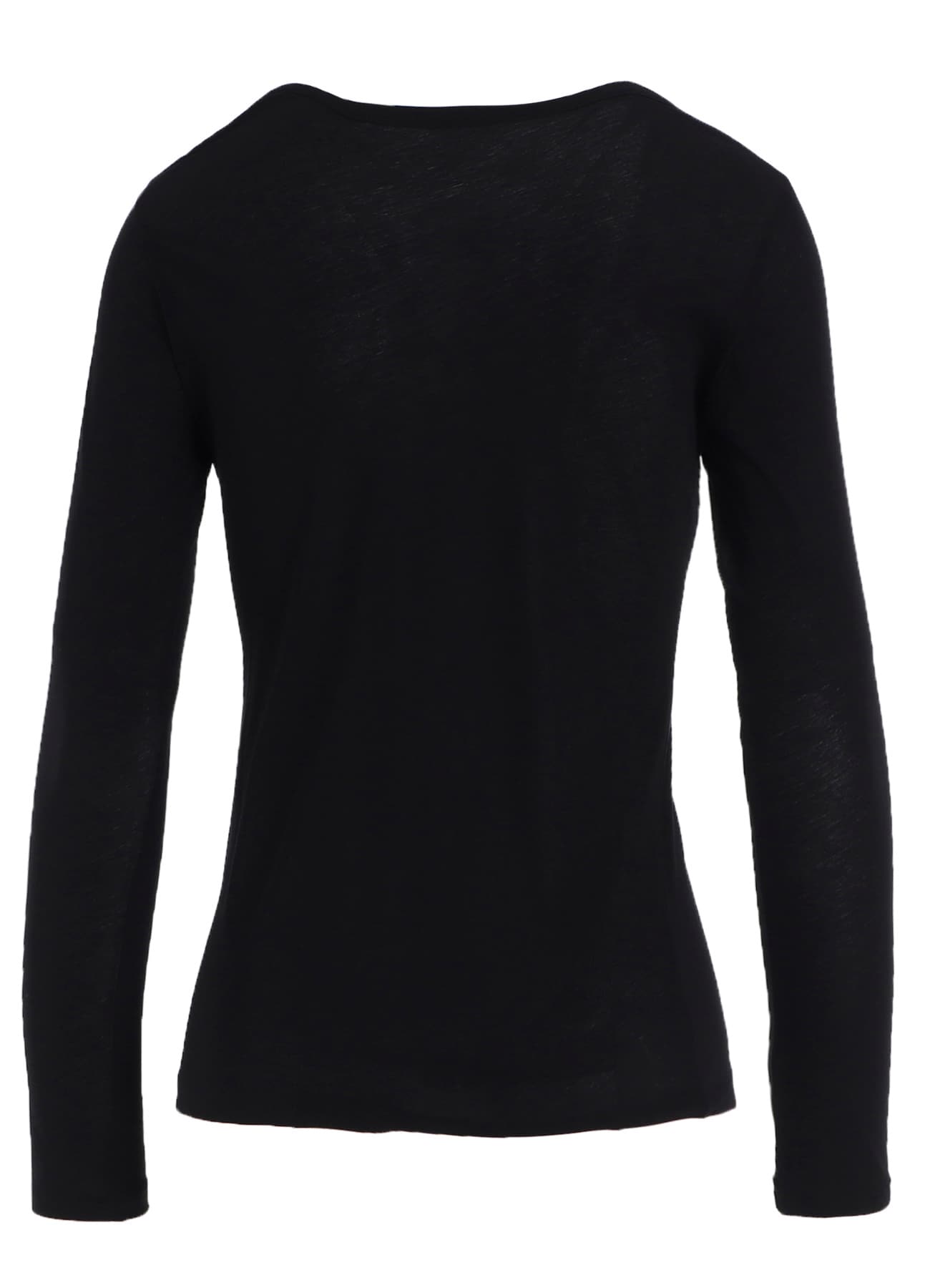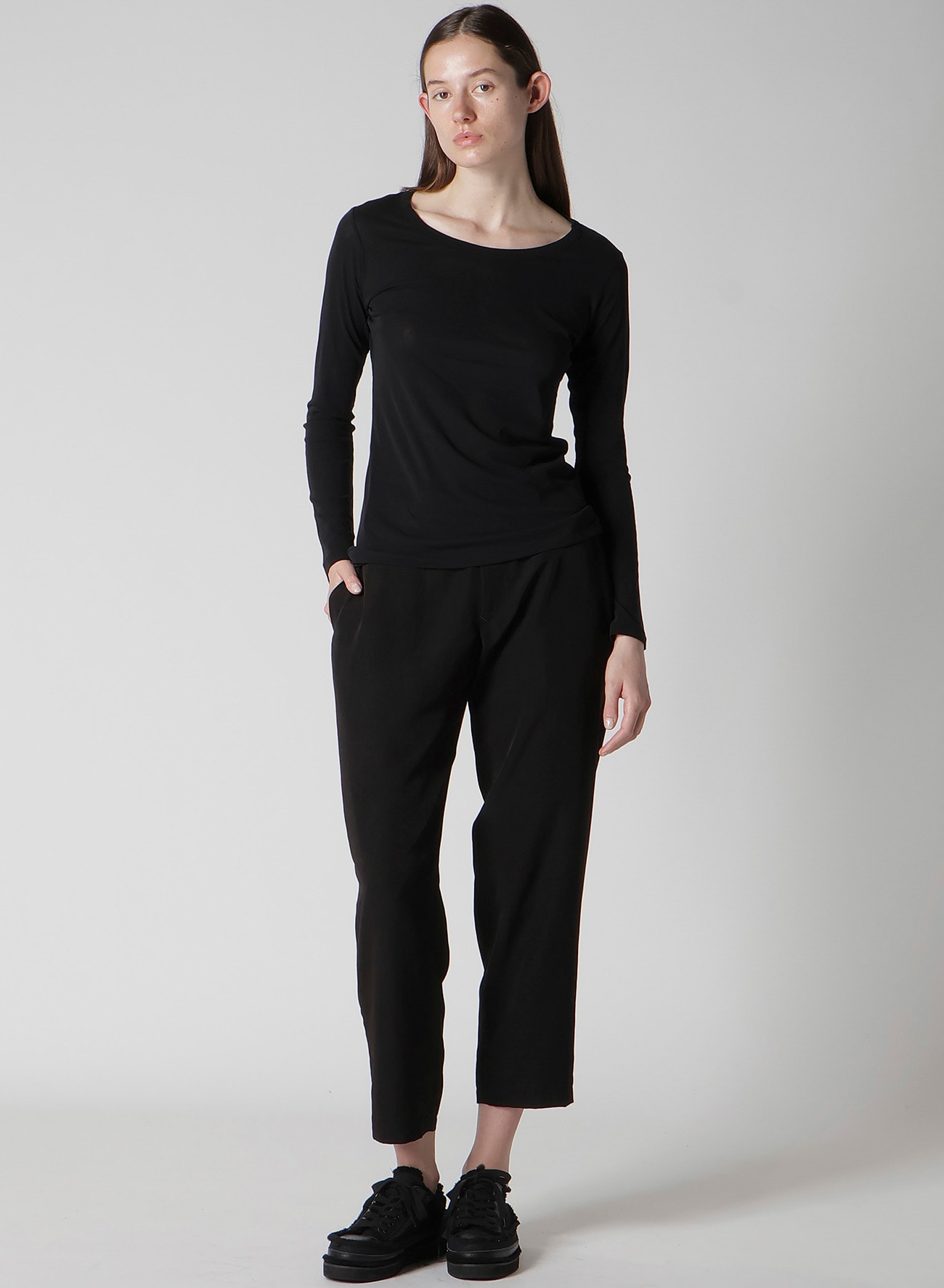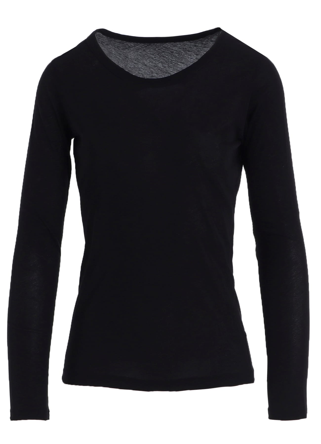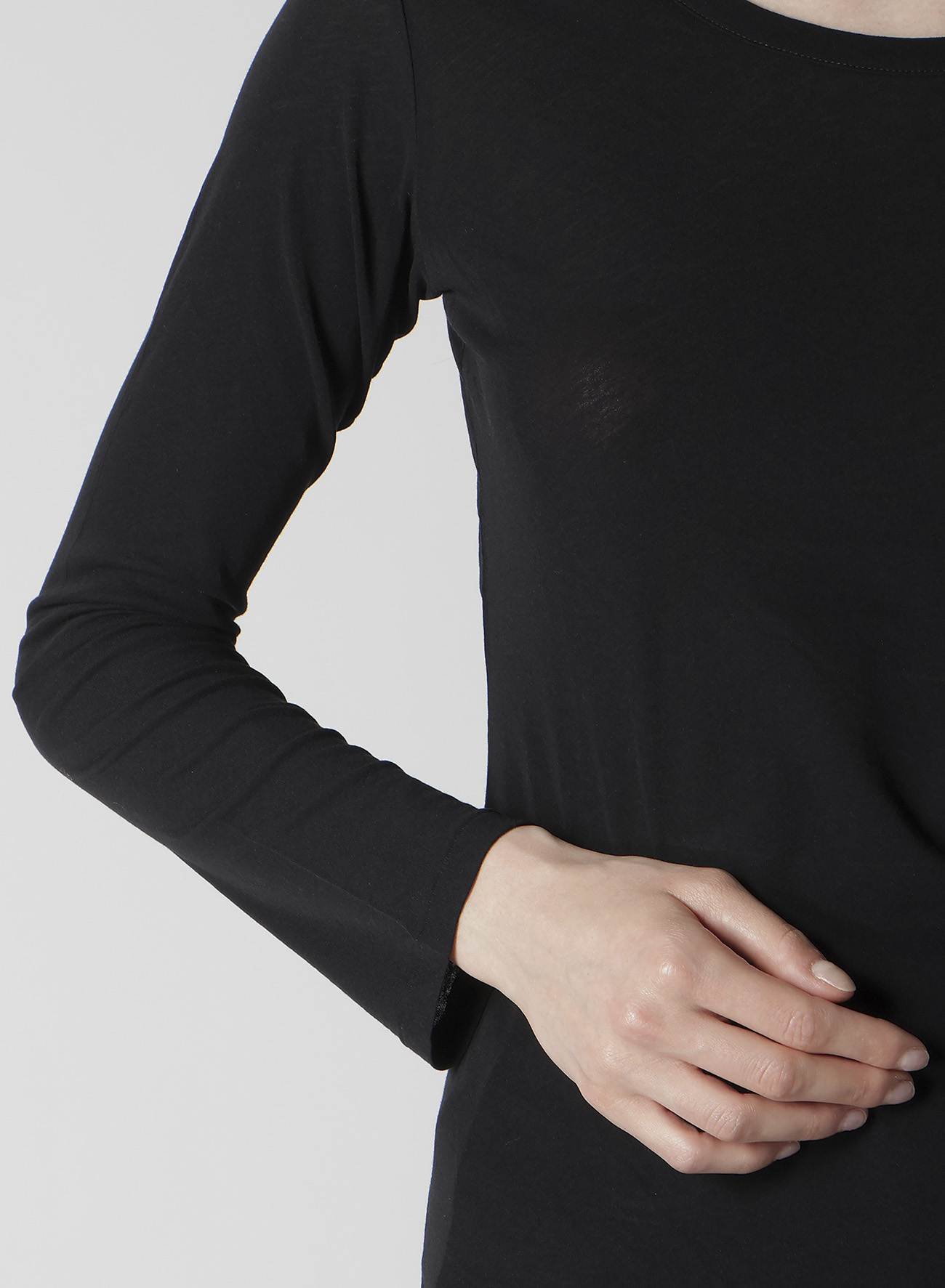 べたつきのないシャリ感のある繊細なタッチと上品な光沢、ドレープ性が特徴の強撚糸を使用した長袖丸首カットソー。薄く伸縮性もあり着心地が良く、あらゆるアイテムのインナーとして人気があります。モデル着用画像はサンプルアイテムを使用しています。製品とサイズや風合いが異なる場合がございます。詳しくはSIZE INFOをご確認下さい。