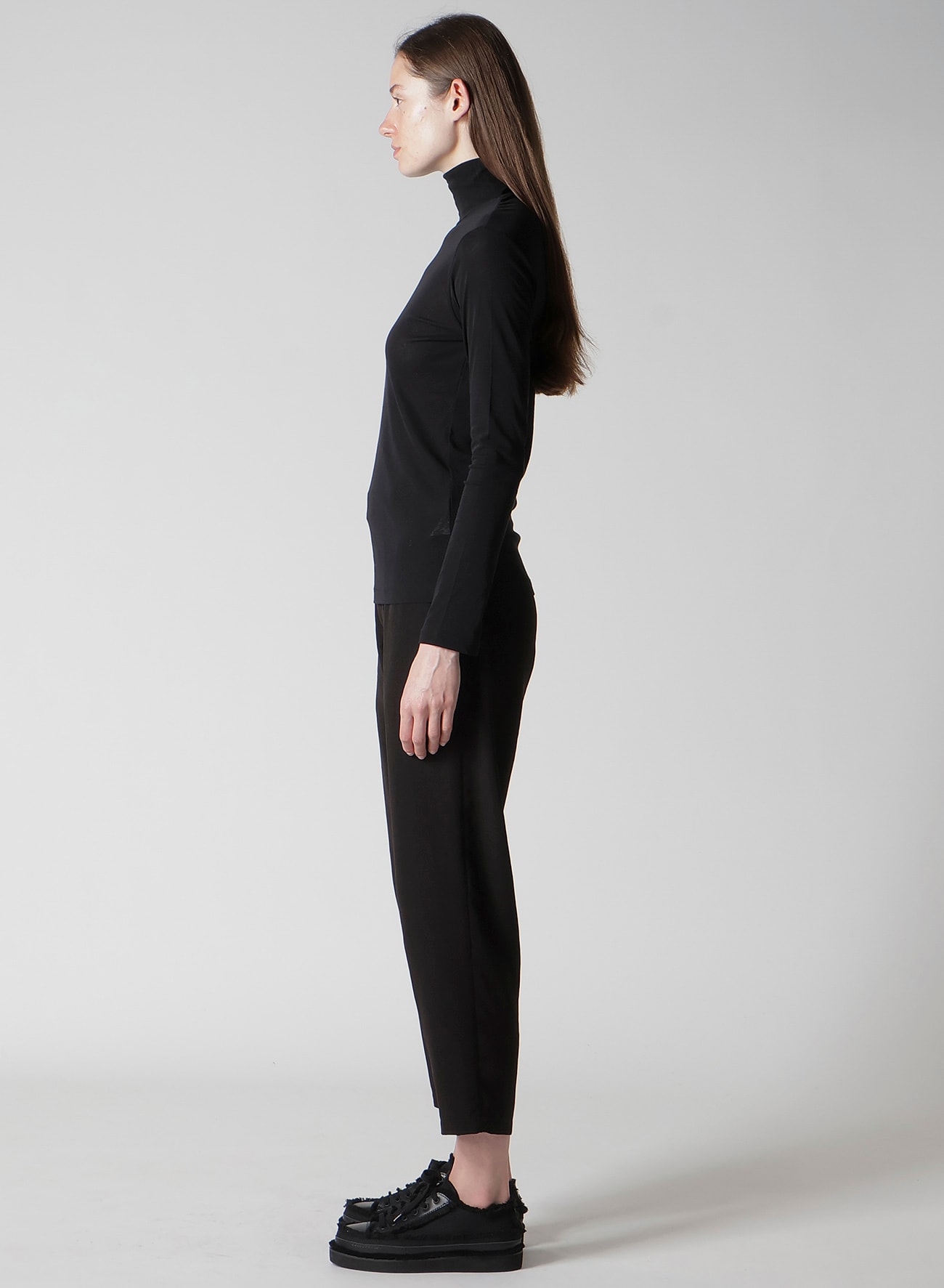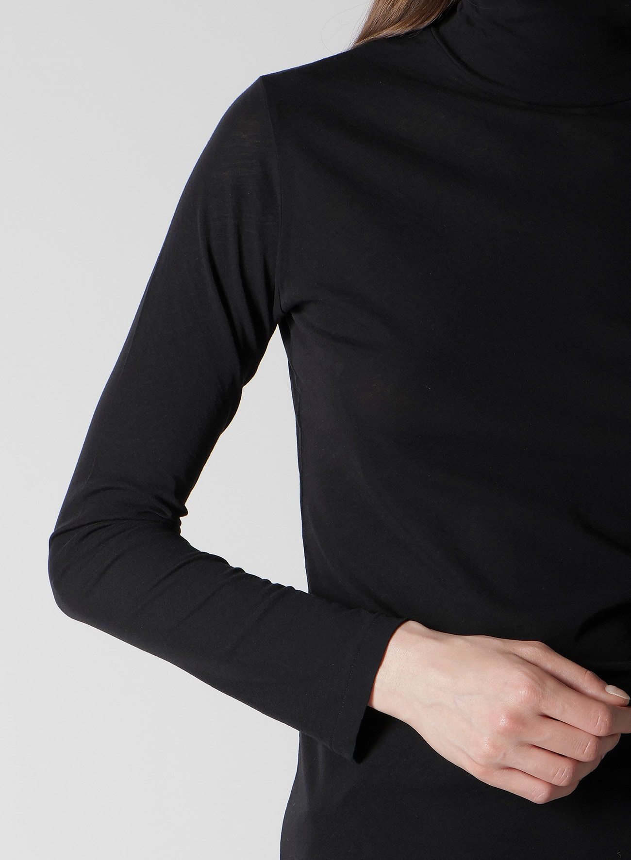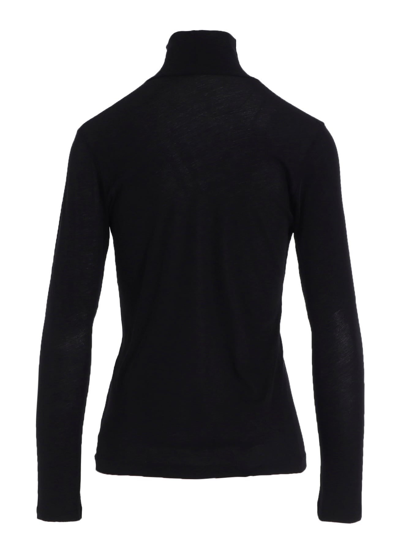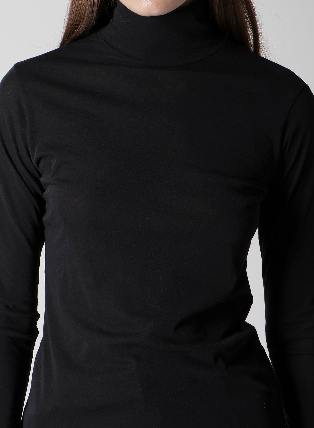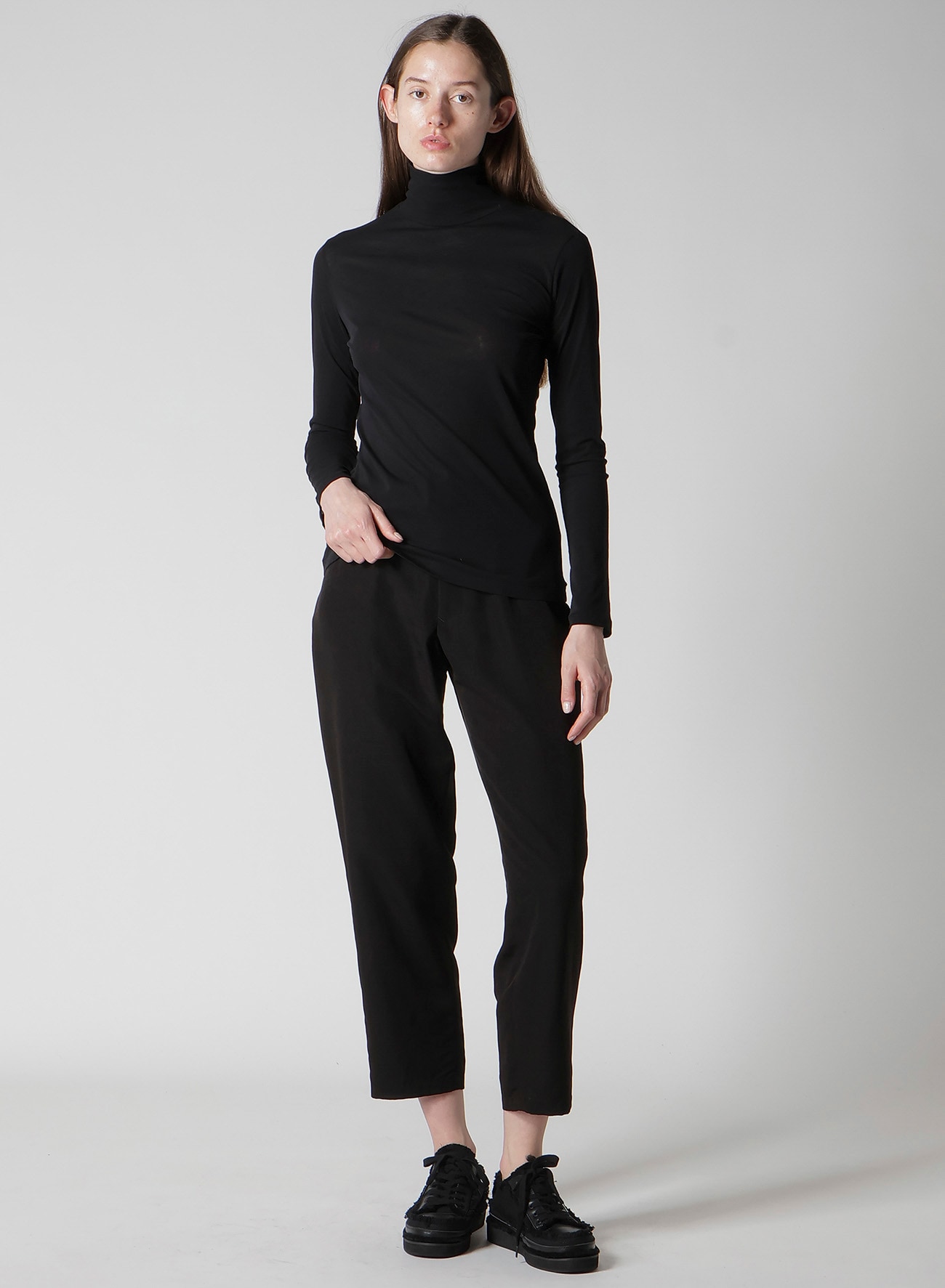 べたつきのないシャリ感のある繊細なタッチと上品な光沢、ドレープ性が特徴の強撚糸を使用したタートルネックカットソー。薄く伸縮性もあり着心地が良く、あらゆるアイテムのインナーとして人気があります。モデル着用画像はサンプルアイテムを使用しています。製品とサイズや風合いが異なる場合がございます。詳しくはSIZE INFOをご確認下さい。