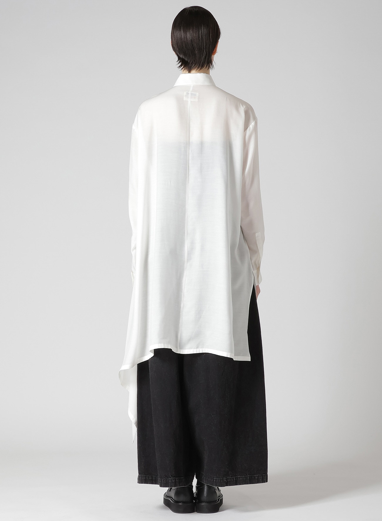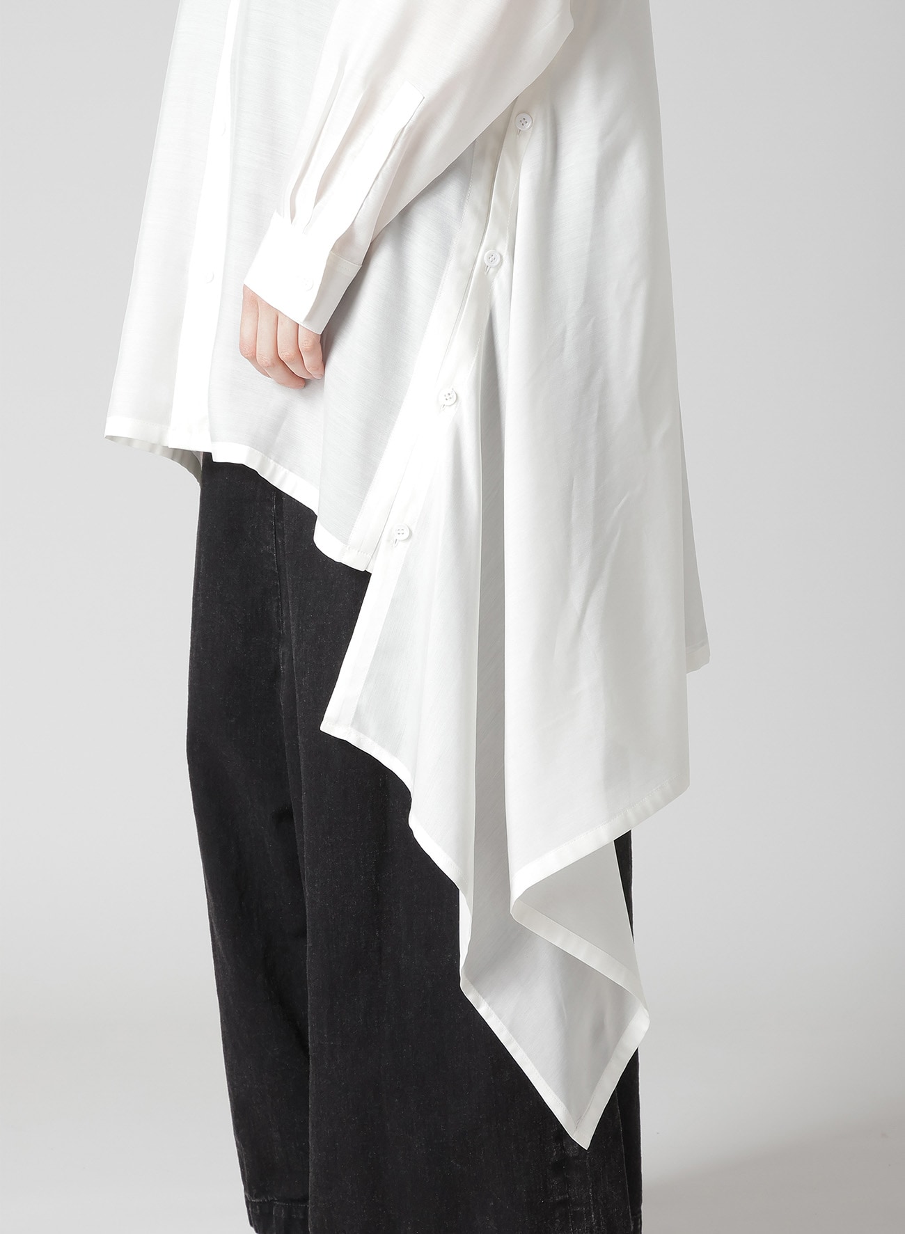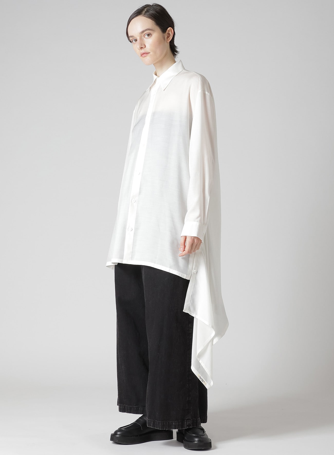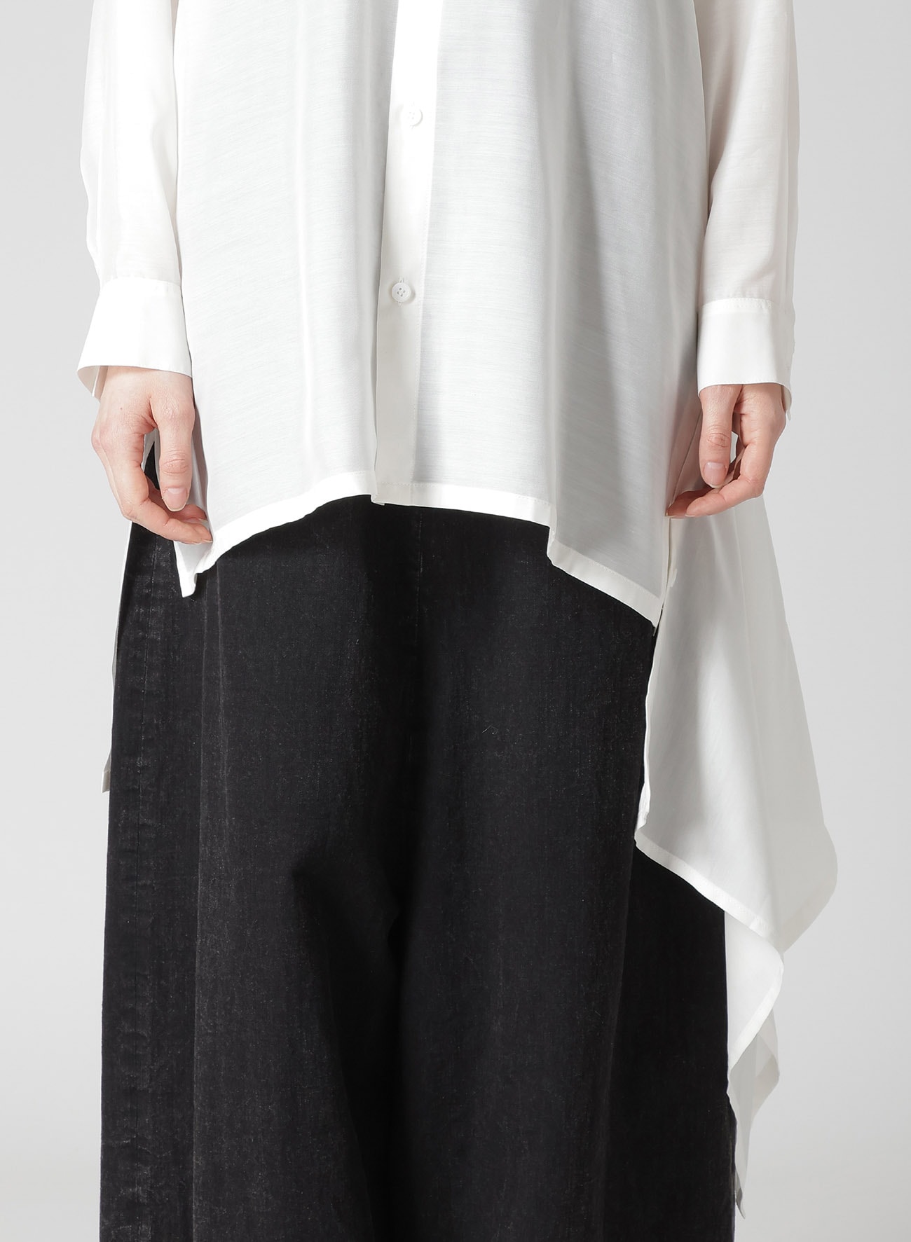 裾の釦の留め方次第でシルエットアレンジが可能に。キュプラとモダール糸を使用しているため、吸湿性に優れた滑らかな肌触りです。軽やかな着心地でこれからの季節にサラリとお召し頂けます。