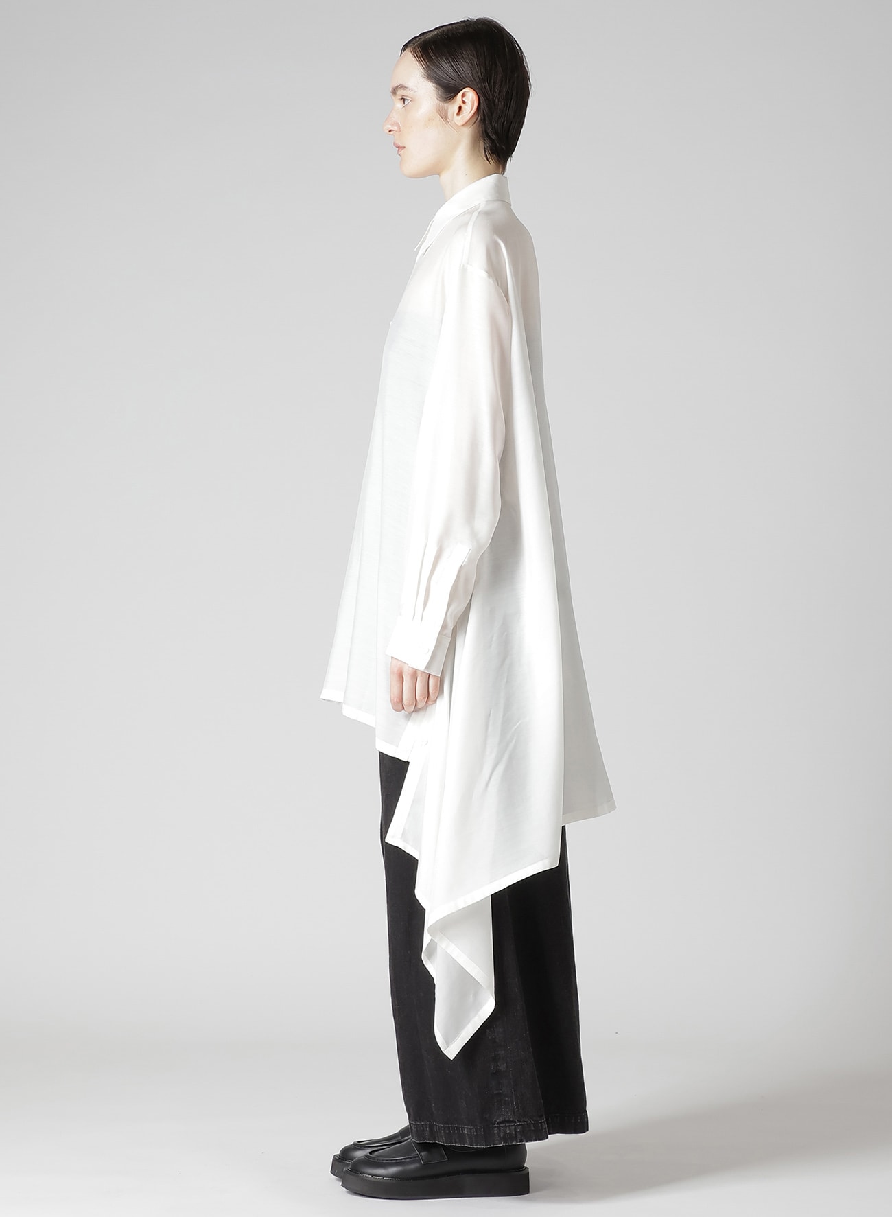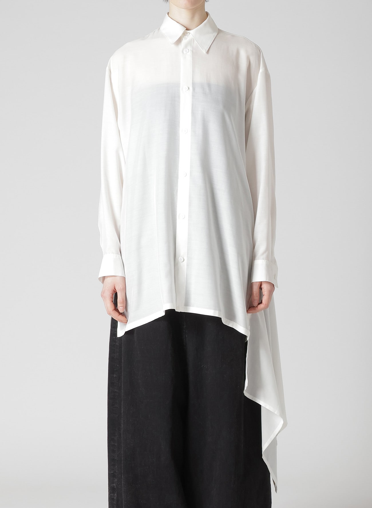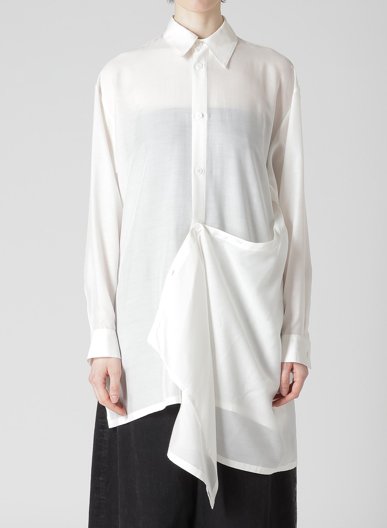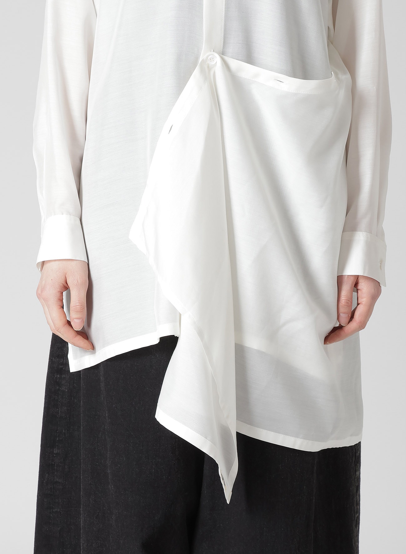 裾の釦の留め方次第でシルエットアレンジが可能に。キュプラとモダール糸を使用しているため、吸湿性に優れた滑らかな肌触りです。軽やかな着心地でこれからの季節にサラリとお召し頂けます。
