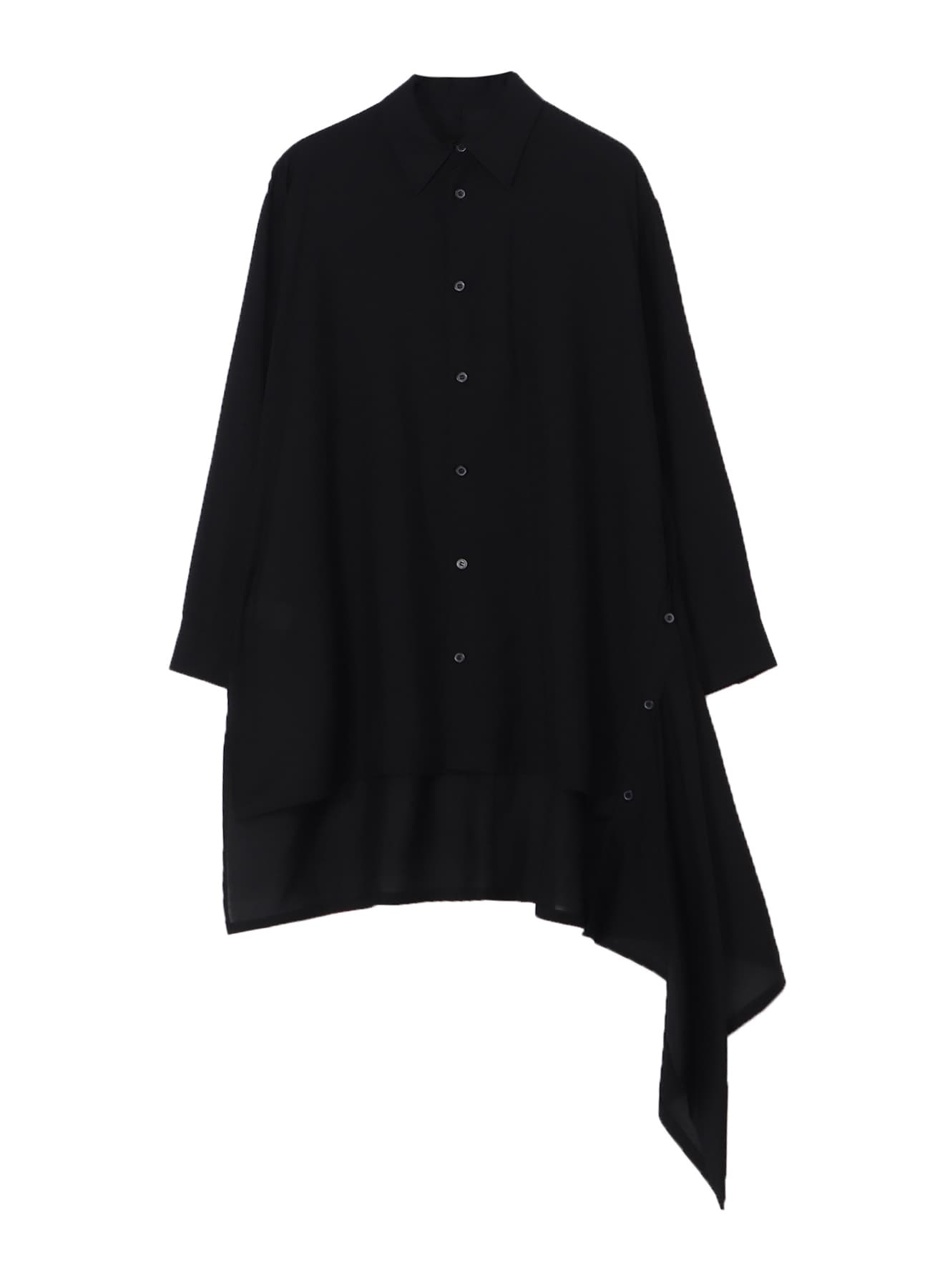 透け感の美しい裾フレアシャツ。裾の釦の留め方次第でシルエットアレンジが可能に。キュプラとモダール糸を使用しているため、吸湿性に優れた滑らかな肌触りです。軽やかな着心地でこれからの季節にサラリとお召し頂けます。モデル着用画像はサンプルアイテムを使用しています。製品とサイズや風合いが異なる場合がございます。詳しくはSIZE INFOをご確認下さい。