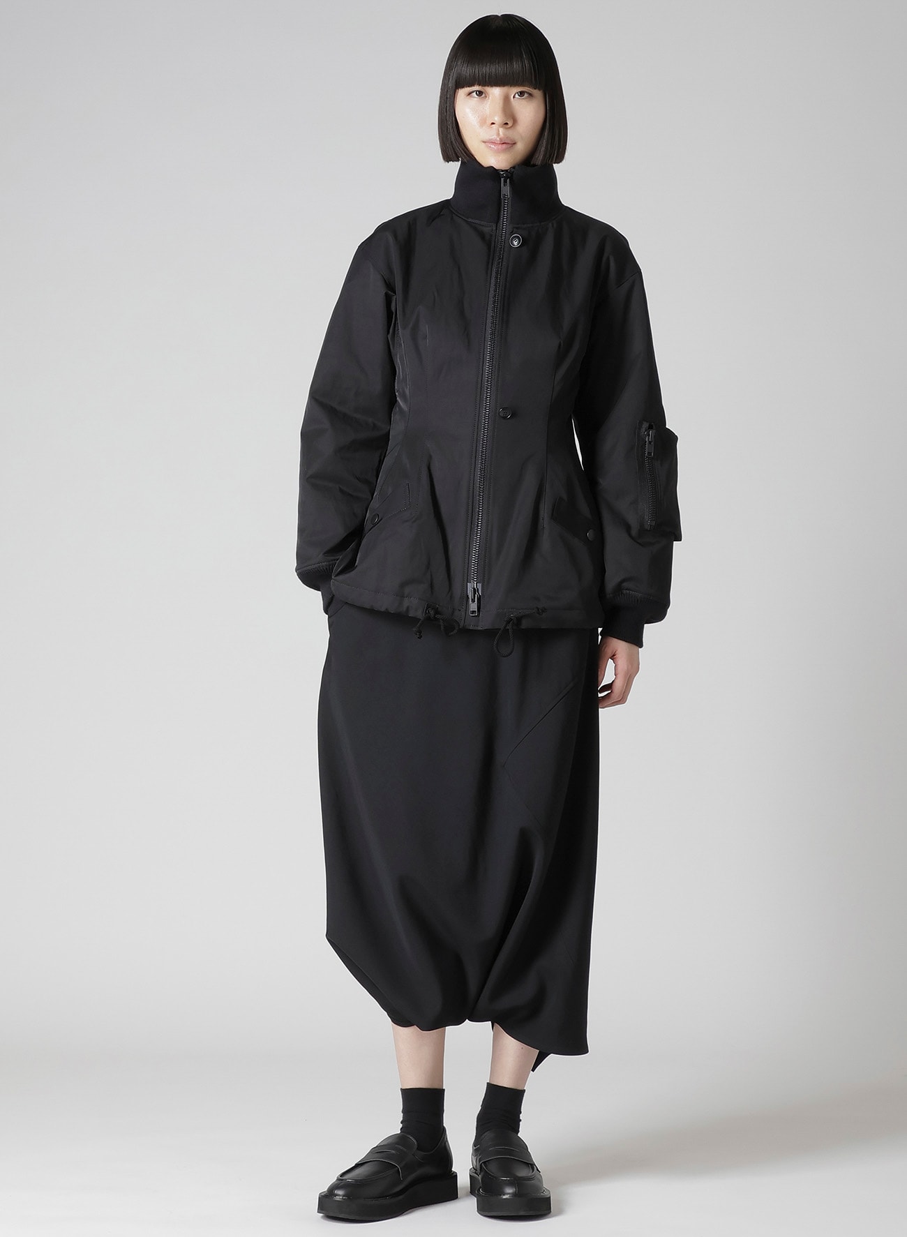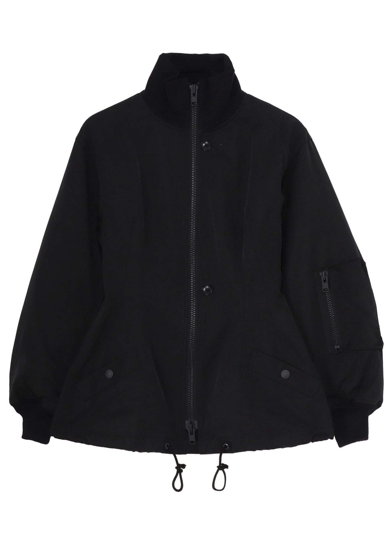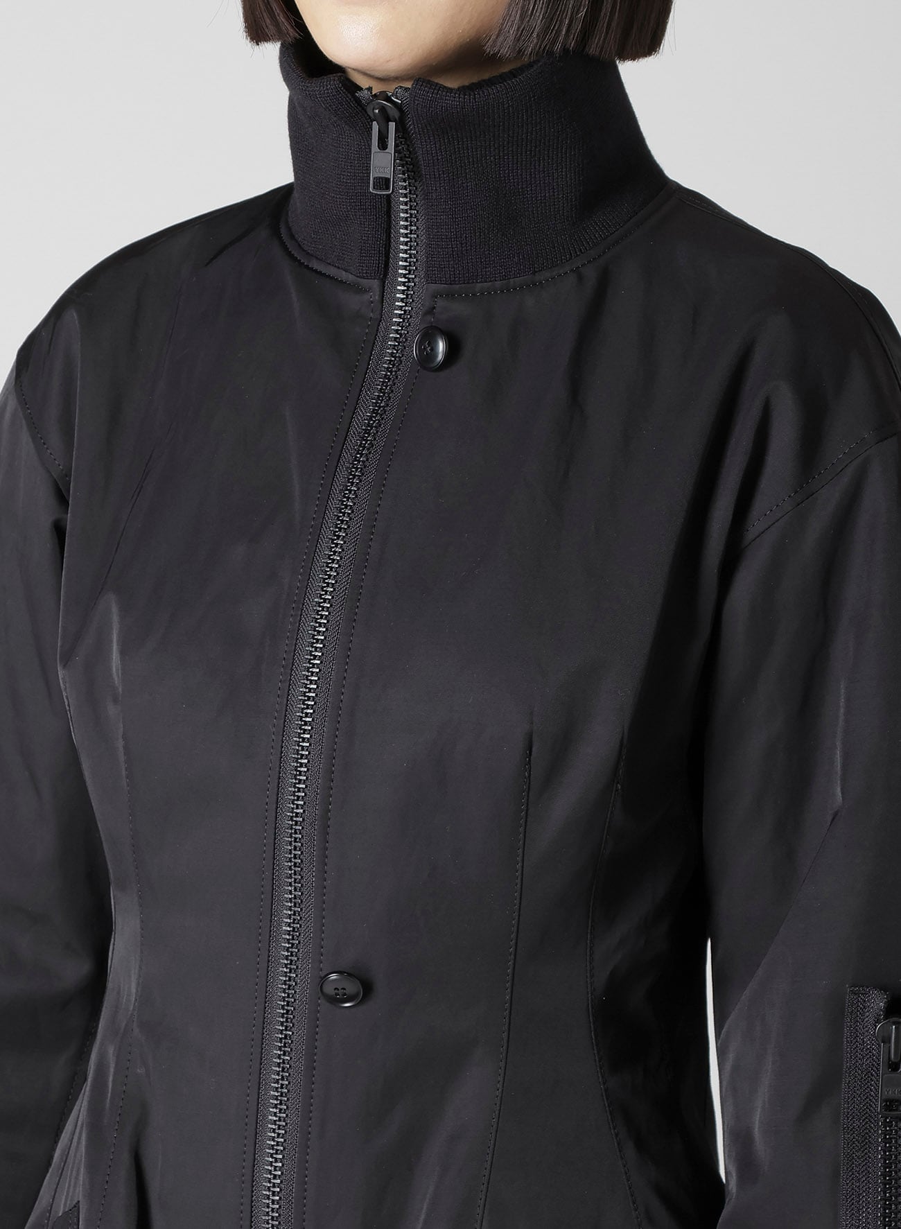 ダーツによってウエストラインの美しさが際立ったボンバージャケット。フロント、バックスタイルに配置されたダーツによって凛としたシルエットが美しい1枚です。ウエストラインはややタイトなデザイン。ナイロンの強度と綿の持つ柔らかさを併せ持った素材で仕上げました。軽やか着心地です。モデル着用画像はサンプルアイテムを使用しています。製品とサイズや風合いが異なる場合がございます。詳しくはSIZE INFOをご確認下さい。