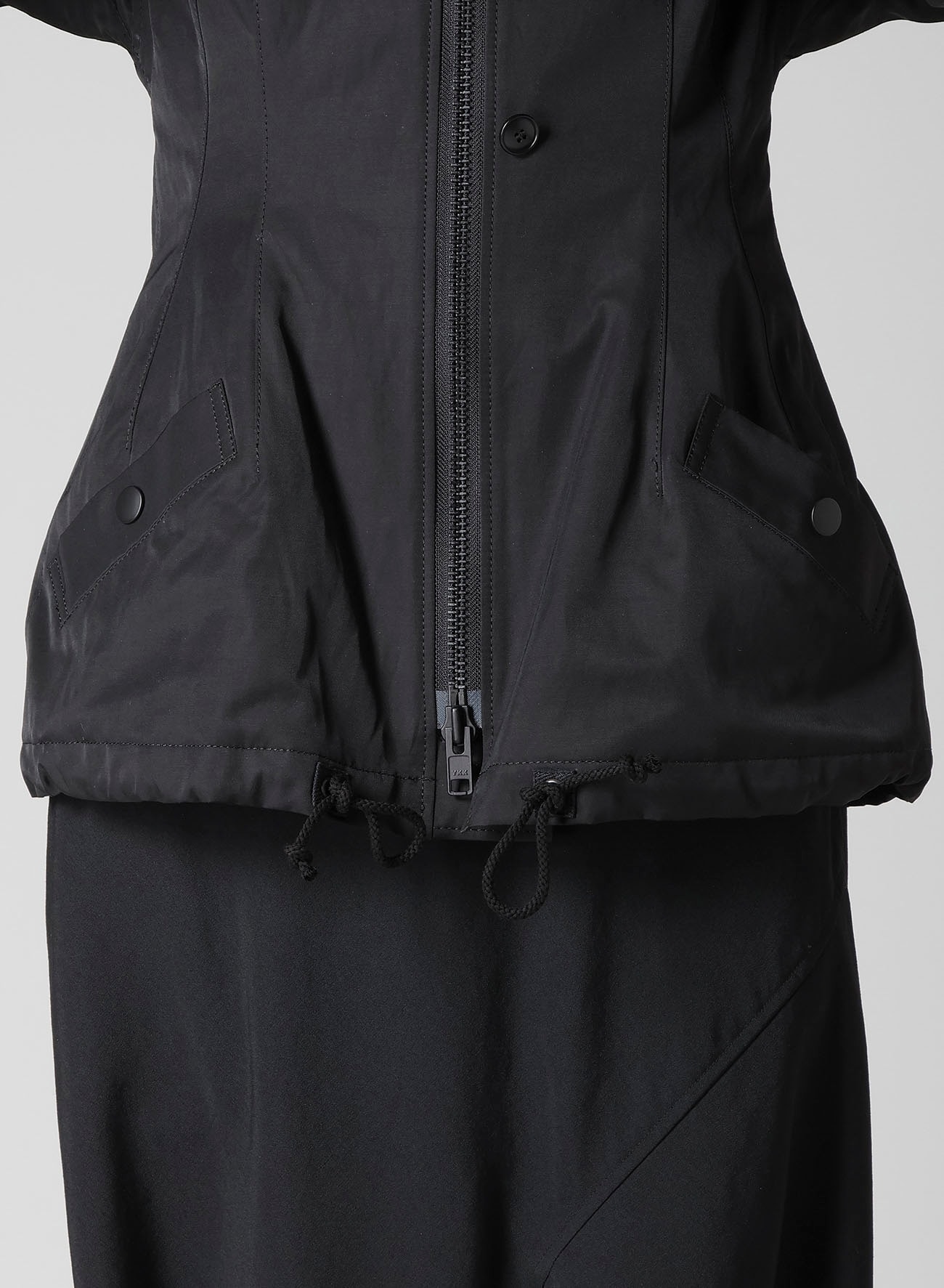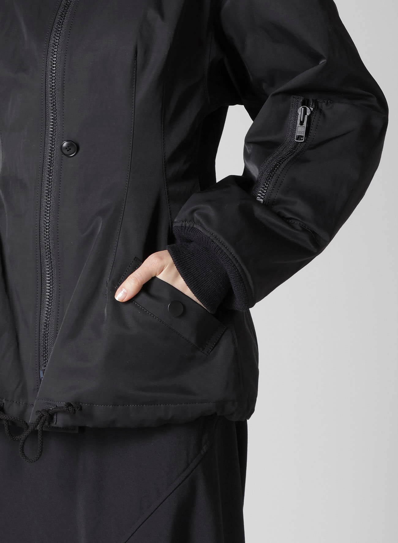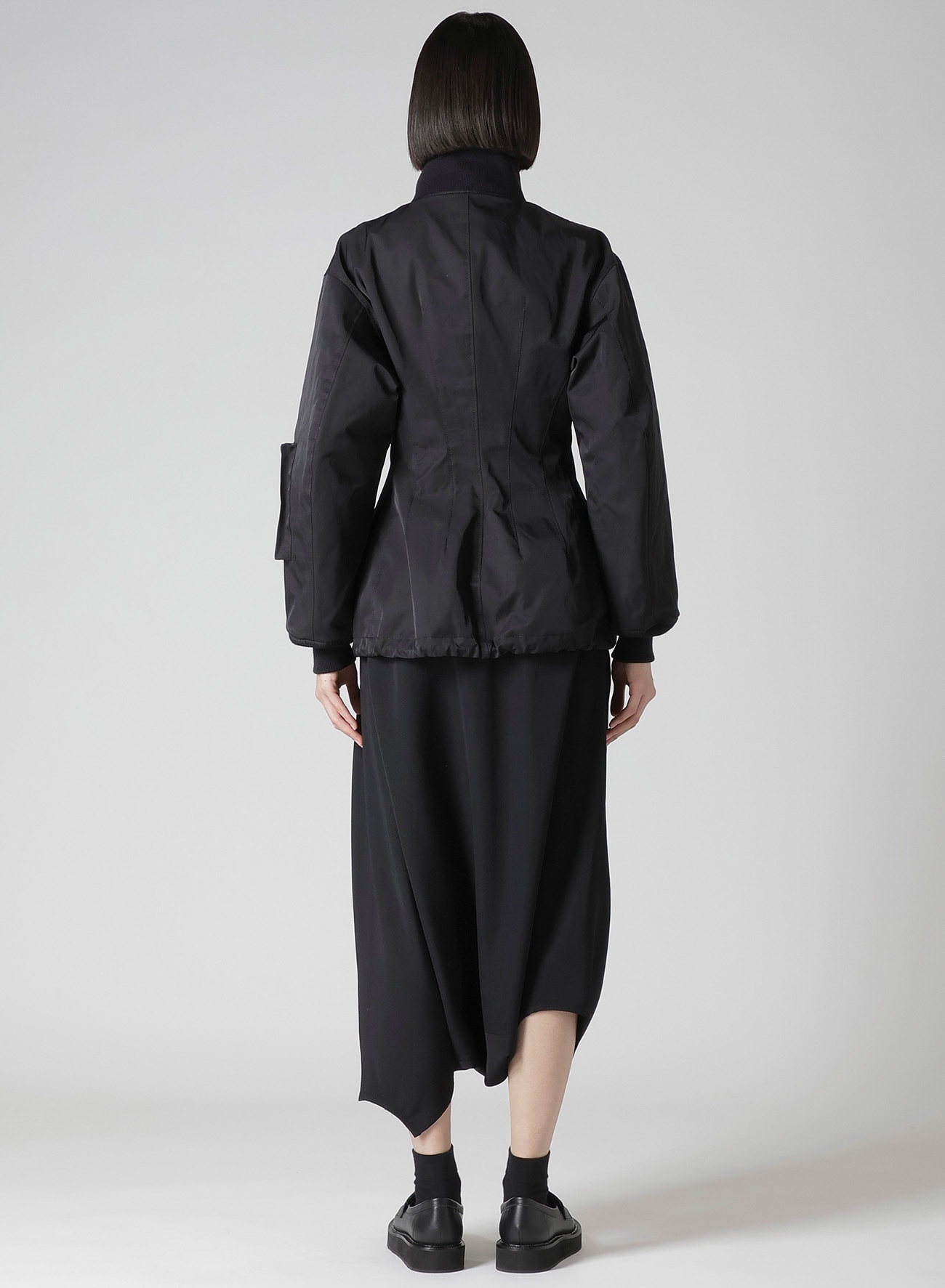 ダーツによってウエストラインの美しさが際立ったボンバージャケット。フロント、バックスタイルに配置されたダーツによって凛としたシルエットが美しい1枚です。ウエストラインはややタイトなデザイン。ナイロンの強度と綿の持つ柔らかさを併せ持った素材で仕上げました。軽やか着心地です。モデル着用画像はサンプルアイテムを使用しています。製品とサイズや風合いが異なる場合がございます。詳しくはSIZE INFOをご確認下さい。