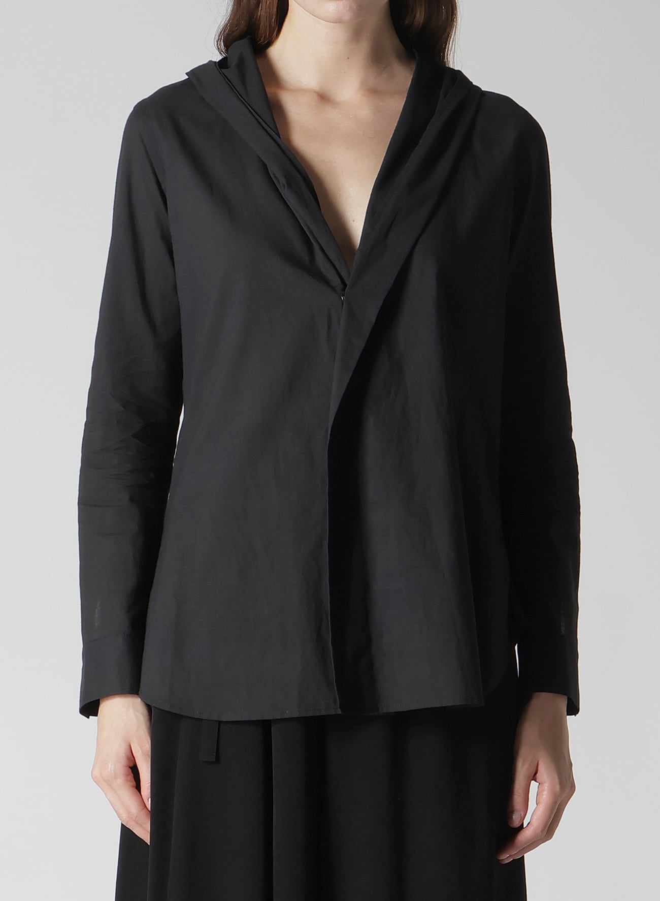 ¥67100手紡ぎのKHADI素材を使用したフードブラウス。。軽やかに羽織ることができる、ボトムスを選ばないデザインも魅力的です。打ち込みの良い平織で織られている生地でブロード調に織られいるため、ナチュラルな風合いと滑らかで上質な高級感を感じさせる1枚です。モデル着用画像はサンプルアイテムを使用しています。製品とサイズや風合いが異なる場合がございます。詳しくはSIZE INFOをご確認下さい。
