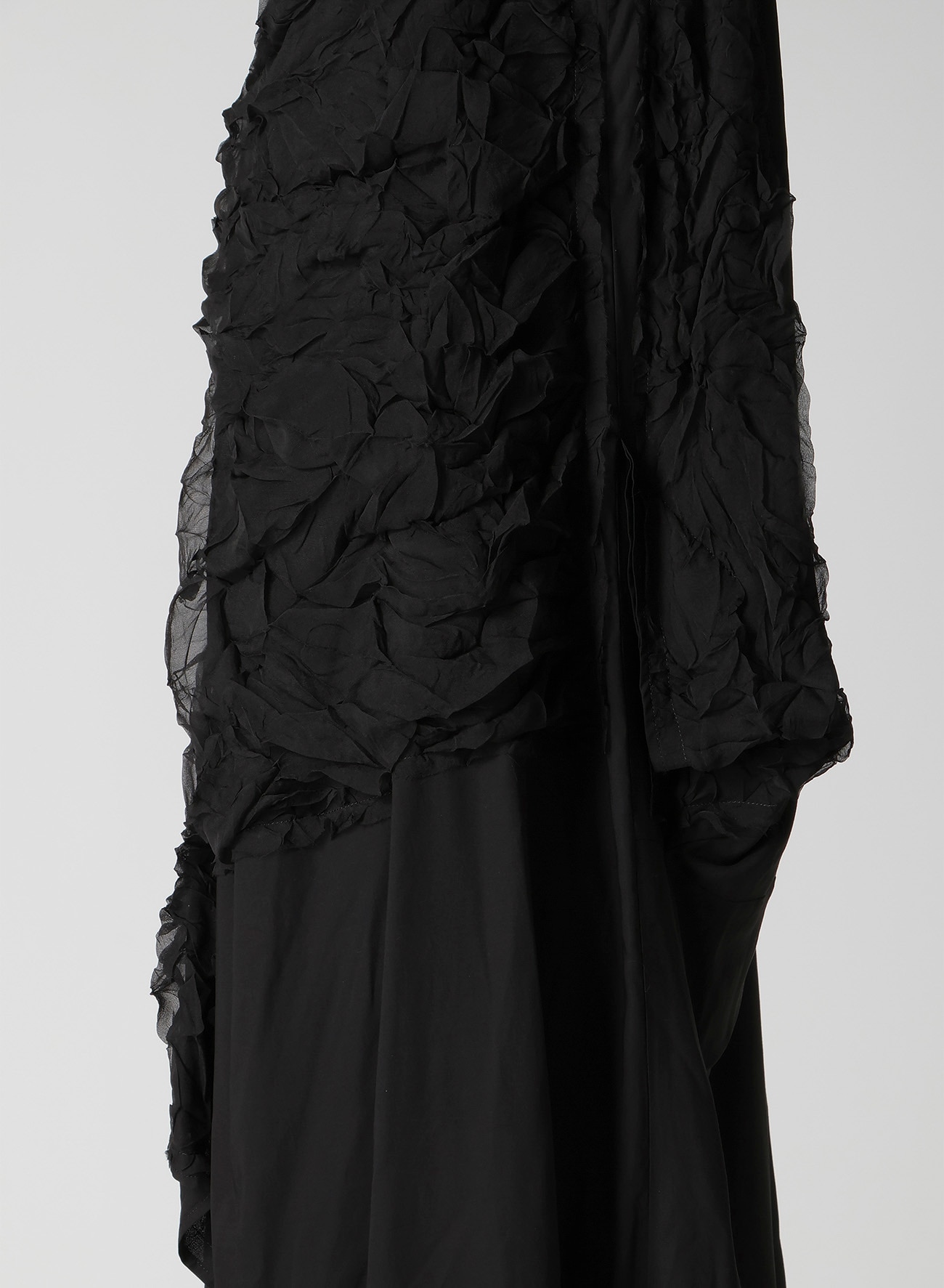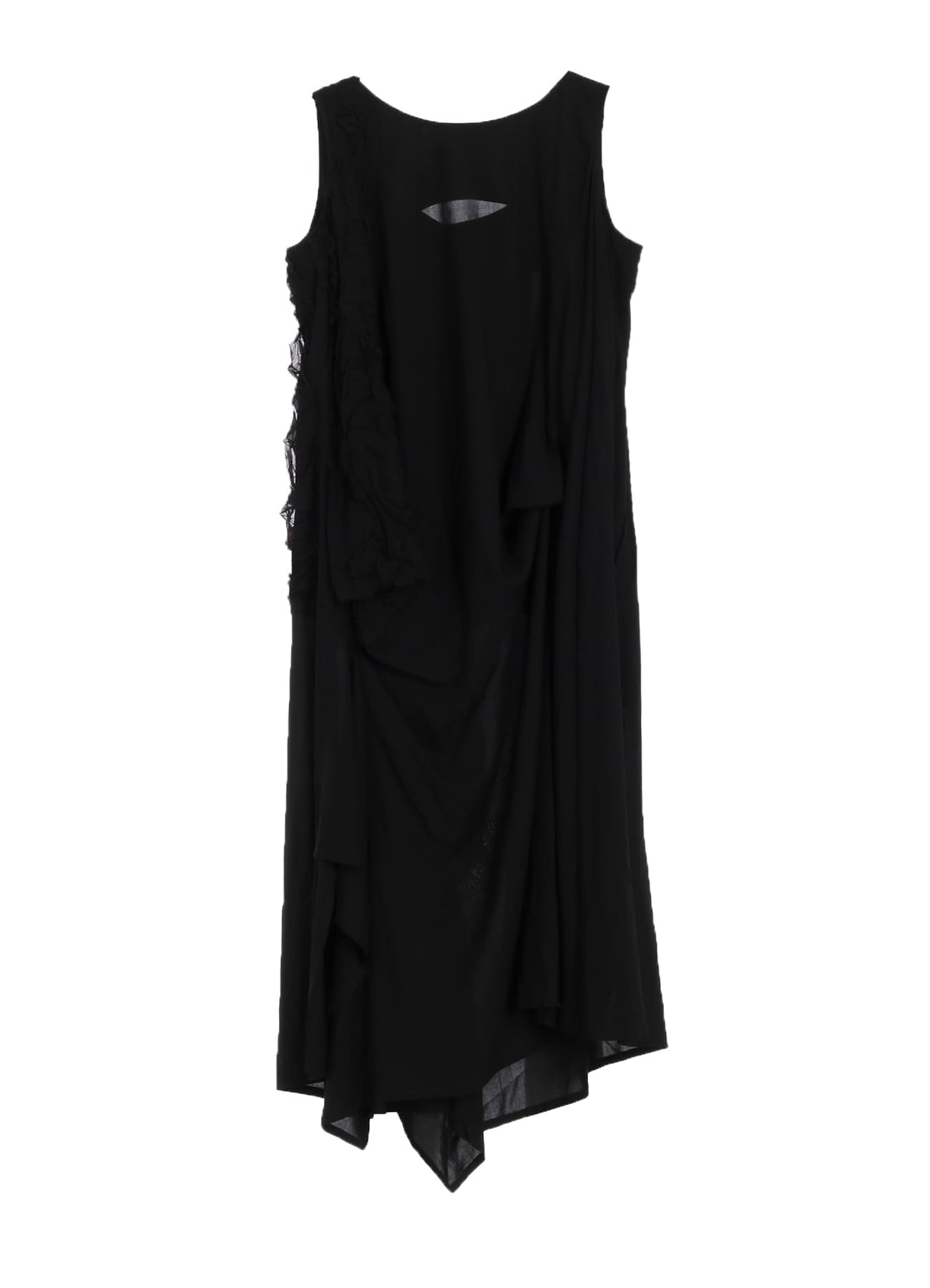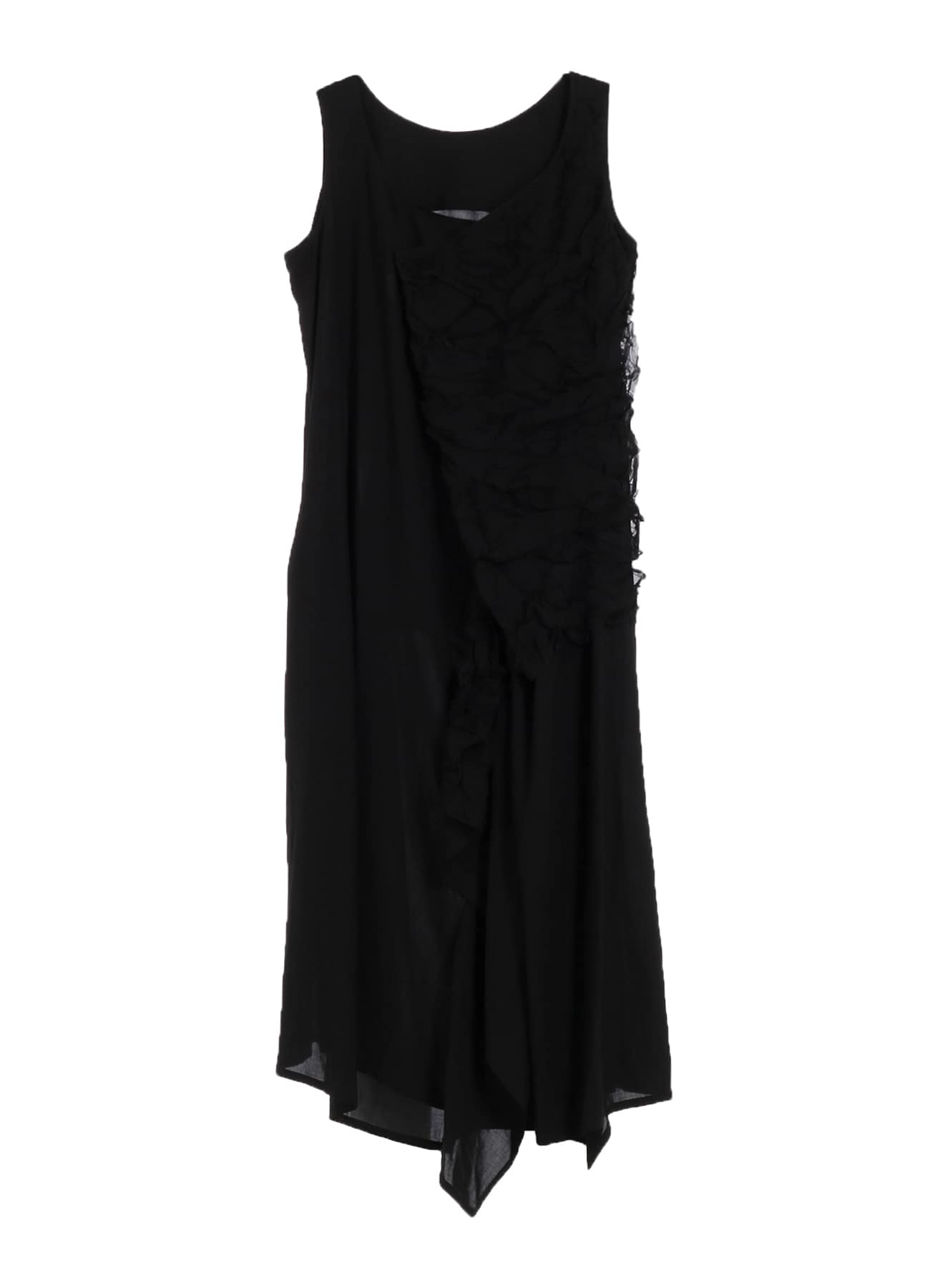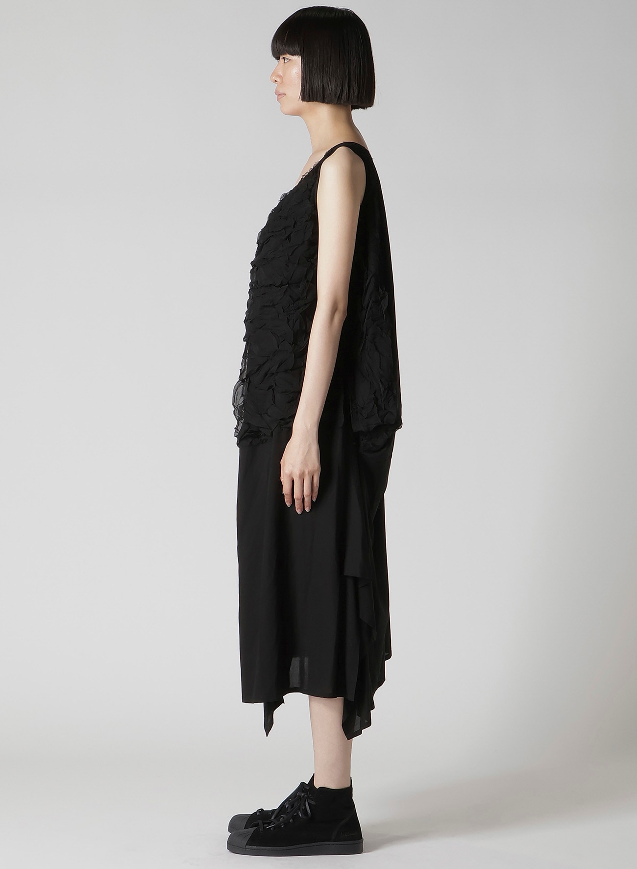 清涼感あふれるシルクシフォンが軽やかなノースリーブドレス。独特なシワ加工を施すことで表情のある素材感に仕上げました。1枚で華やかなスタイルを演出します。モデル着用画像はサンプルアイテムを使用しています。製品とサイズや風合いが異なる場合がございます。詳しくはSIZE INFOをご確認下さい。