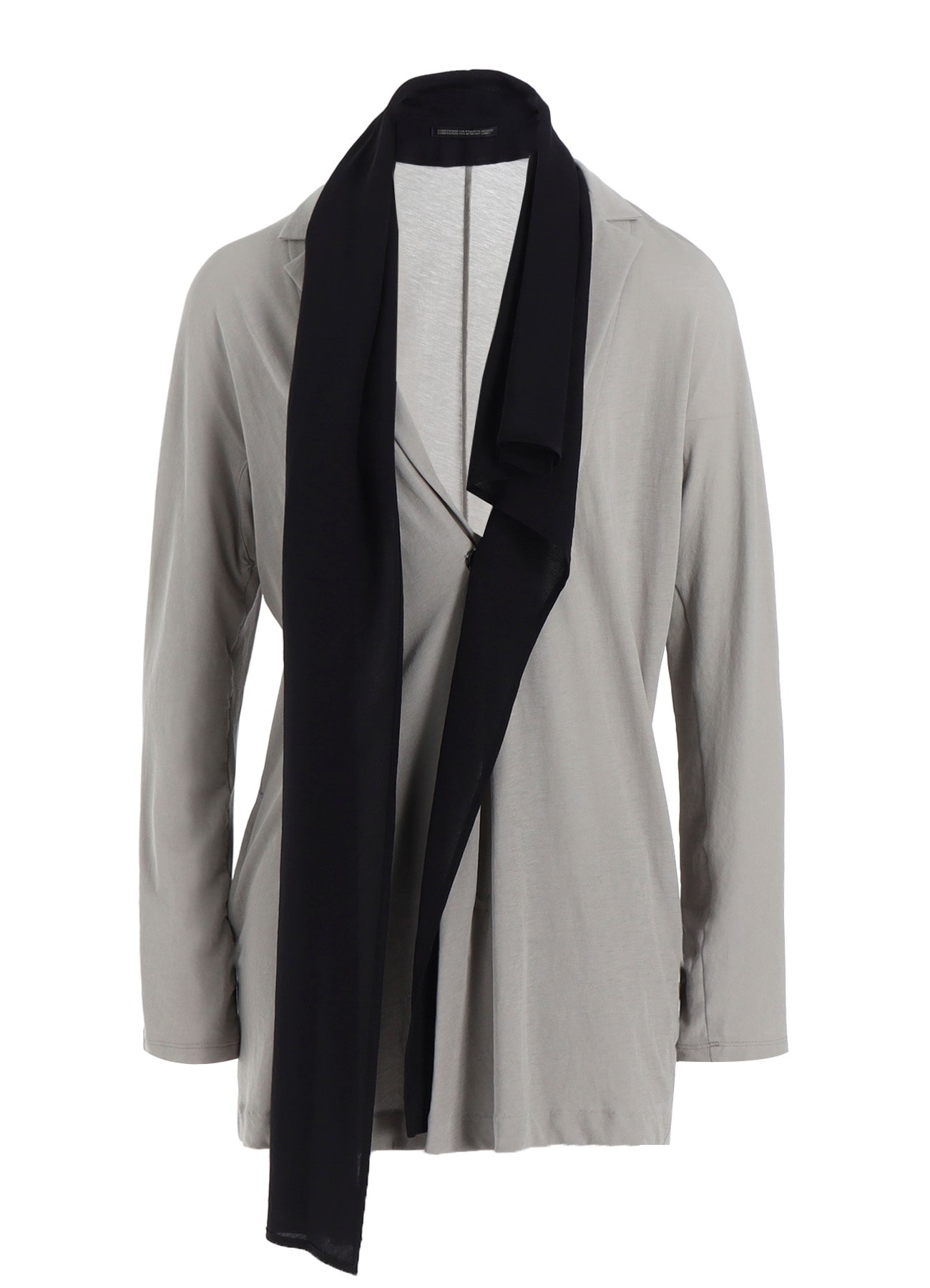 ¥117700艶やかな素材組合せのストールジャケット。ストールは巻いたり垂らしたりとアレンジ可能なシルエットです。フォーマルなジャケット要素を持ちながら、素材と相まって軽やかな着心地です。モデル着用画像はサンプルアイテムを使用しています。製品とサイズや風合いが異なる場合がございます。詳しくはSIZE INFOをご確認下さい。