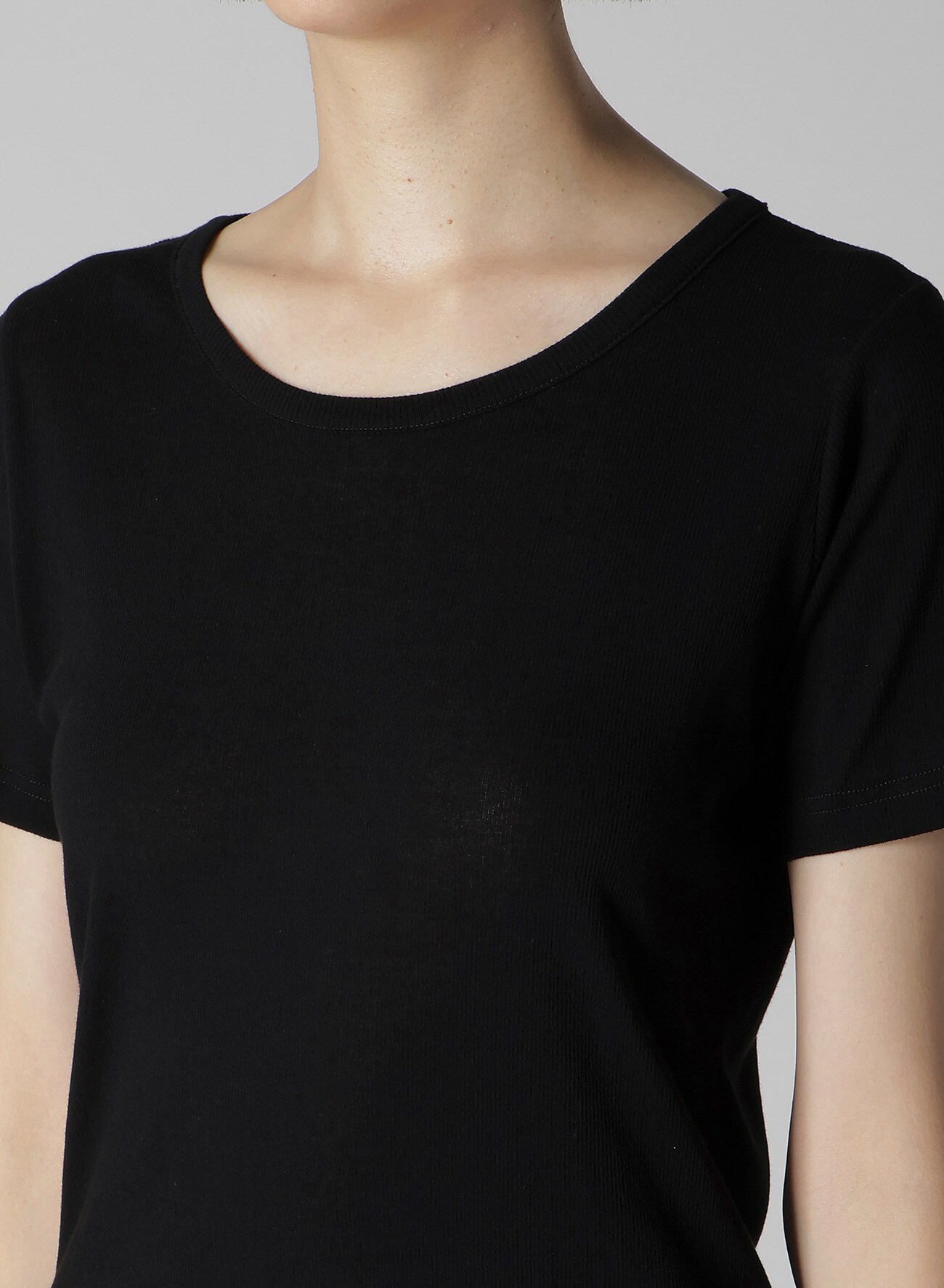 ¥28600伸縮性に優れた丸首半袖カットソー。ハイゲージのテレコ素材を使用。毛羽が少なくさらりとした着心地の強撚素材で仕上げました。シンプルシルエットのため、あらゆるコーディネートで活躍する1枚です。モデル着用画像はサンプルアイテムを使用しています。製品とサイズや風合いが異なる場合がございます。詳しくはSIZE INFOをご確認下さい。