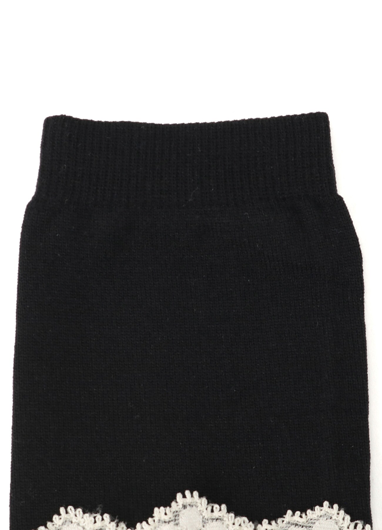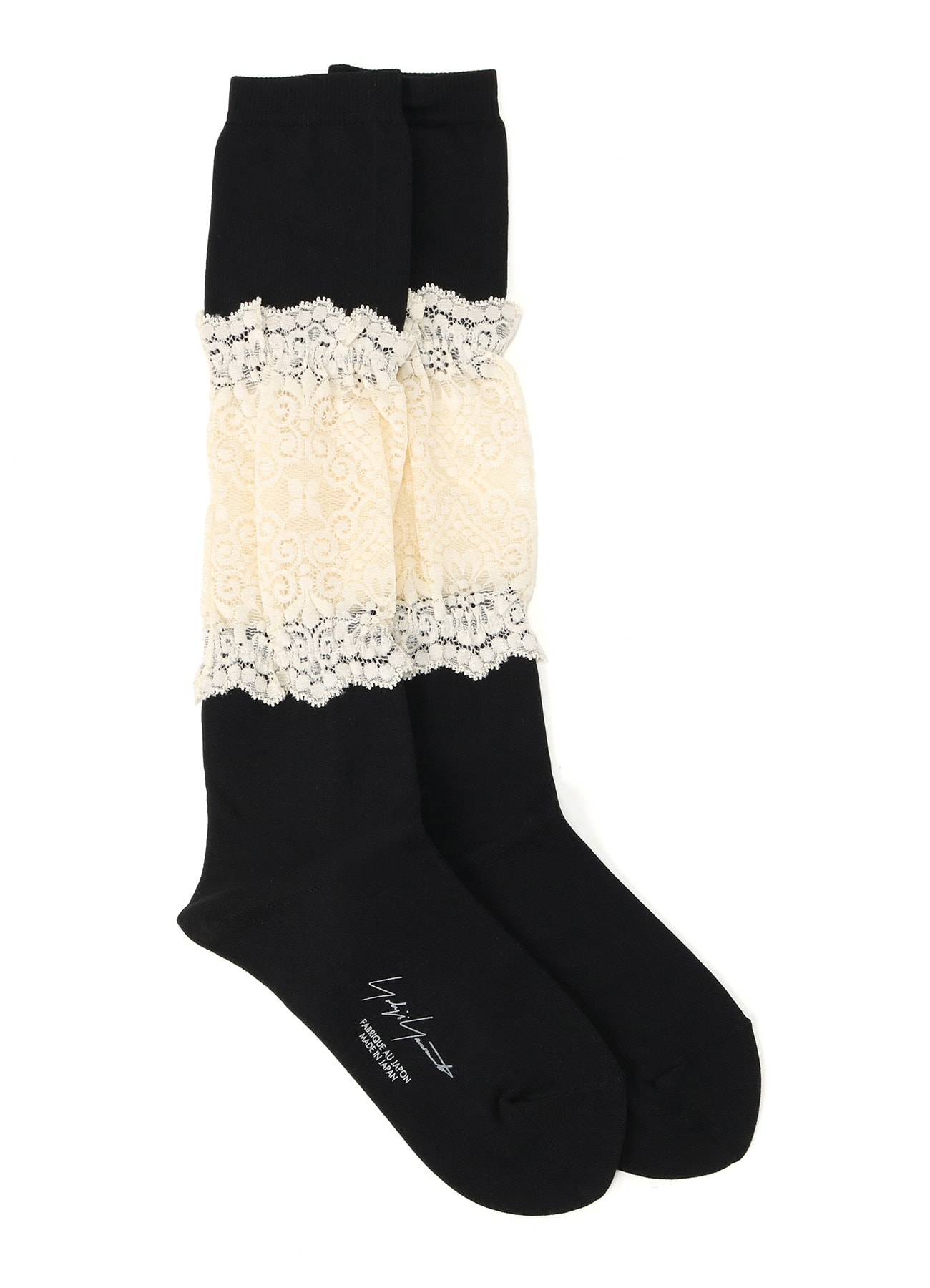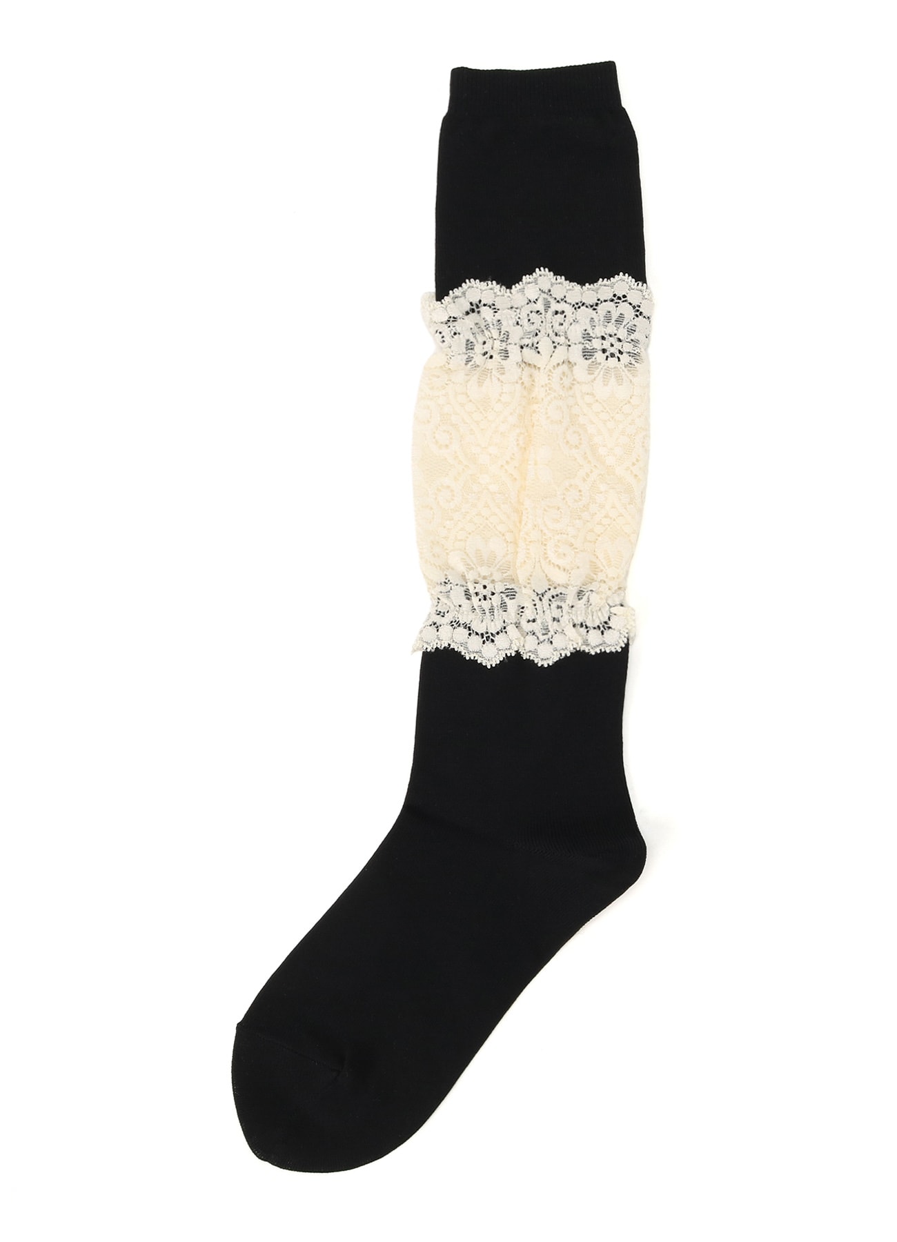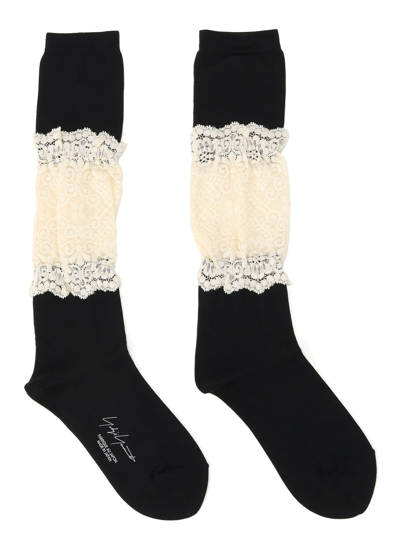 ¥9900ソックスの中央部分にレースをあしらった華やかなソックス。レースは伸縮性のある物を使用しています。柄の入り方は多少の個体差がありますのでご了承ください。