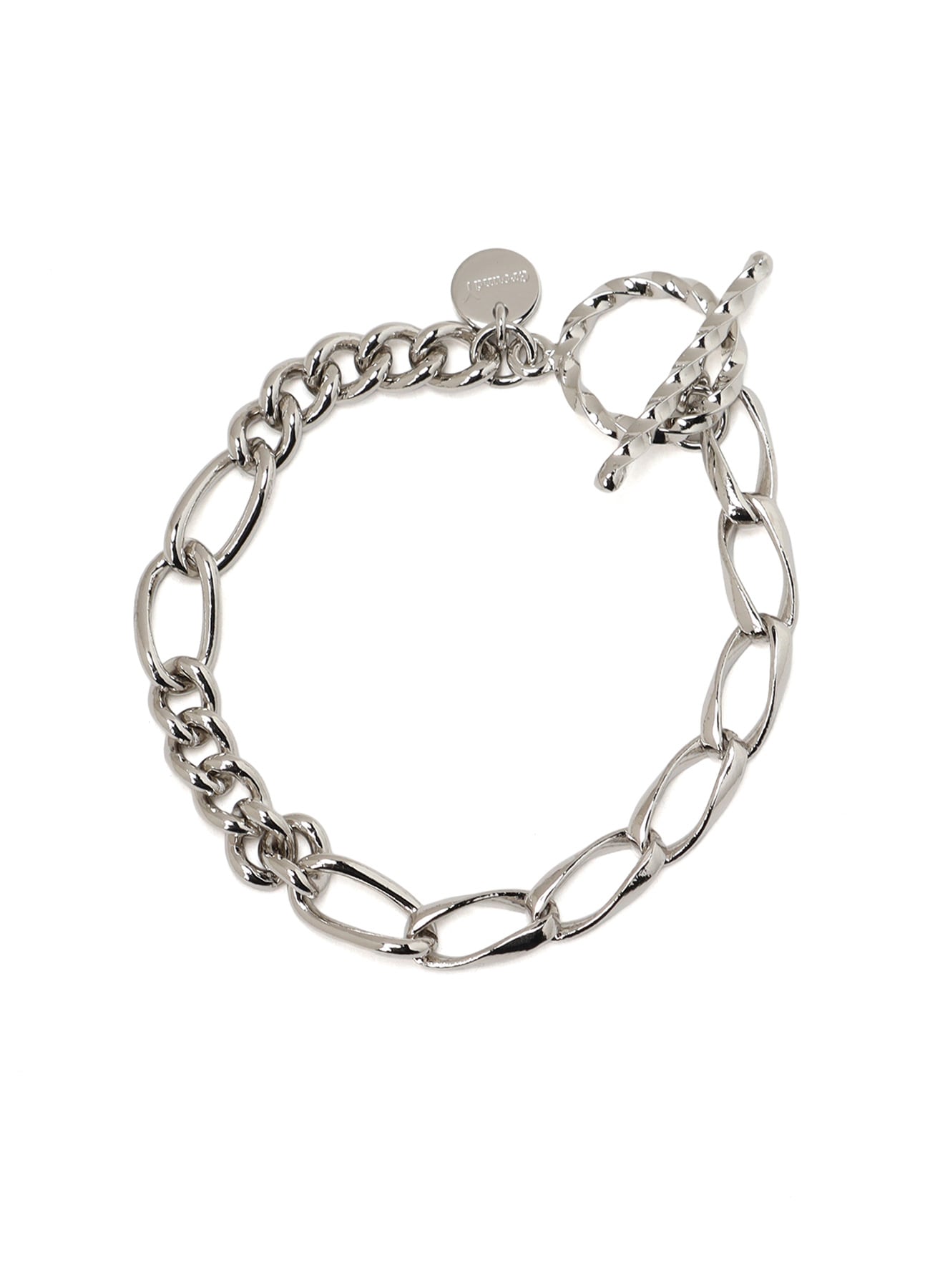 異なるデザインのチェーンを組み合わせた、マンテルタイプの真鍮製ブレスレット。