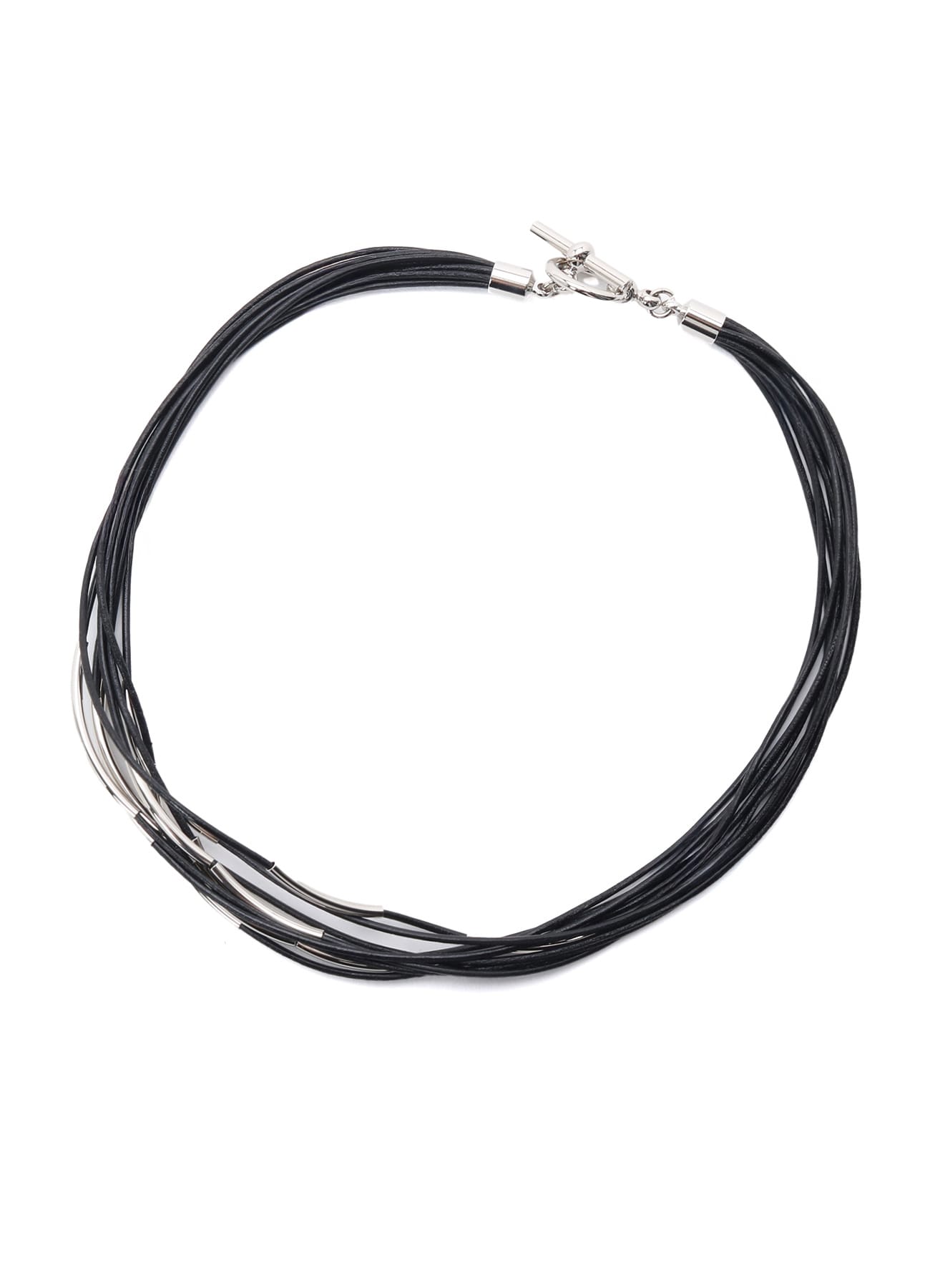 Ground Y 2026 Spring/Summer Collection牛革コードと真鍮パーツを使用したチョーカー。細いレザーコードを幾重にも重ねたようなデザインが特徴で、シンプルながら首元に存在感をプラスします。素材の質感が際立ち、スタイリングのアクセントとして取り入れやすいアイテムです。