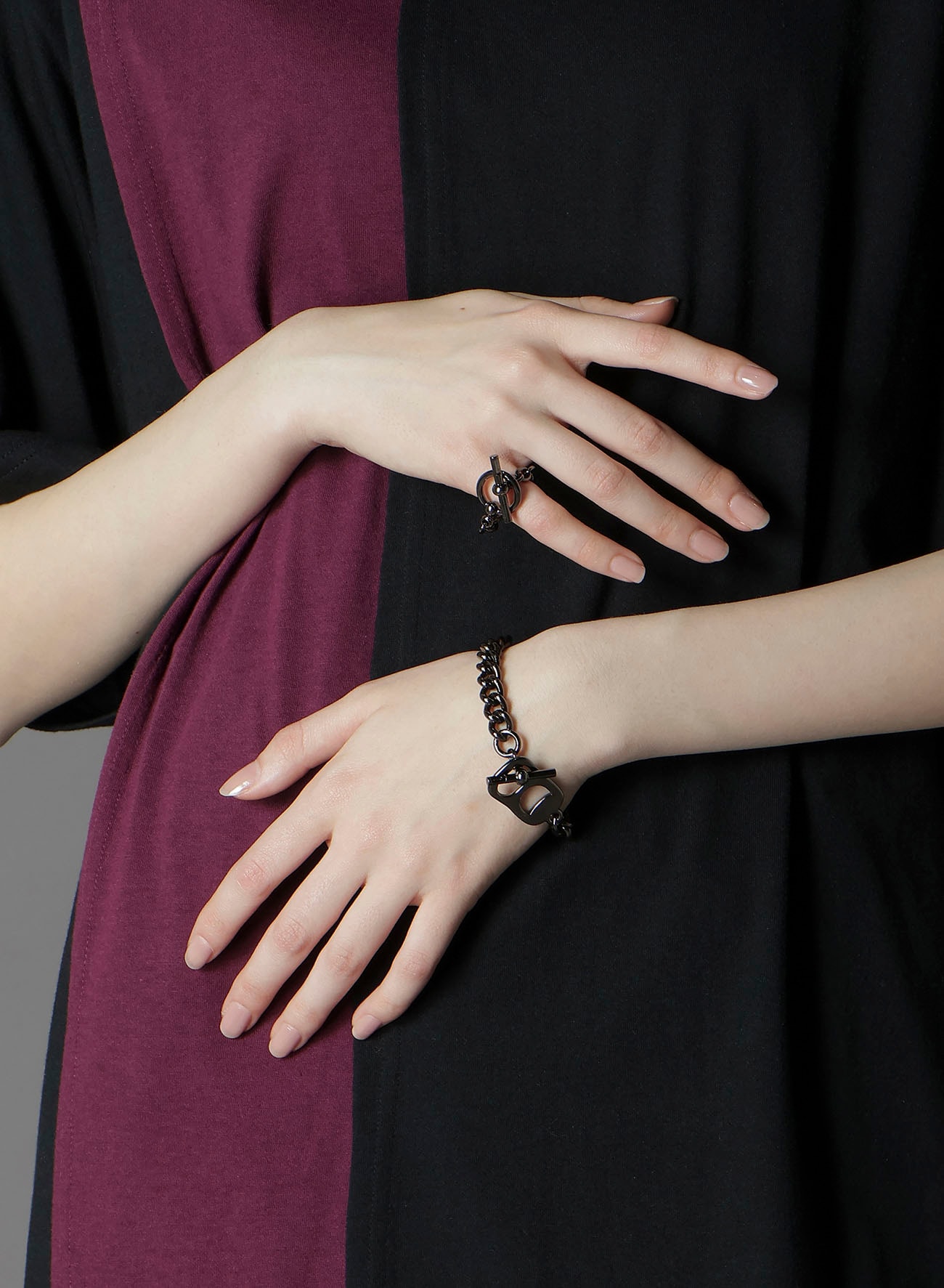 留め具として使用するマンテル(金具)をリングに落とし込んだデザイン。