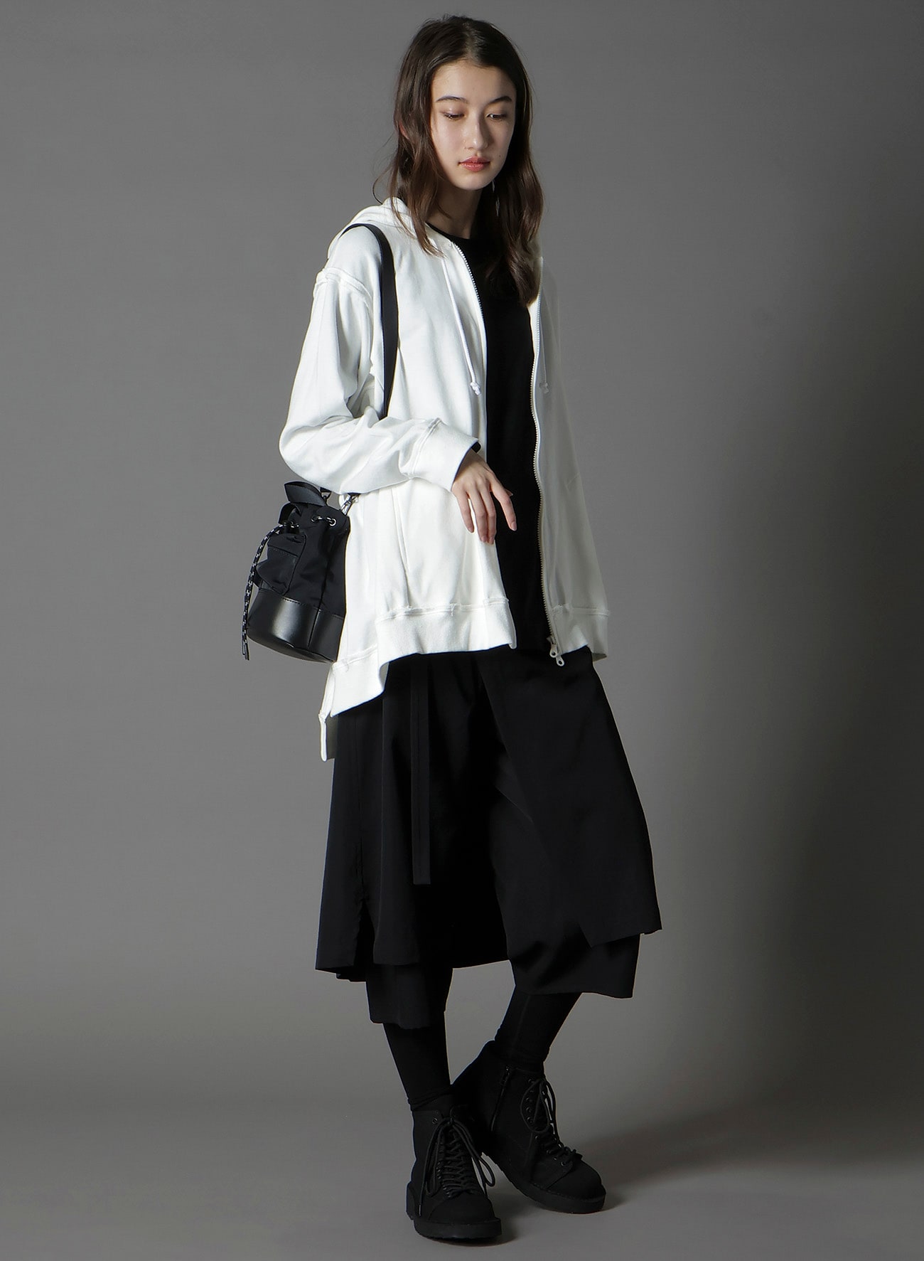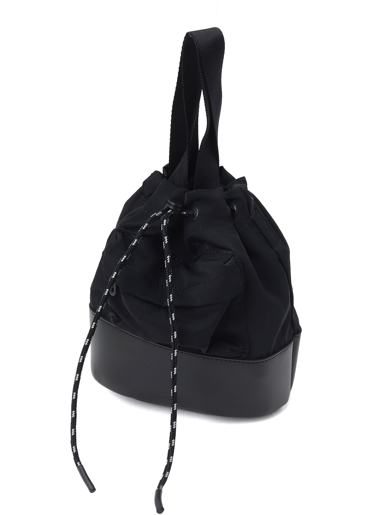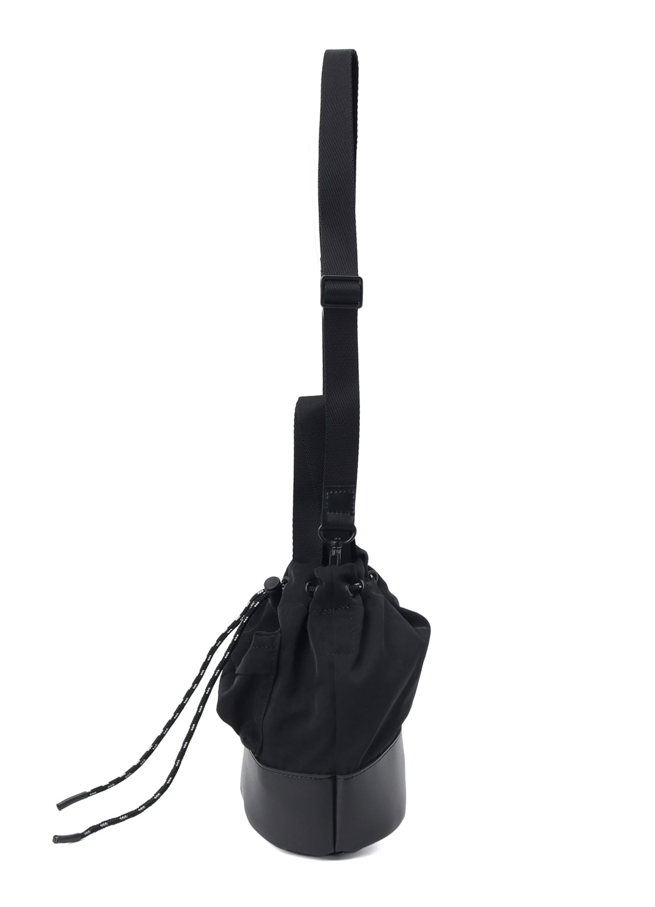 Ground Y 2025-26Autumn/Winter Collectionモードカジュアルなデザインの小ぶりなショルダーバッグです。便利な前ポケット収納付きで、実用性も高いアイテムです。手持ちでもショルダーでもお使いいただける、2WAY仕様です。シワ加工を施した味のあるナイロン素材を用いた、デイリー使いにおすすめのアイテムです。本体の下部分の切り替えは、サスティナビリティの観点から丈夫な特殊不織布を用いて作られた人工皮革を使用しています。