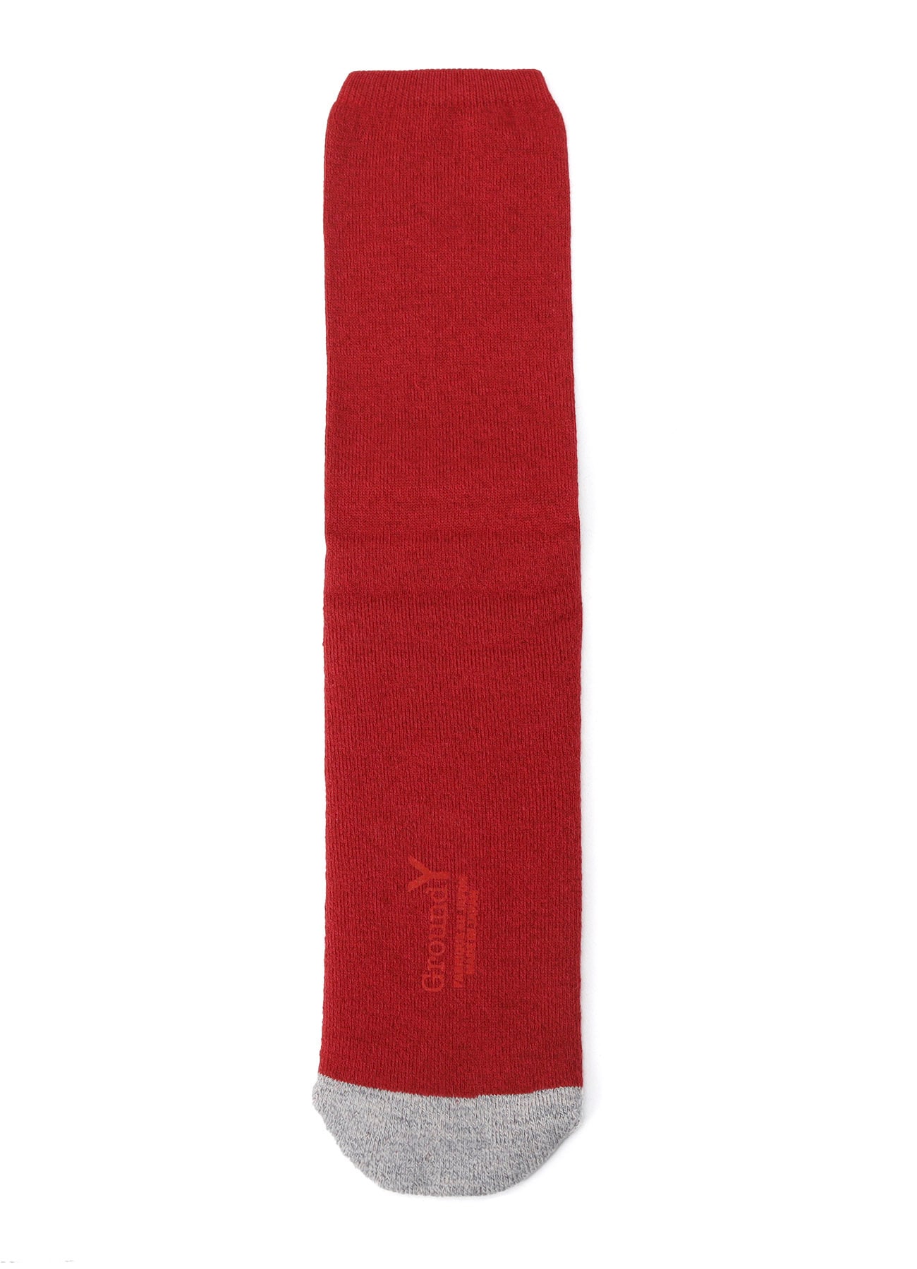 Ground Y 2025-26Autumn/Winter Collectionかかとがなくサイズレスで履けるチューブソックスです。フリーサイズで男女兼用にお使いいただけます。厚みのある靴下ですので、秋冬シーズンにオススメのアイテムです。足先の色が変わるツートンカラーのデザインをお楽しみください。
