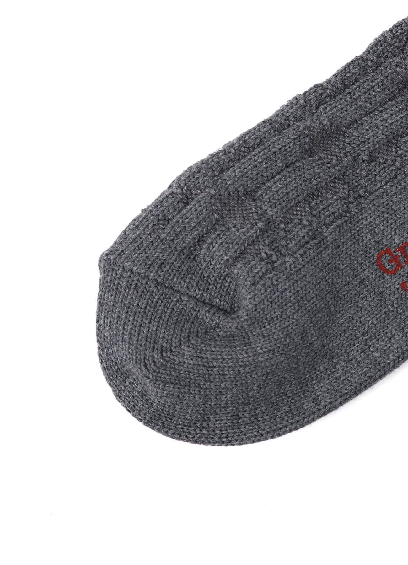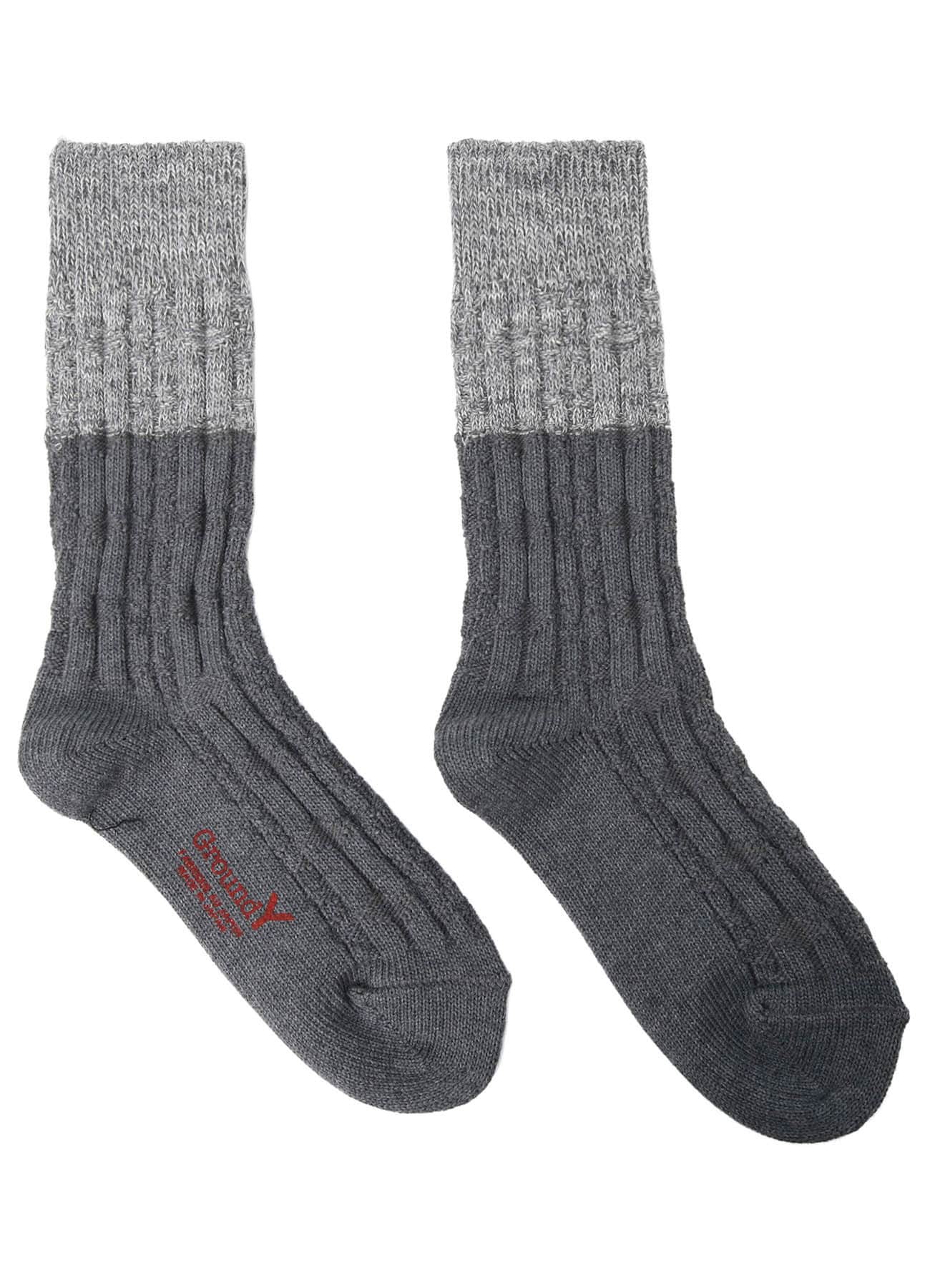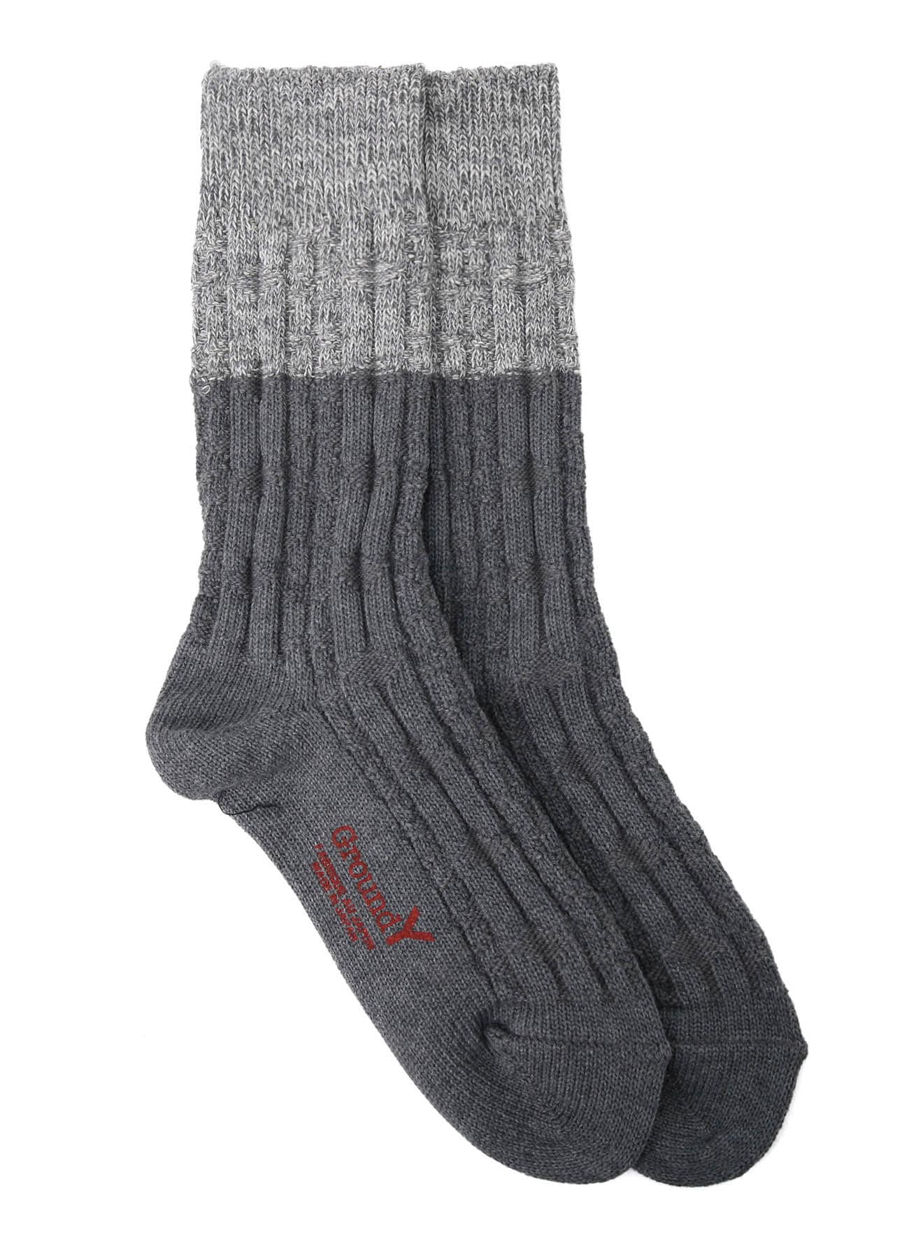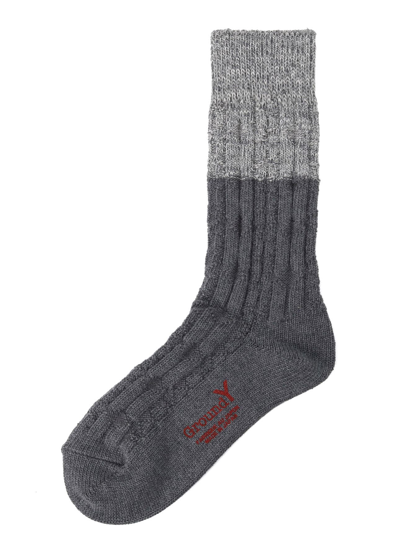 凹凸のあるリンクス編みデザインが秋冬らしいのソックスです。ふくらはぎがツートンカラーの配色になるカラーですので、コーディネートの中に遊び心を取り入れてお使いいただけます。