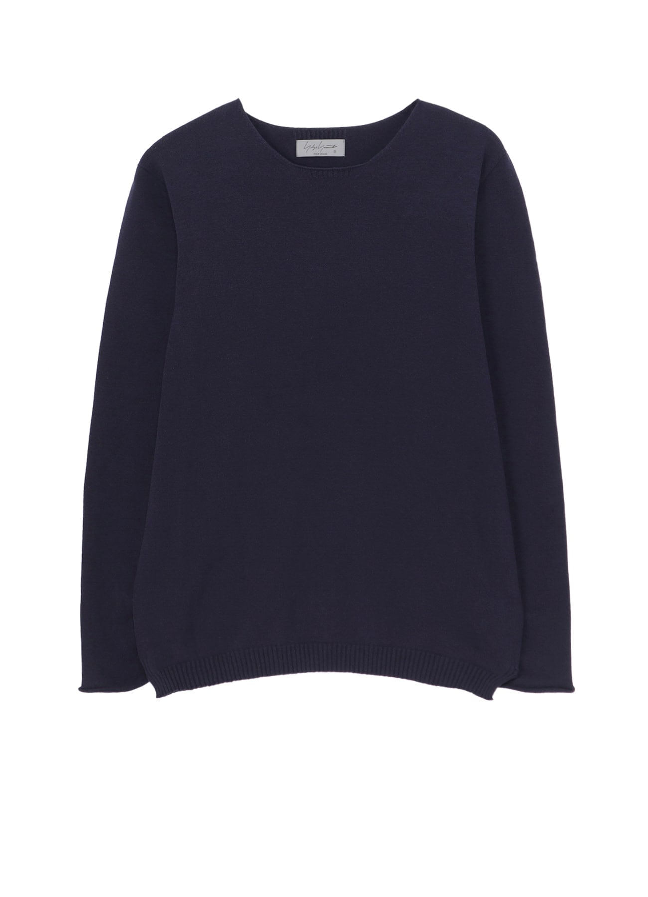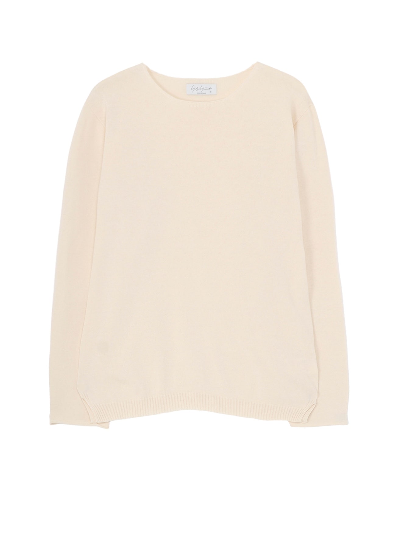 綿カシミヤの混紡糸を使用した丸首ニット。通常よりも撚りを甘く仕上げており、綿の柔らかさにプラスしてカシミヤの豊かな風合いがあります。この糸に使用しているカシミヤは、カシミヤの糸を紡績する際の工程で必ず出てしまう落ち綿を再利用し、綿のわたに再度ブレンドした環境に配慮した素材であることも大きな特徴です。