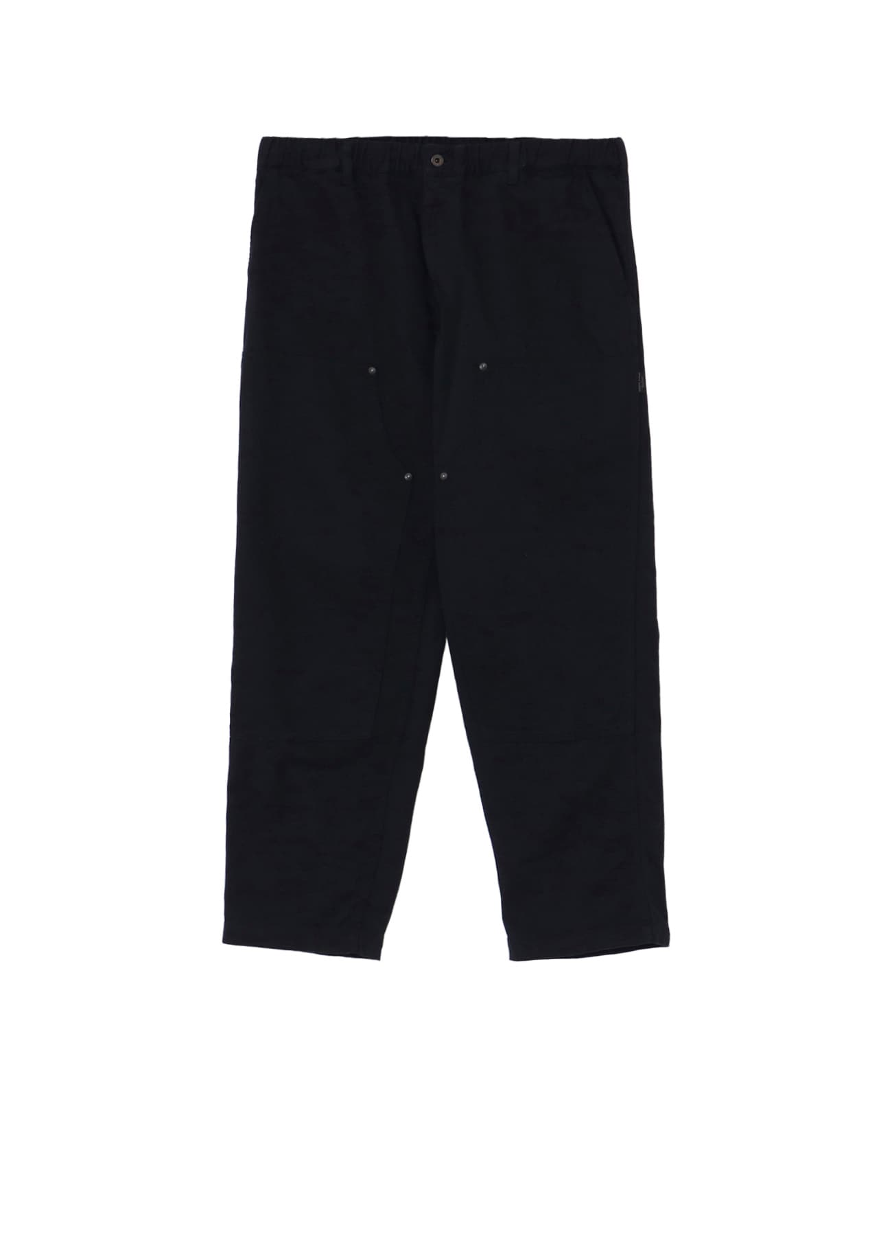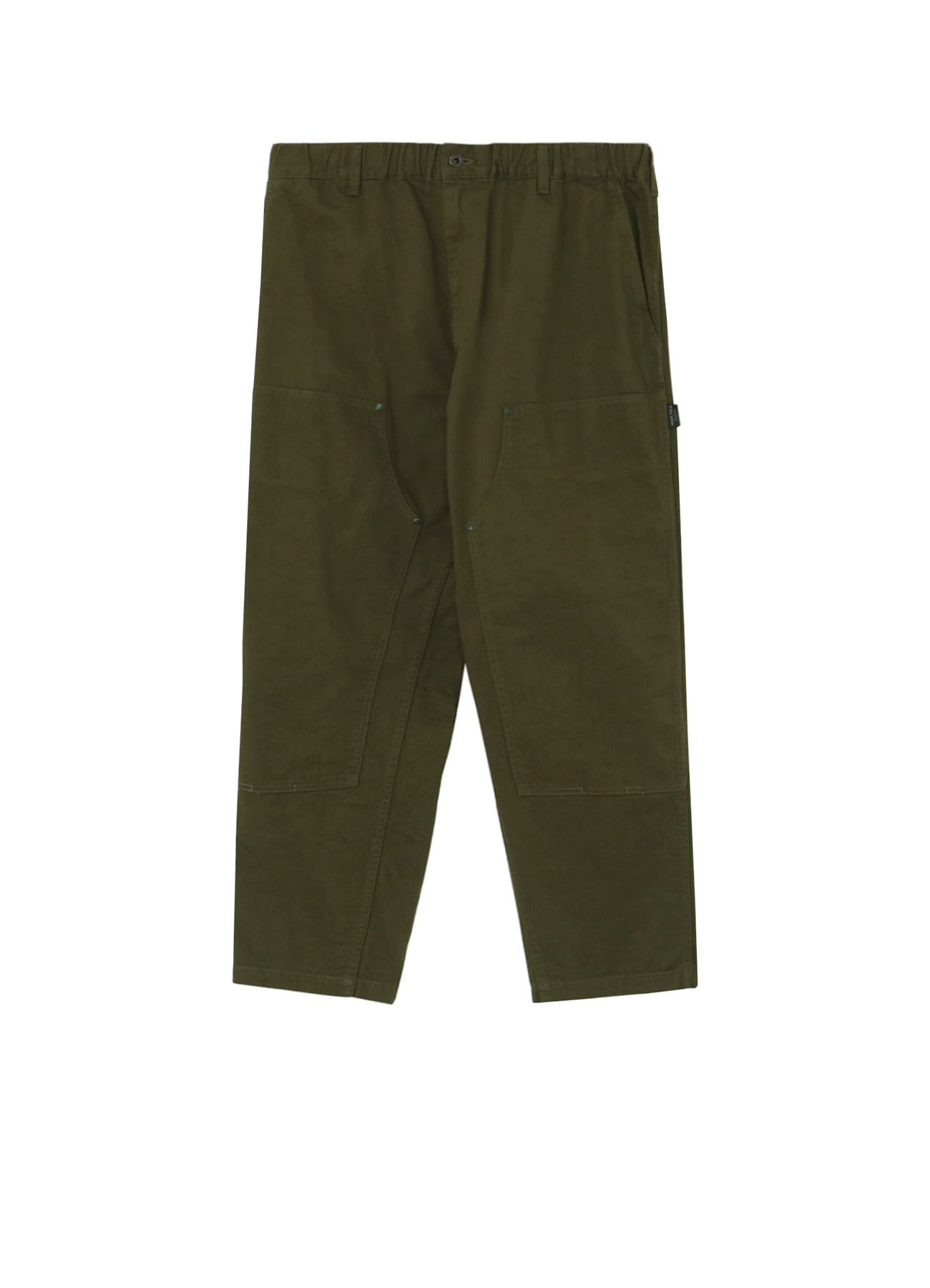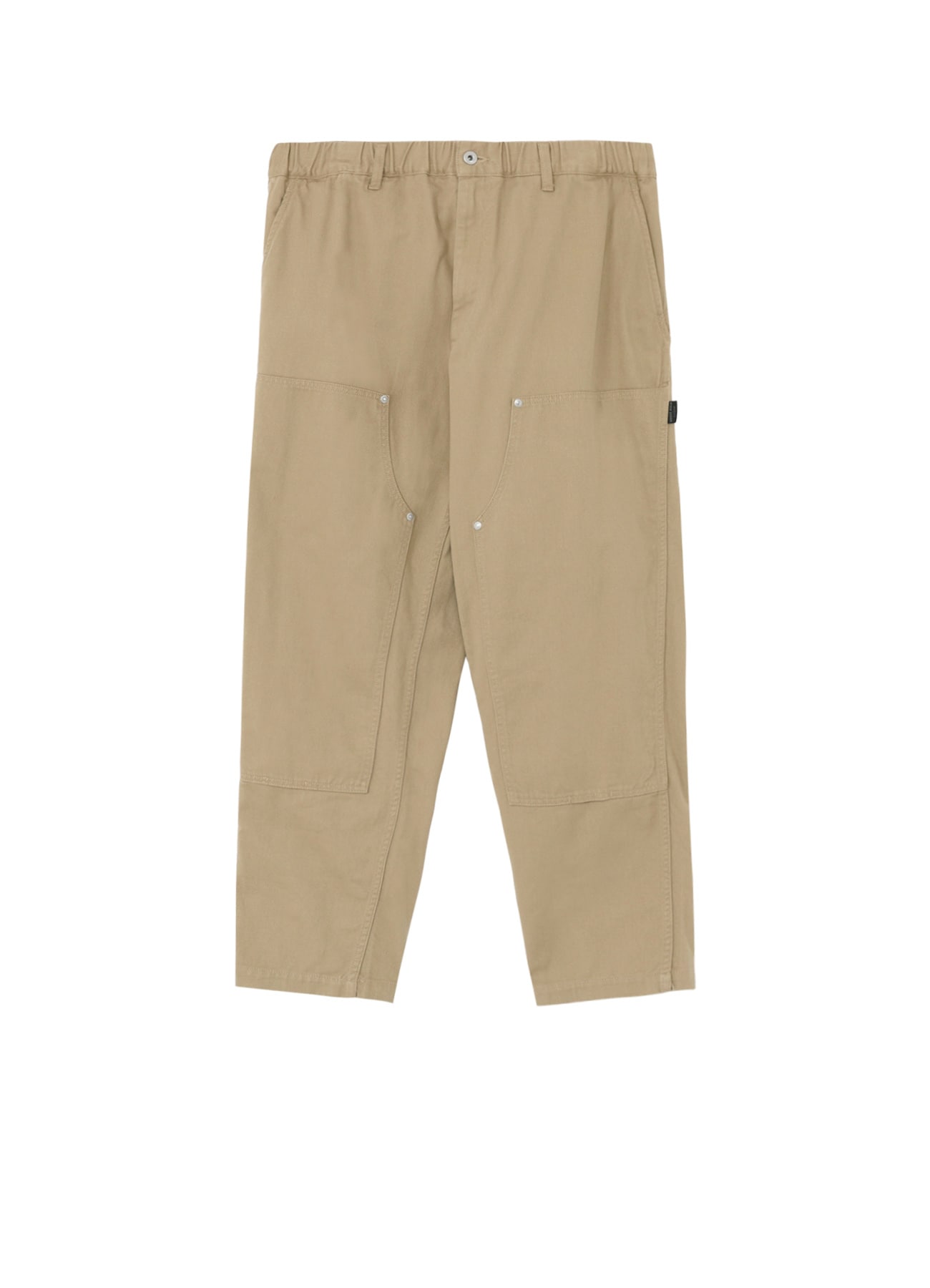 カツラギ生地を使用したダブルニー仕様のワークパンツ。太い糸で織られた綾織物で、綾目と呼ばれる斜めの線が表面に現れるのが特徴です。綾部分が45度以上と急角度のため、水滴や雨粒が流れ落ちやすくワークウエアに適した丈夫な生地です。