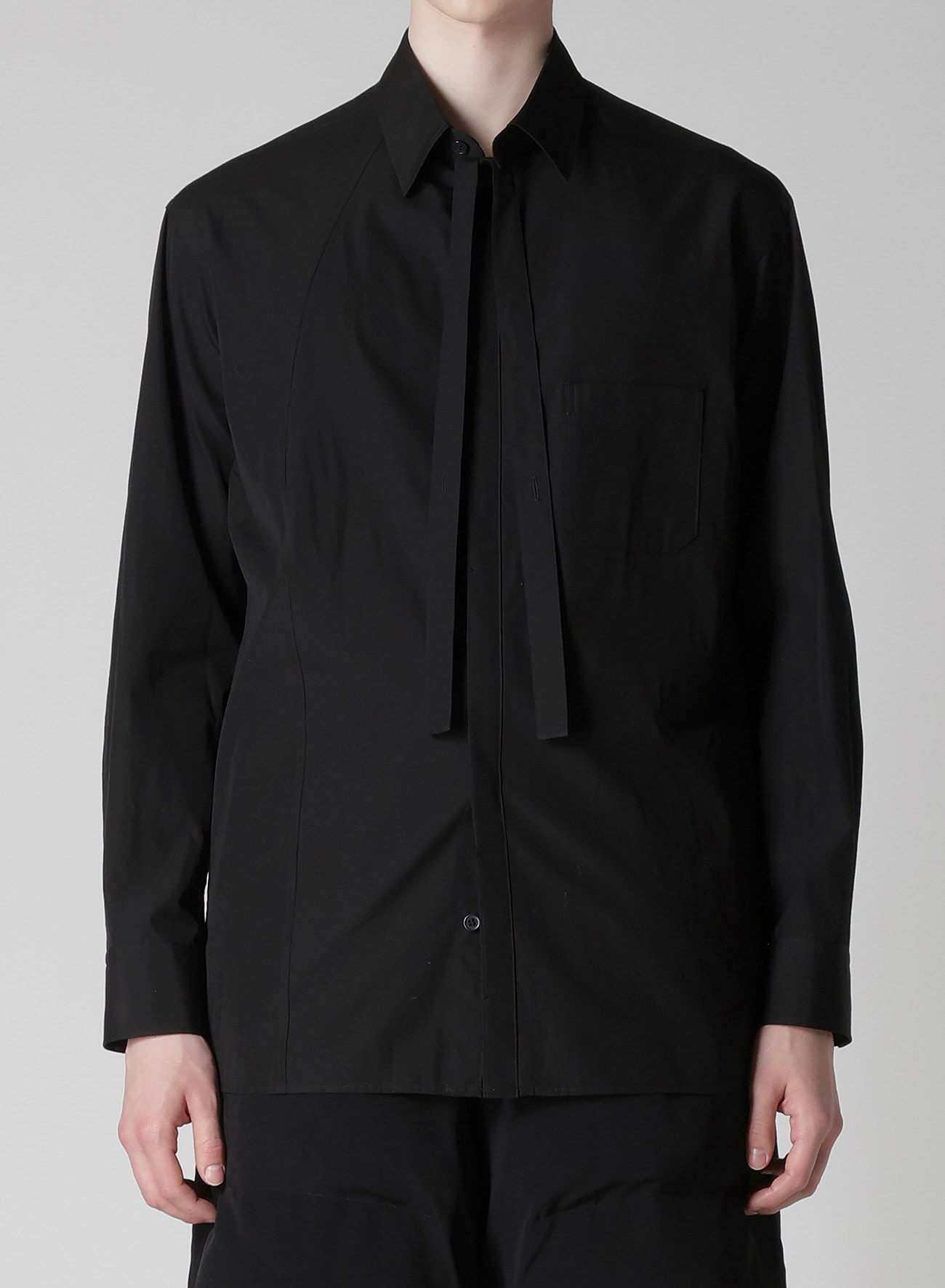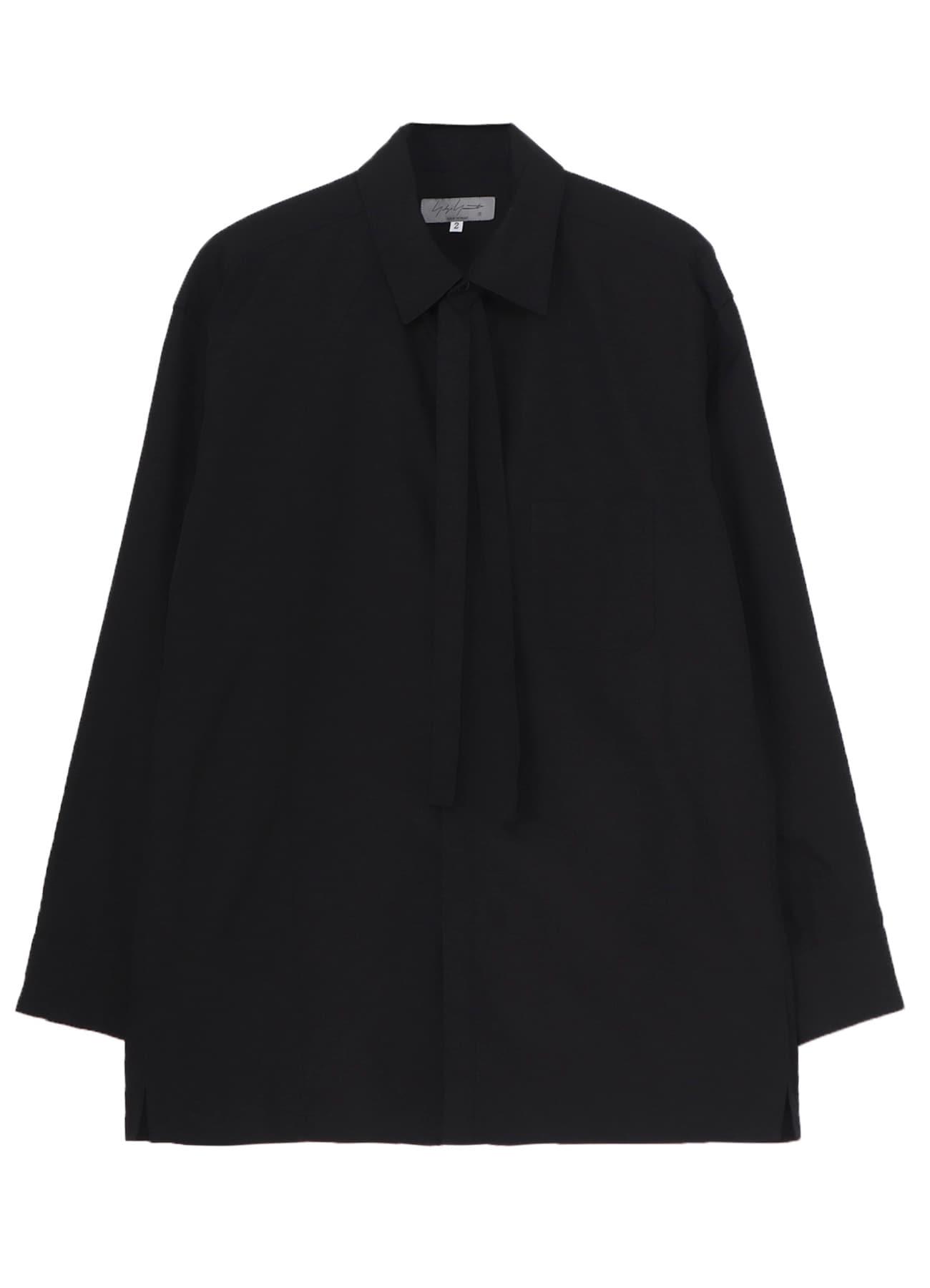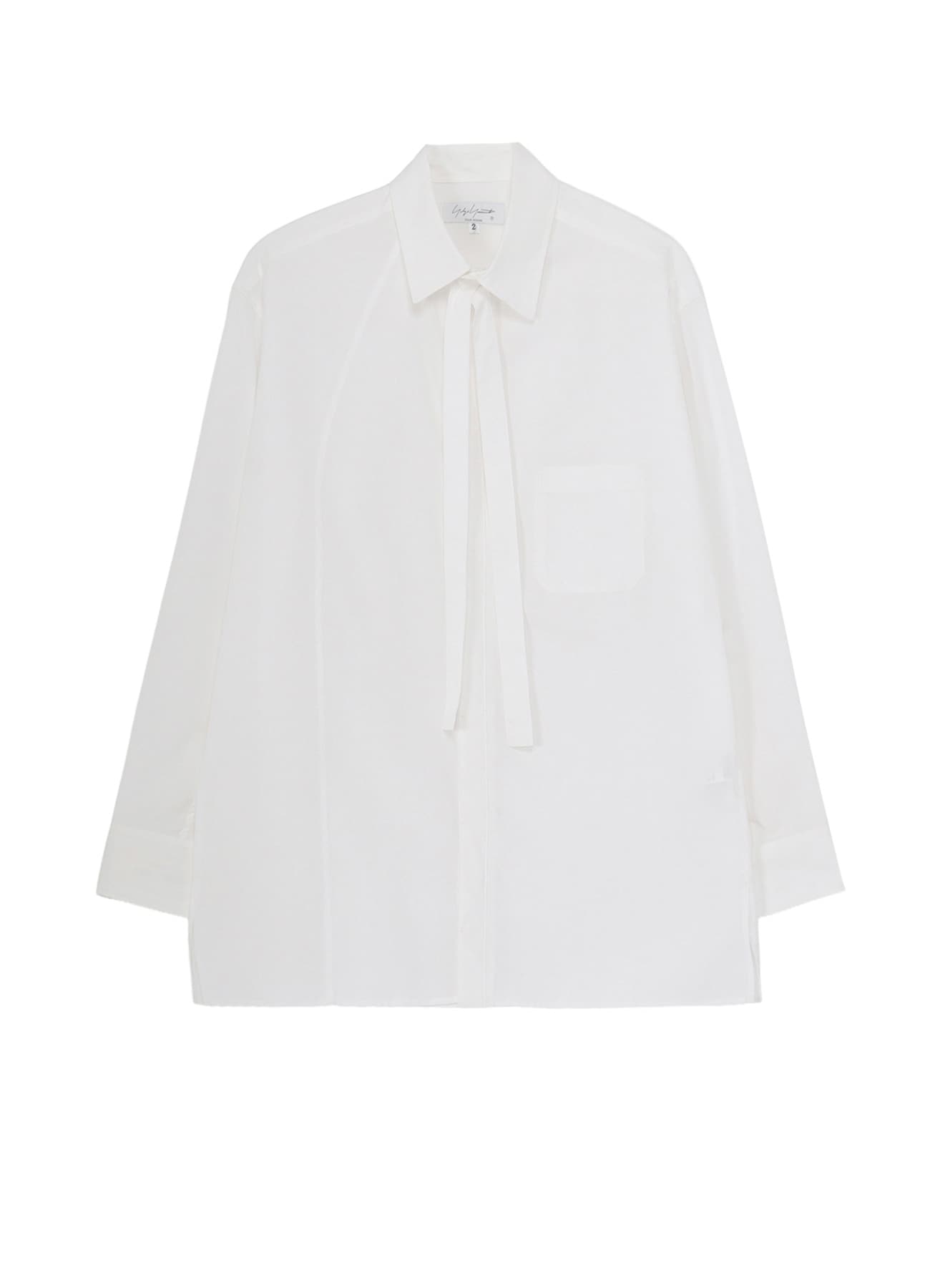シャツ地の定番であるコットンブロード生地を使用したボウタイ付きブラウス。