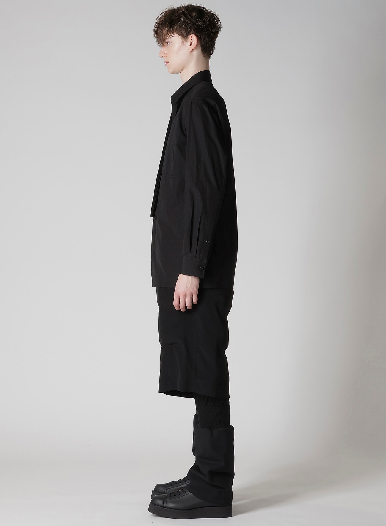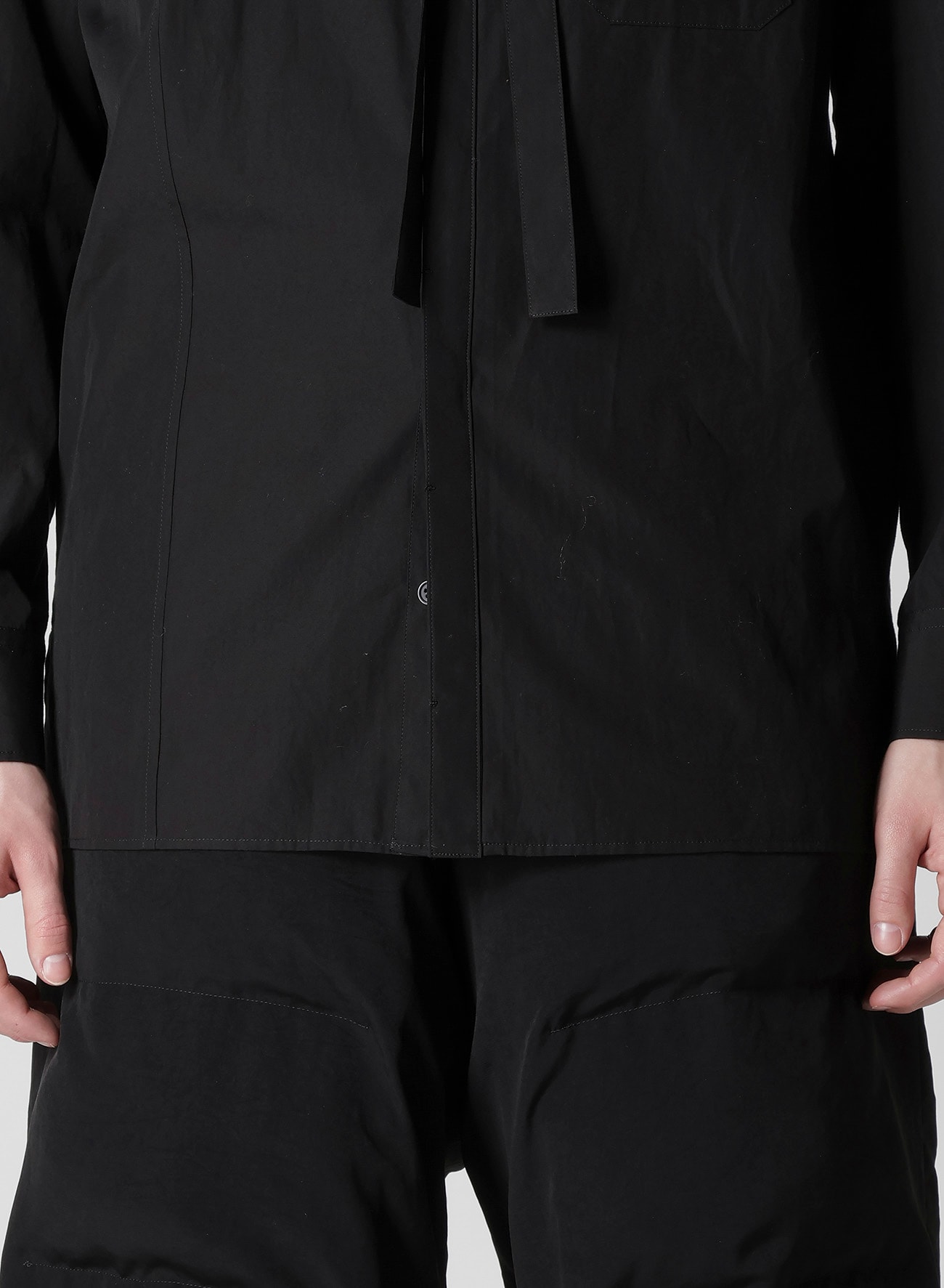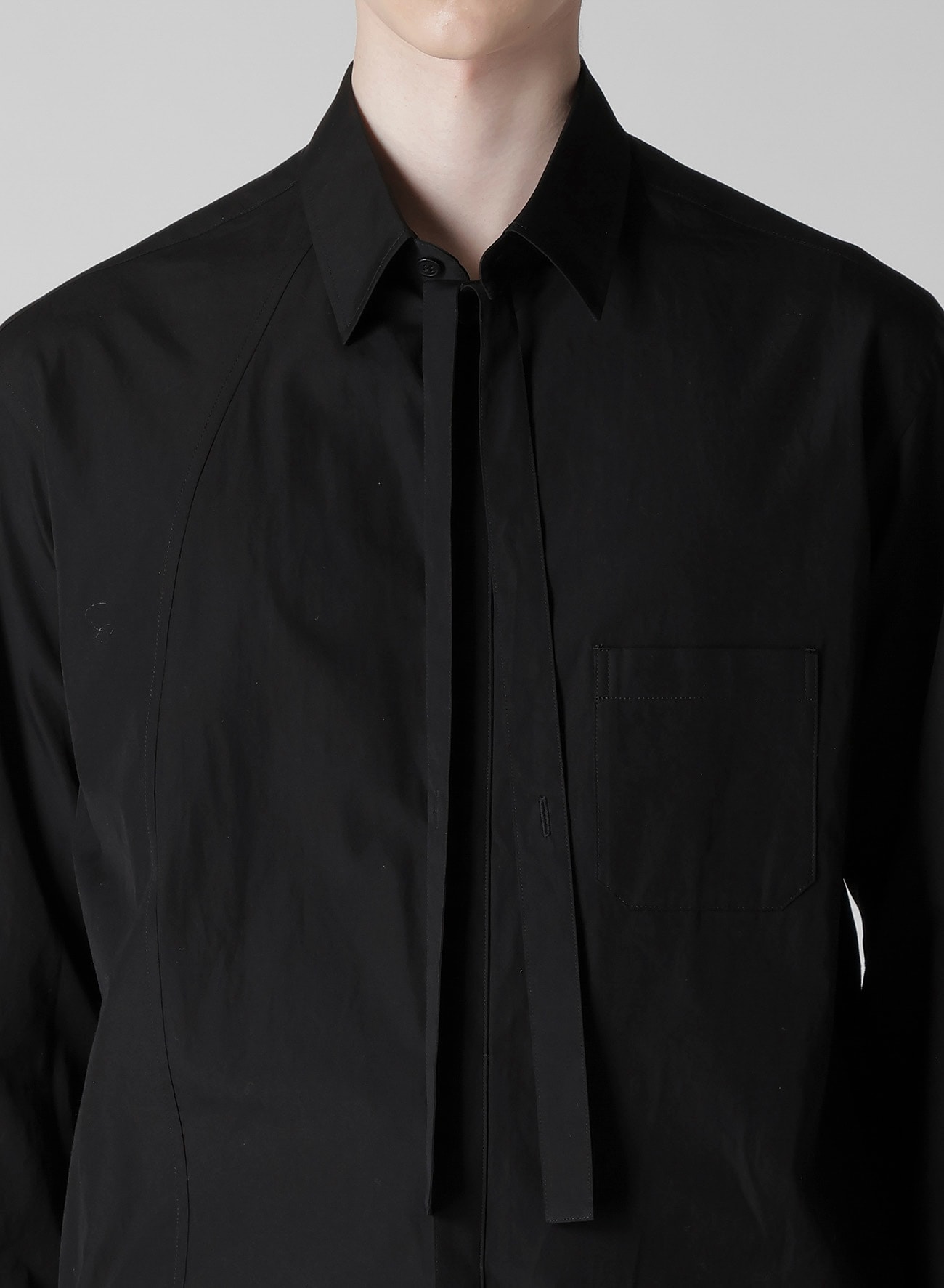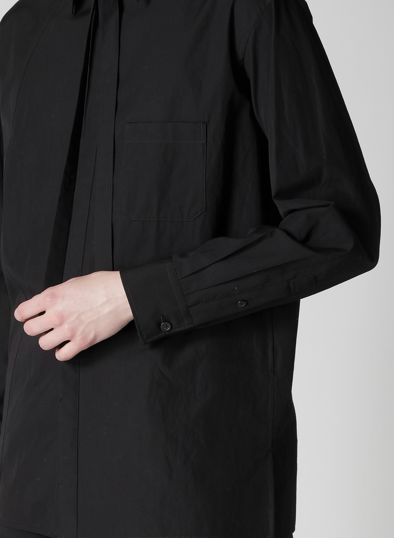 シャツ地の定番であるコットンブロード生地を使用したボウタイ付きブラウス。