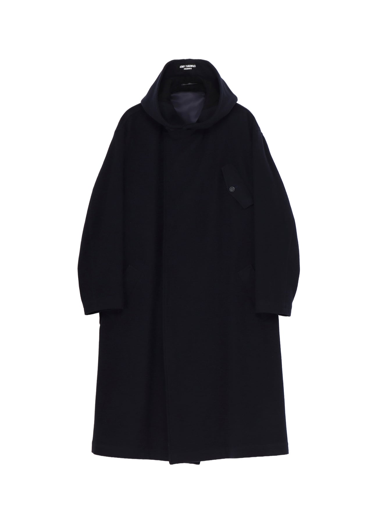 秋冬シーズン定番素材のエアリーモッサを使用したフードコート。紡毛で織り上げられた生地を起毛し、毛を寝かさずふっくら立たせることによって柔らかい風合いを実現しています。軽い生地感が特徴ですが、保温性もあり万能な一着です。