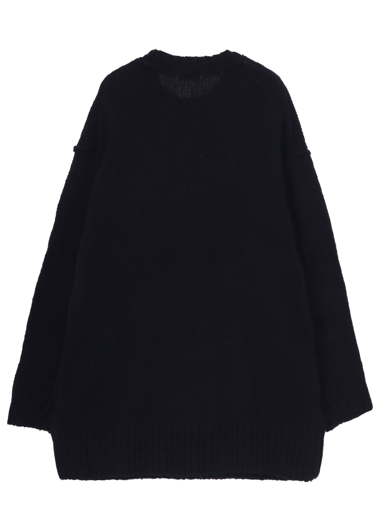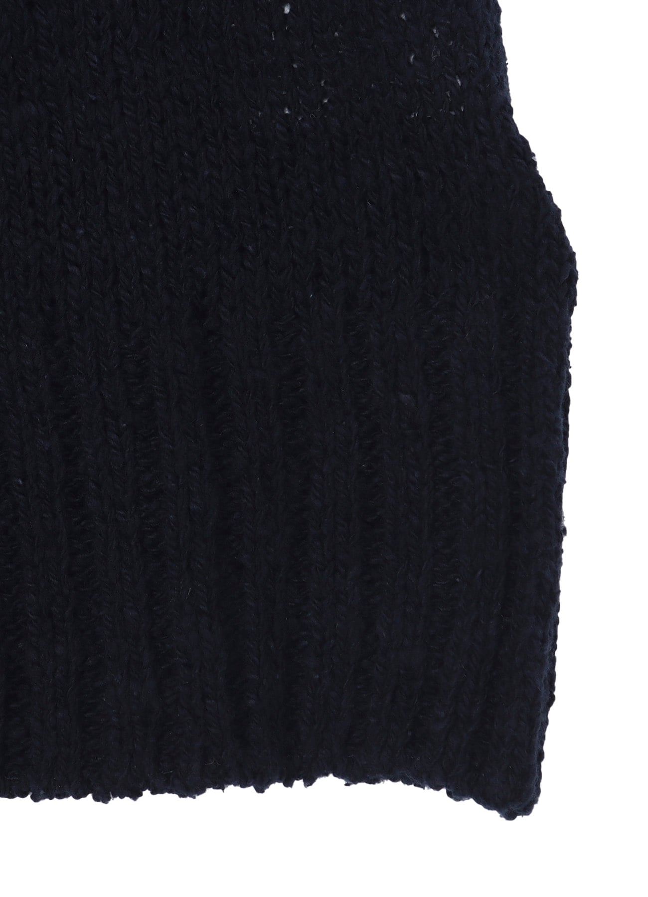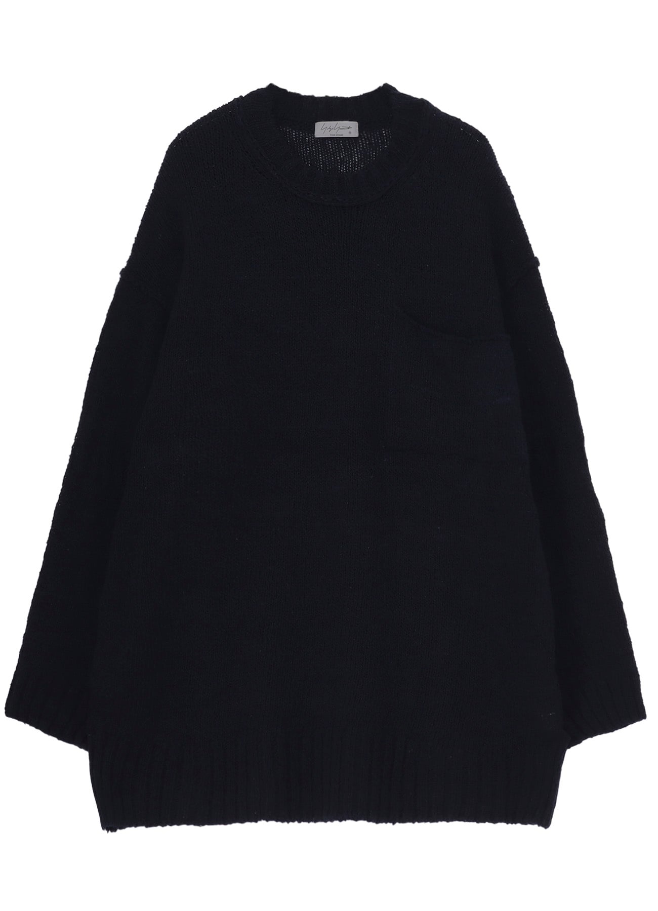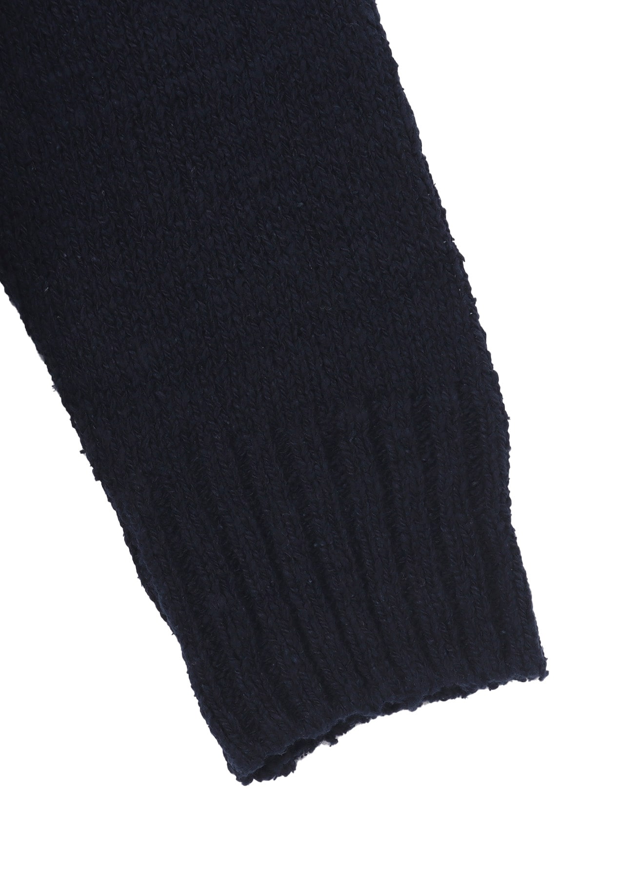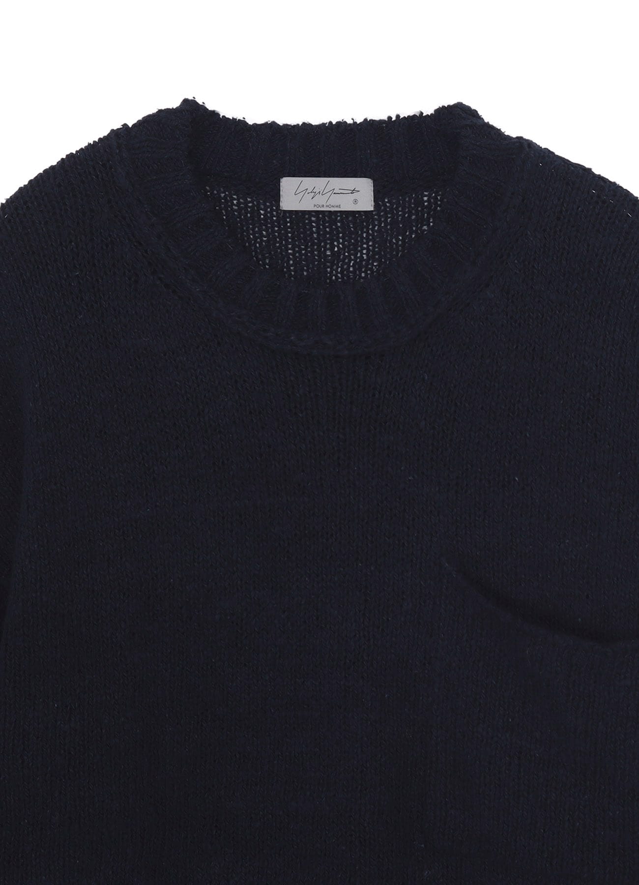 綿糸を使用した胸ポケット付き丸首ニット。通常の綿の紡績糸と比べ、糸の表情にあえてムラを加えるような設計にすることで糸に凹凸感が生まれ、まるで手で紡ぎ上げたような表情が特徴です。