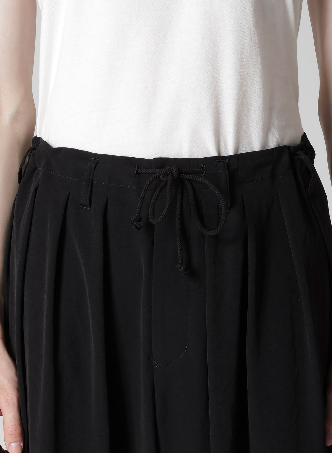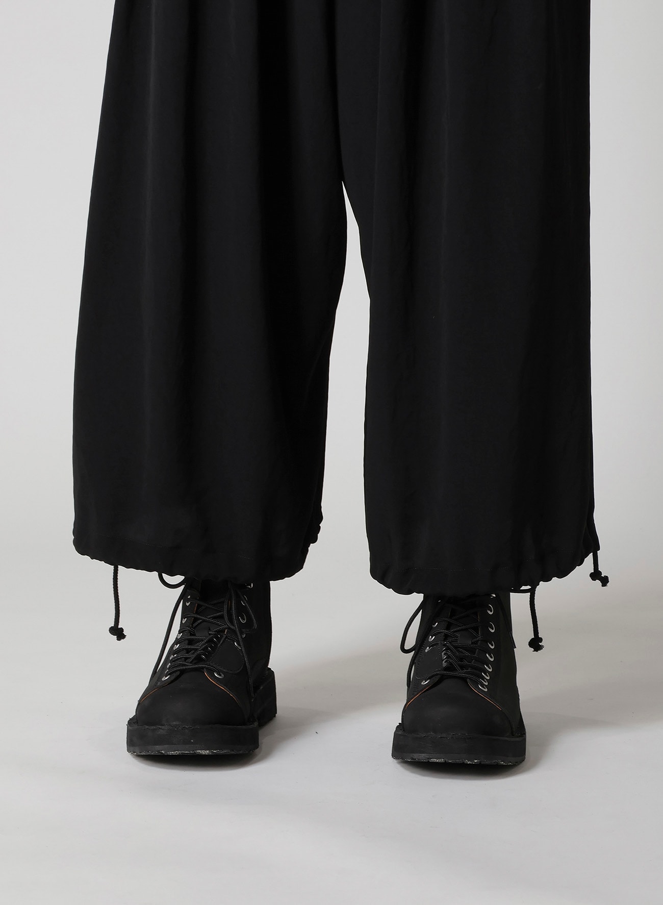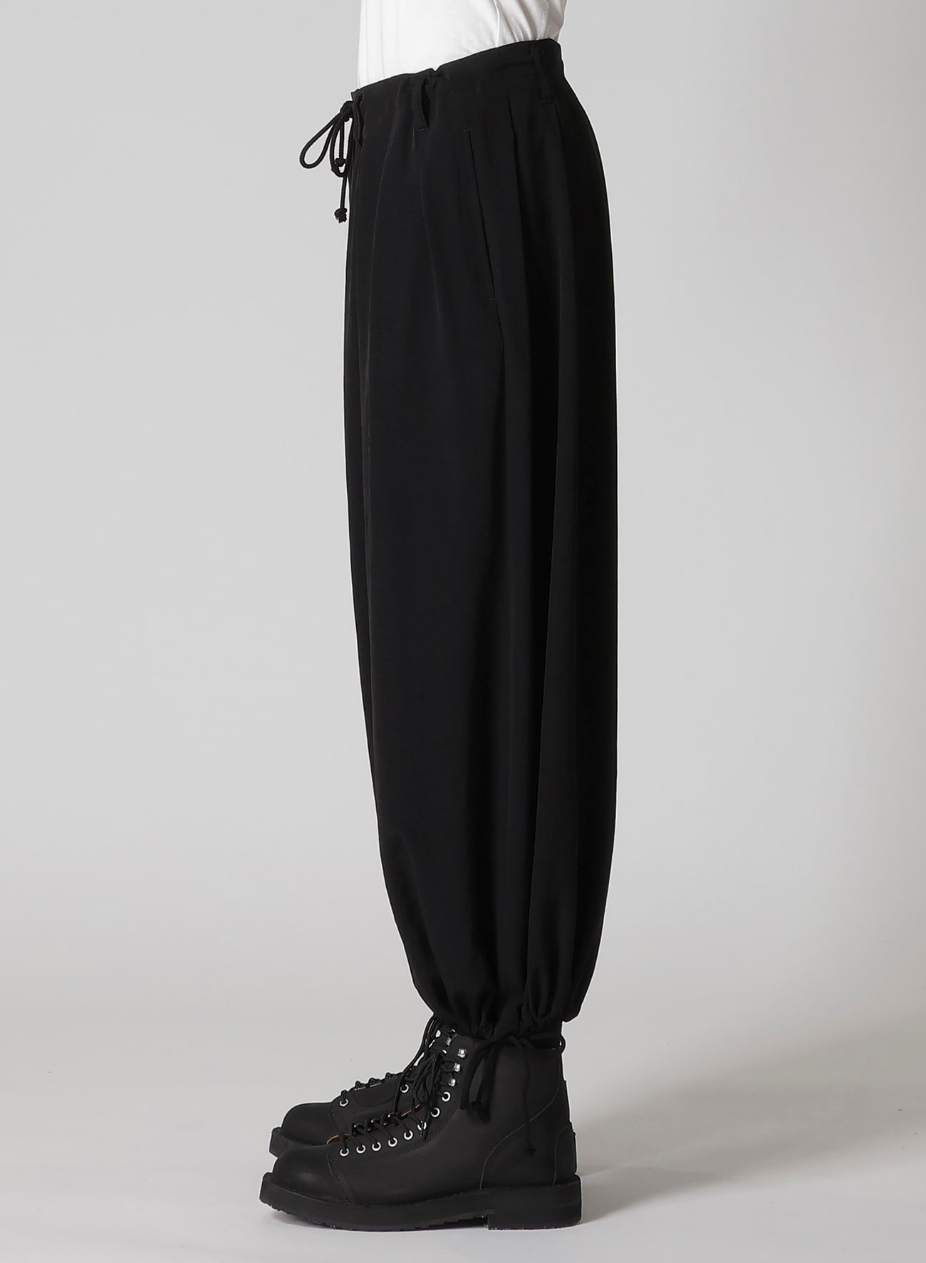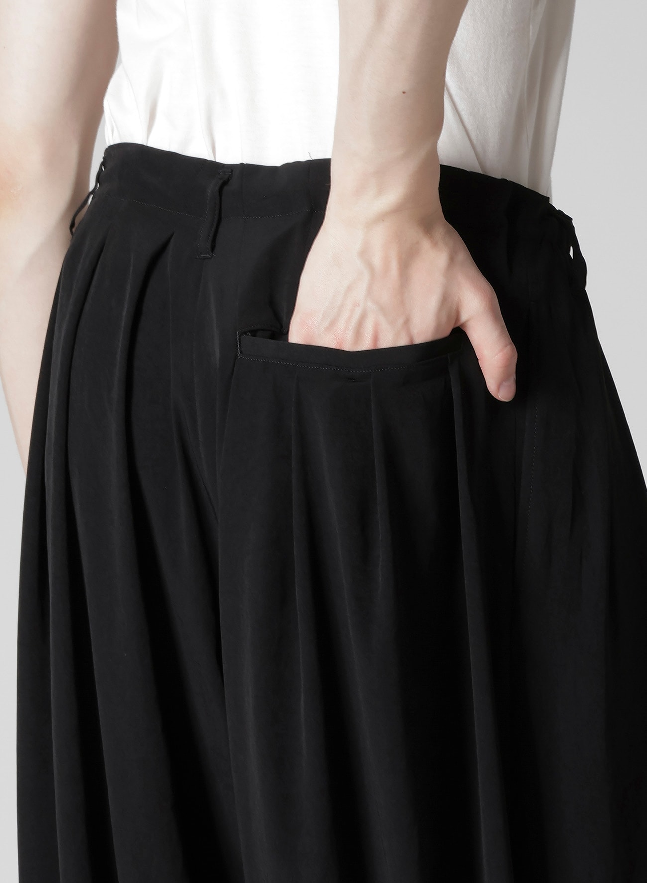 トリアセテート・ポリエステルのタキシード素材を使用した定番バルーンパンツ。マイルドな光沢感と高級感を持ち合わせたYohji Yamamotoの定番素材です。ヨコ糸に強撚糸を使用して密に織った平織物で、表情豊かなドレープ感が特徴です。
