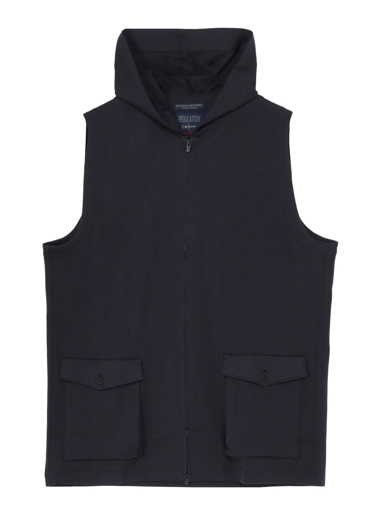目を詰めて編み上げられた天竺を使用したフード付きZIPベスト。密度を詰めて生地を編み立てることで編み目が綺麗に揃い、タフでコシのある風合いが生まれます。凹凸がなく、表と裏がはっきりと違う編み目で横方向に伸びやすいのが特徴です。