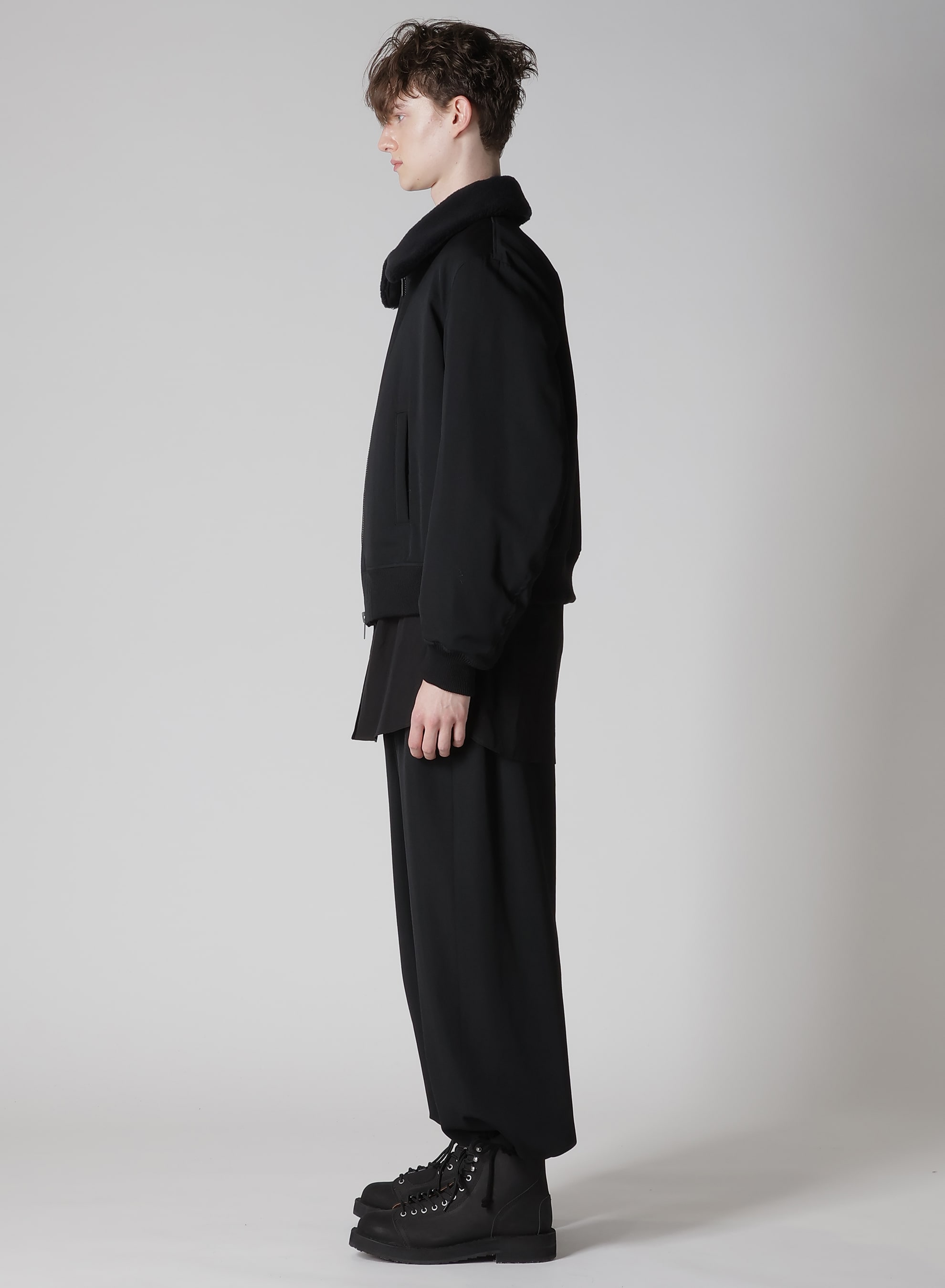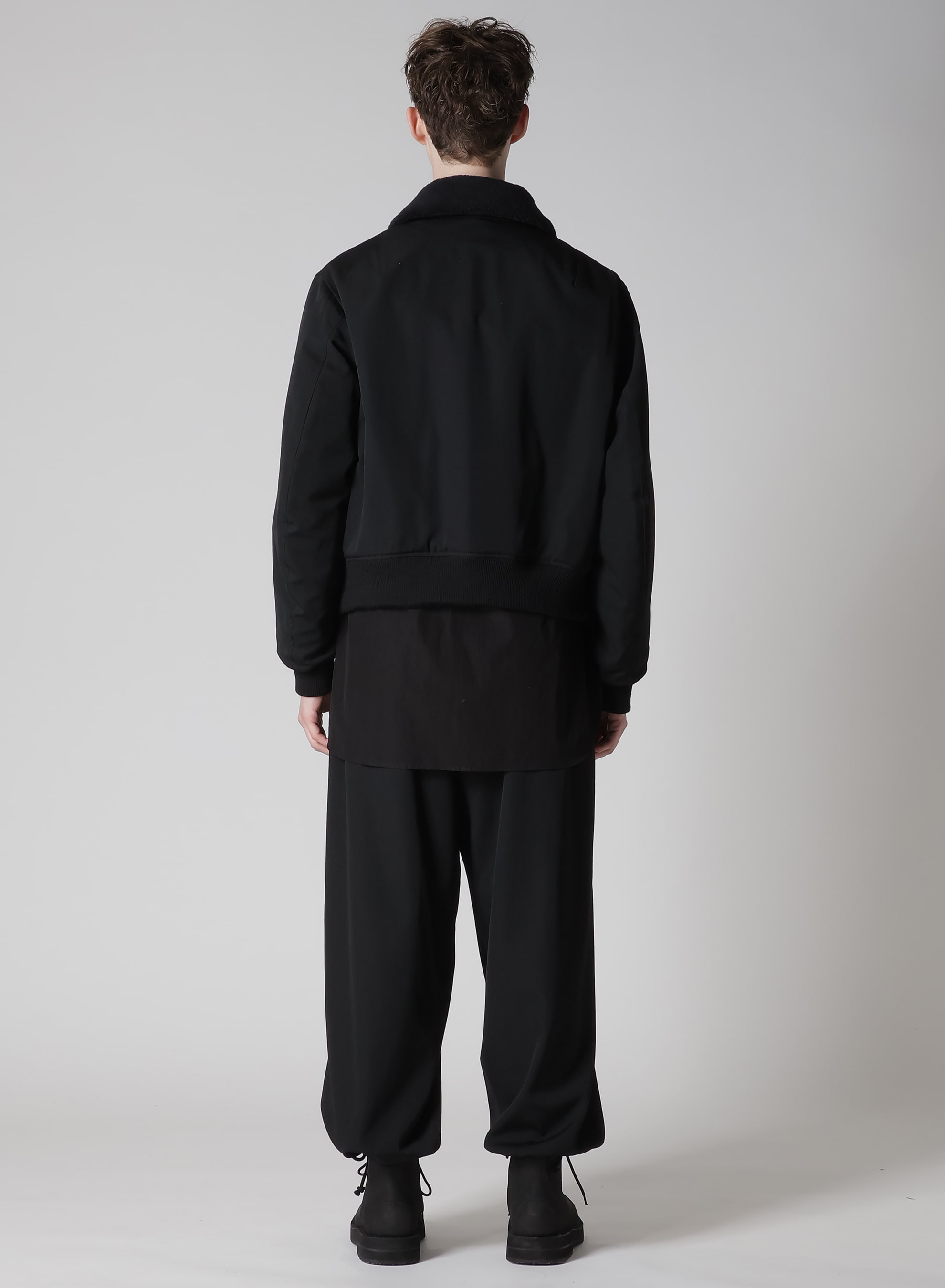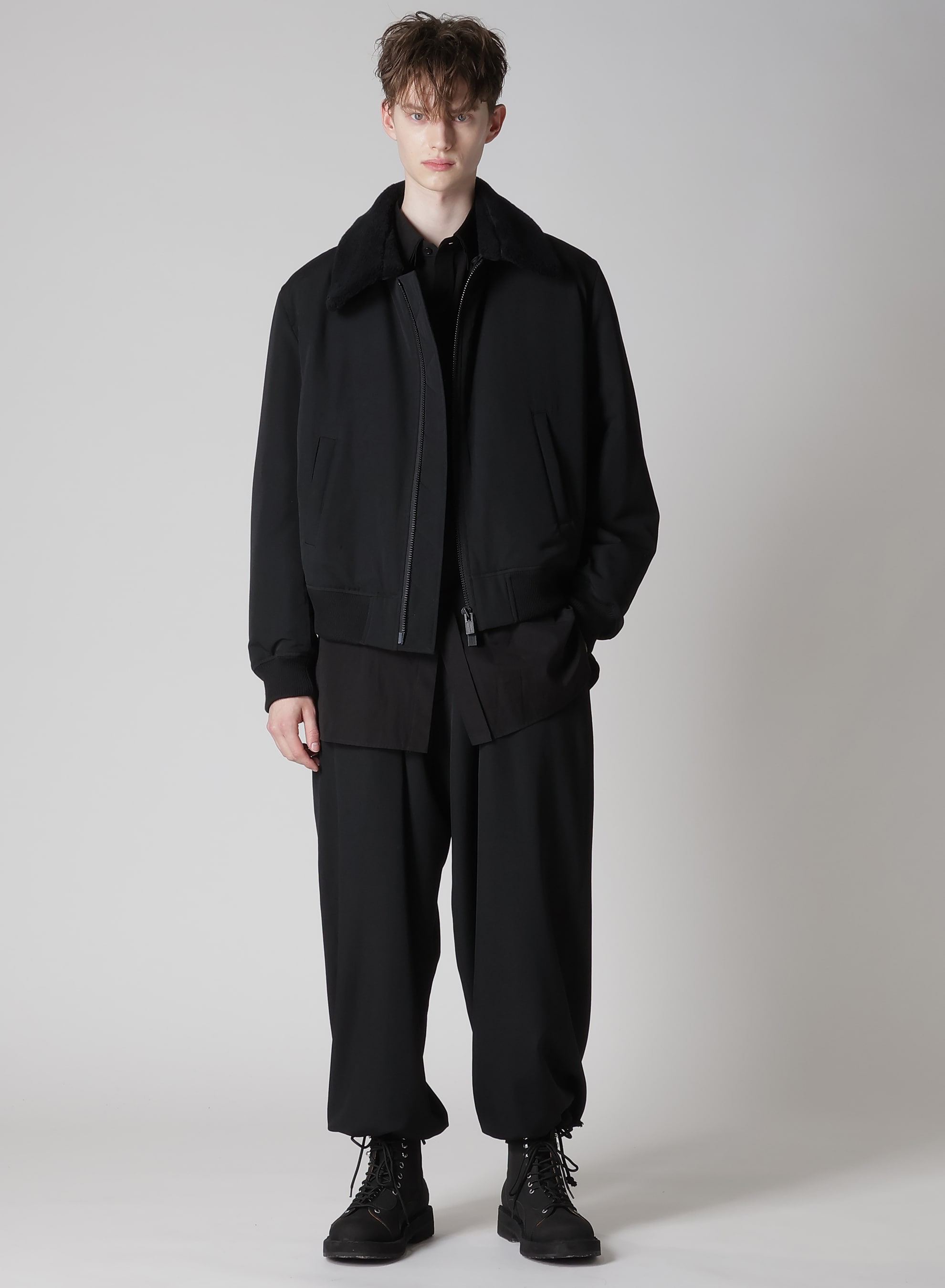 Yohji Yamamotoの代名詞ともいえるウールギャバジンを使用したフライトジャケット。取り外し可能な付け衿と中綿入りの高い保温性が特徴です。しなやかで光沢のあるウールギャバジンから生じるドレープ感が特徴です。