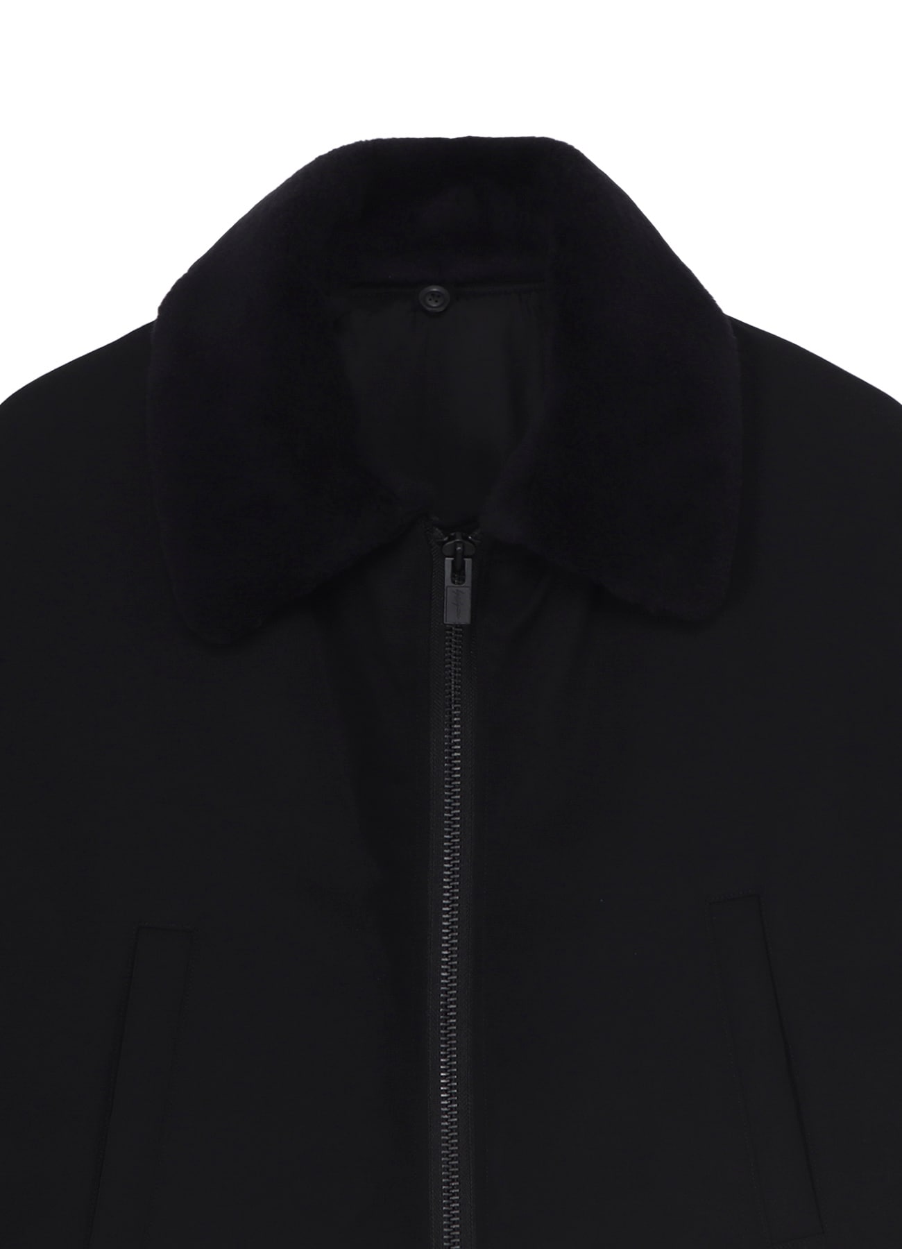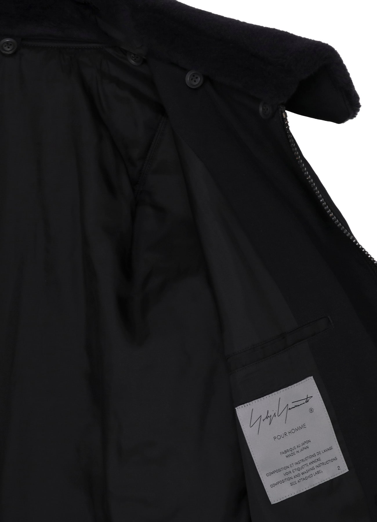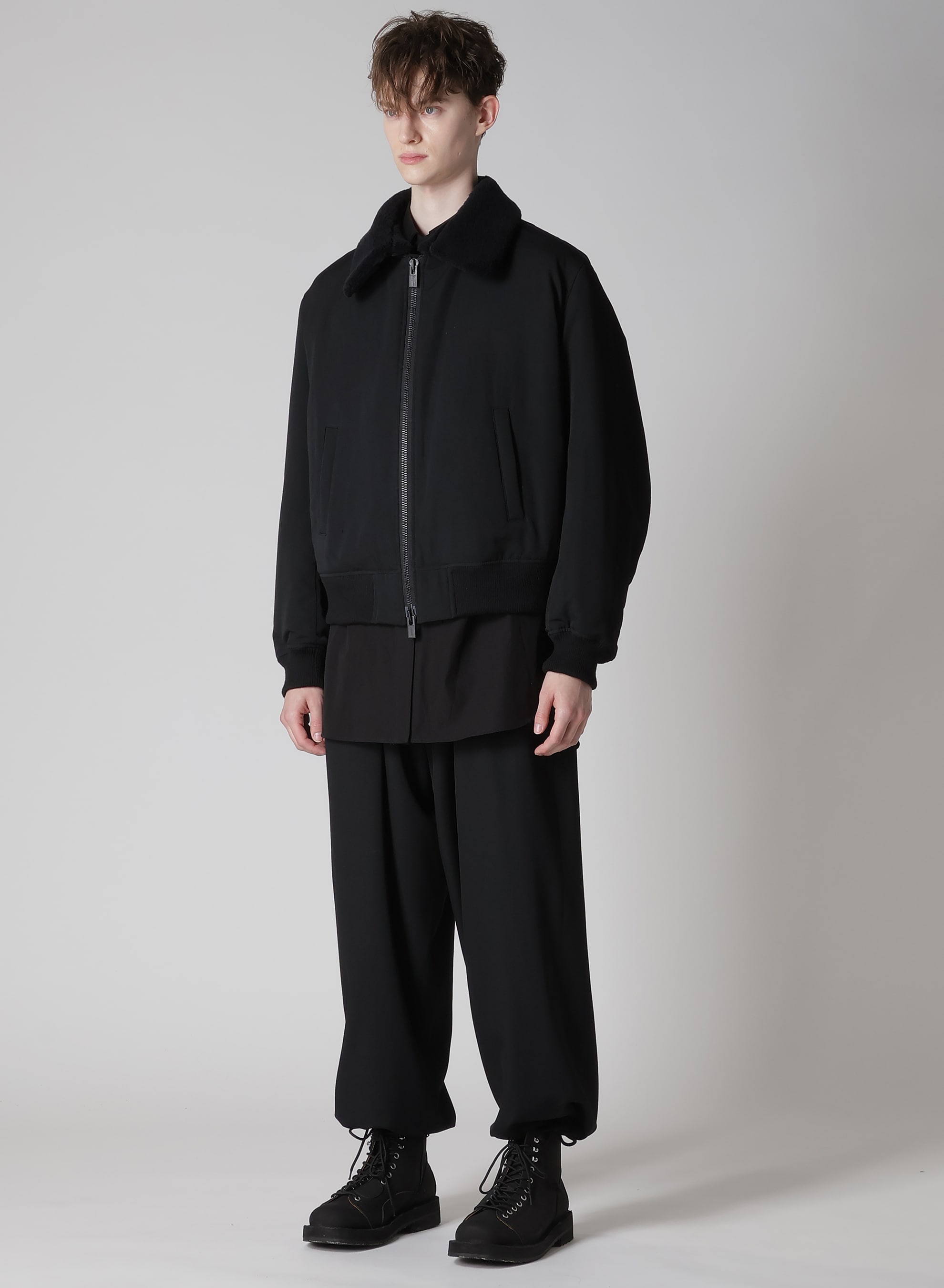 Yohji Yamamotoの代名詞ともいえるウールギャバジンを使用したフライトジャケット。取り外し可能な付け衿と中綿入りの高い保温性が特徴です。しなやかで光沢のあるウールギャバジンから生じるドレープ感が特徴です。