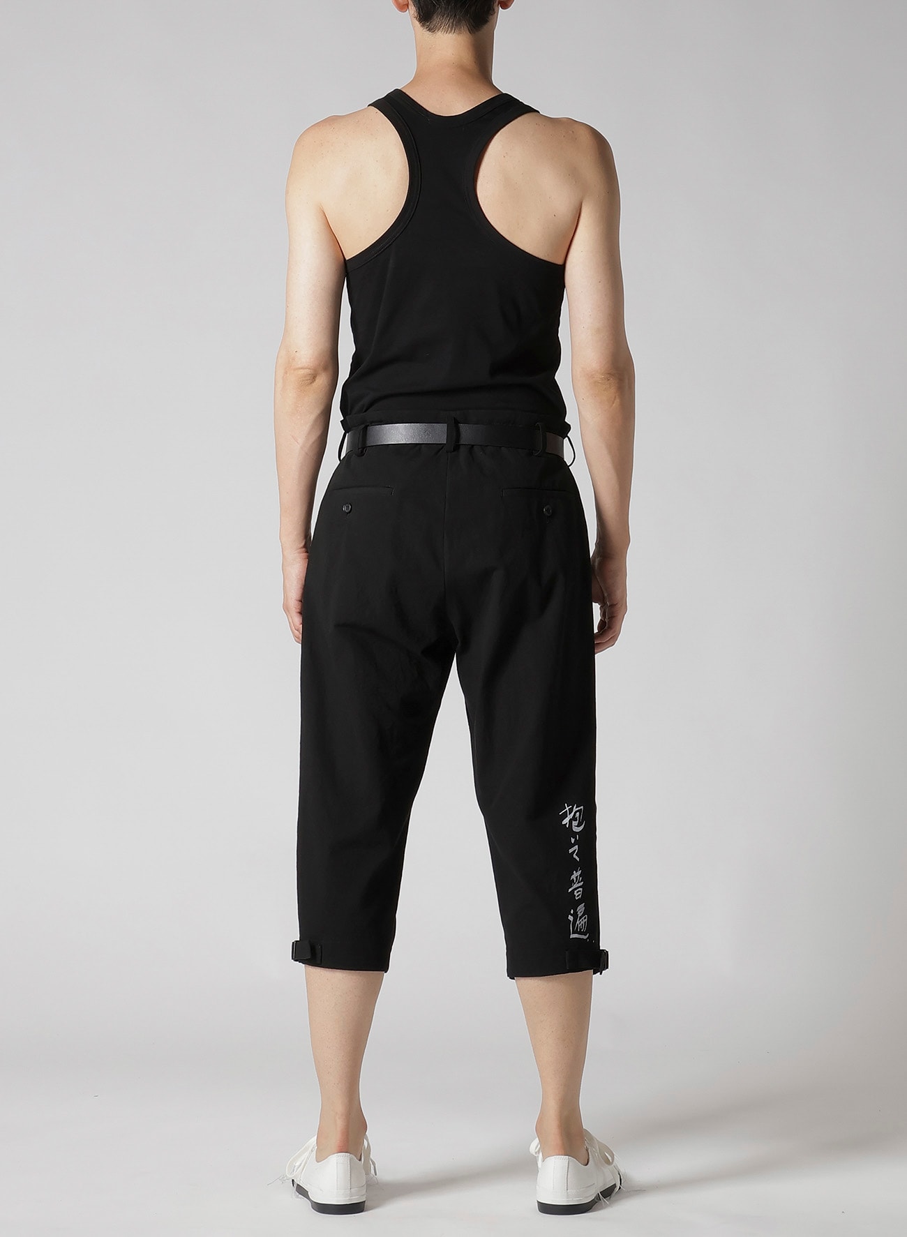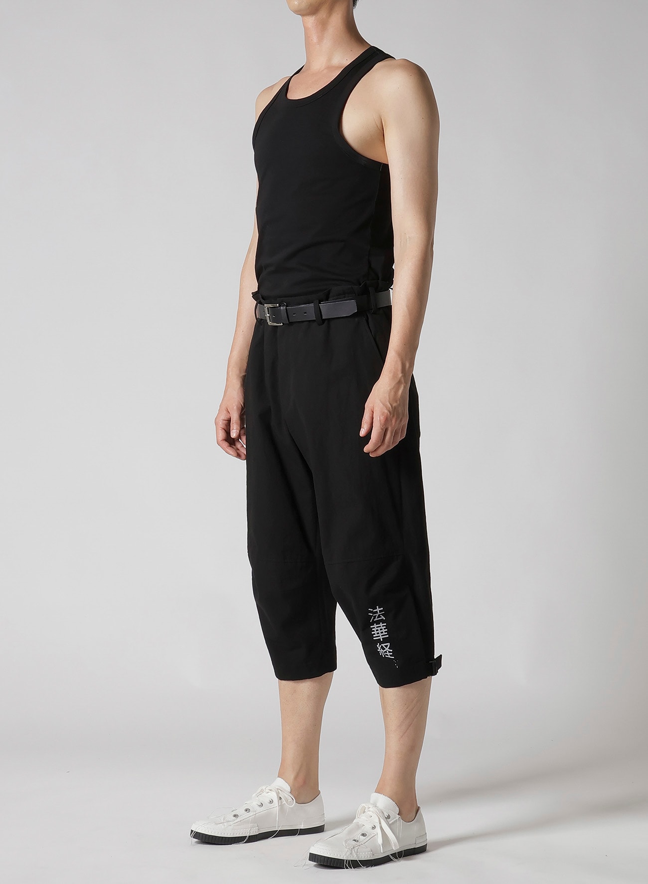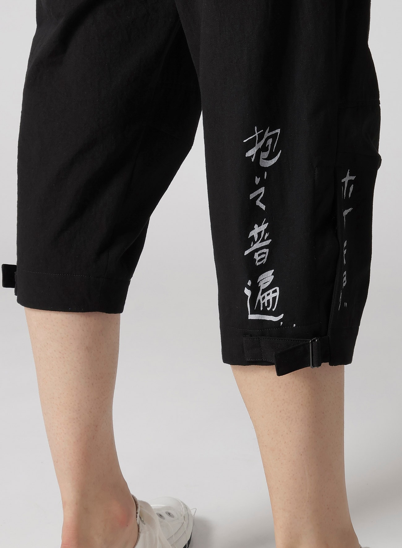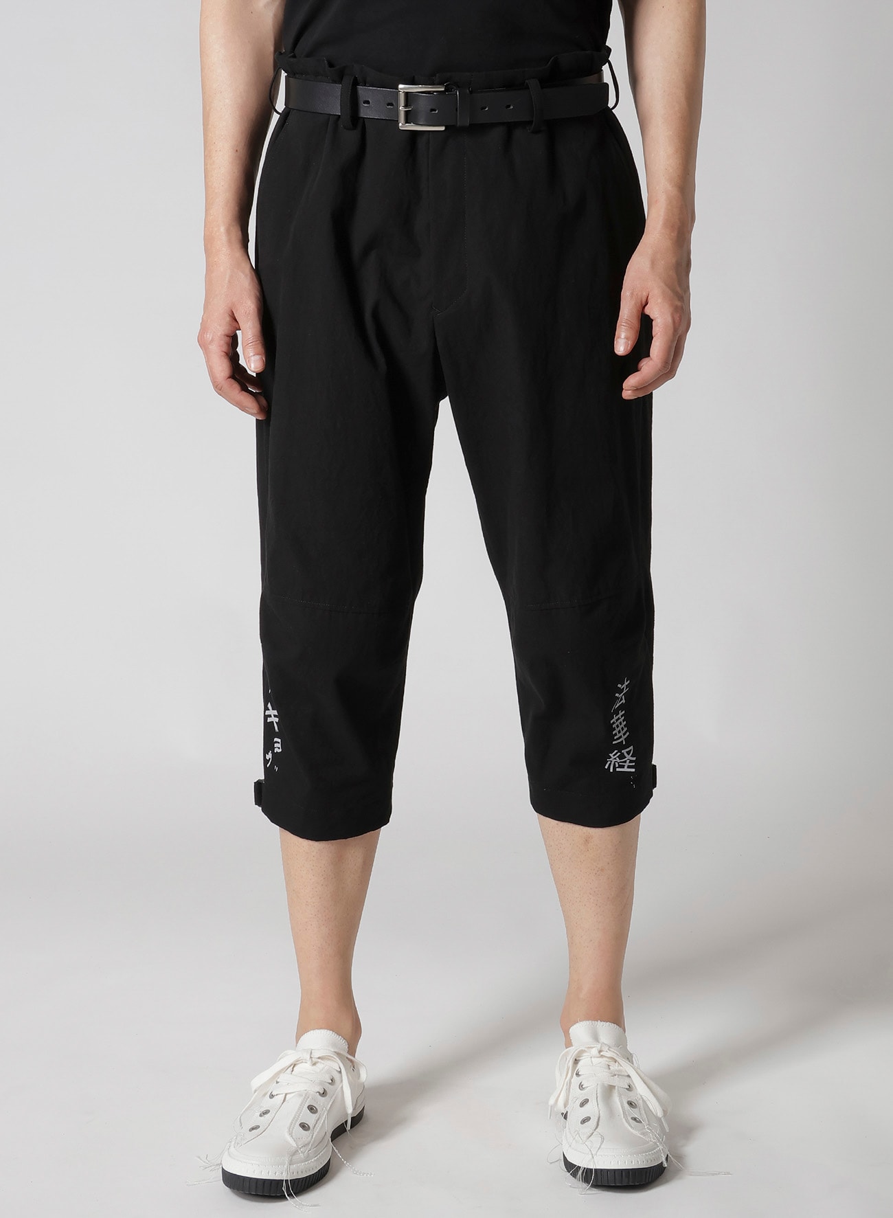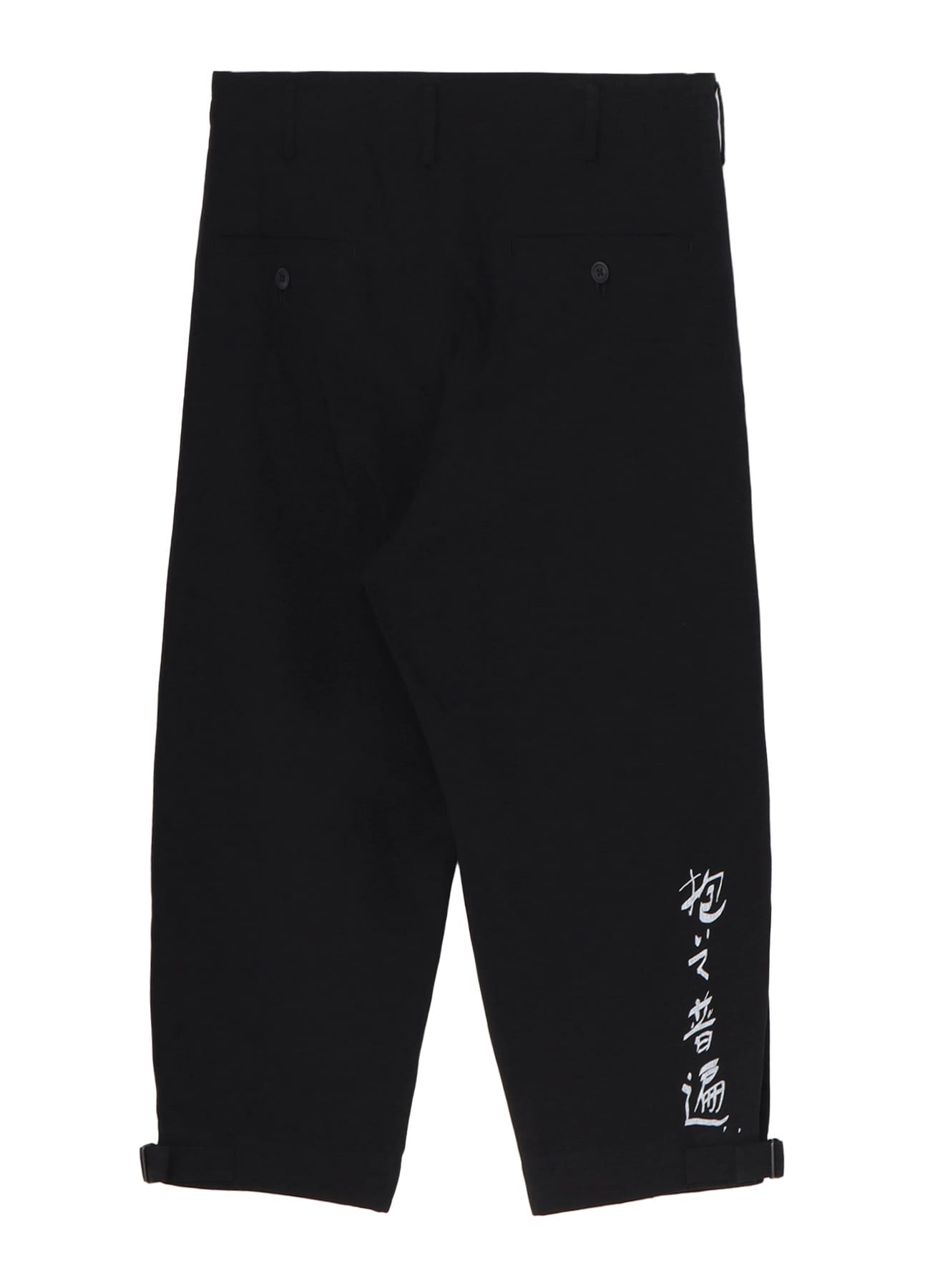 Yohji Yamamoto POUR HOMME S/S 2025 COLLECTION LOOK37で登場した文字プリントパンツ。 タテ糸に綿の先染めムラ糸、ヨコ糸に綿麻の混紡糸を使用したキャンバス素材です。ムラ糸特有の深みと粗野感が特徴です。この生地にデザイナー直筆のメッセージをプリントしています。