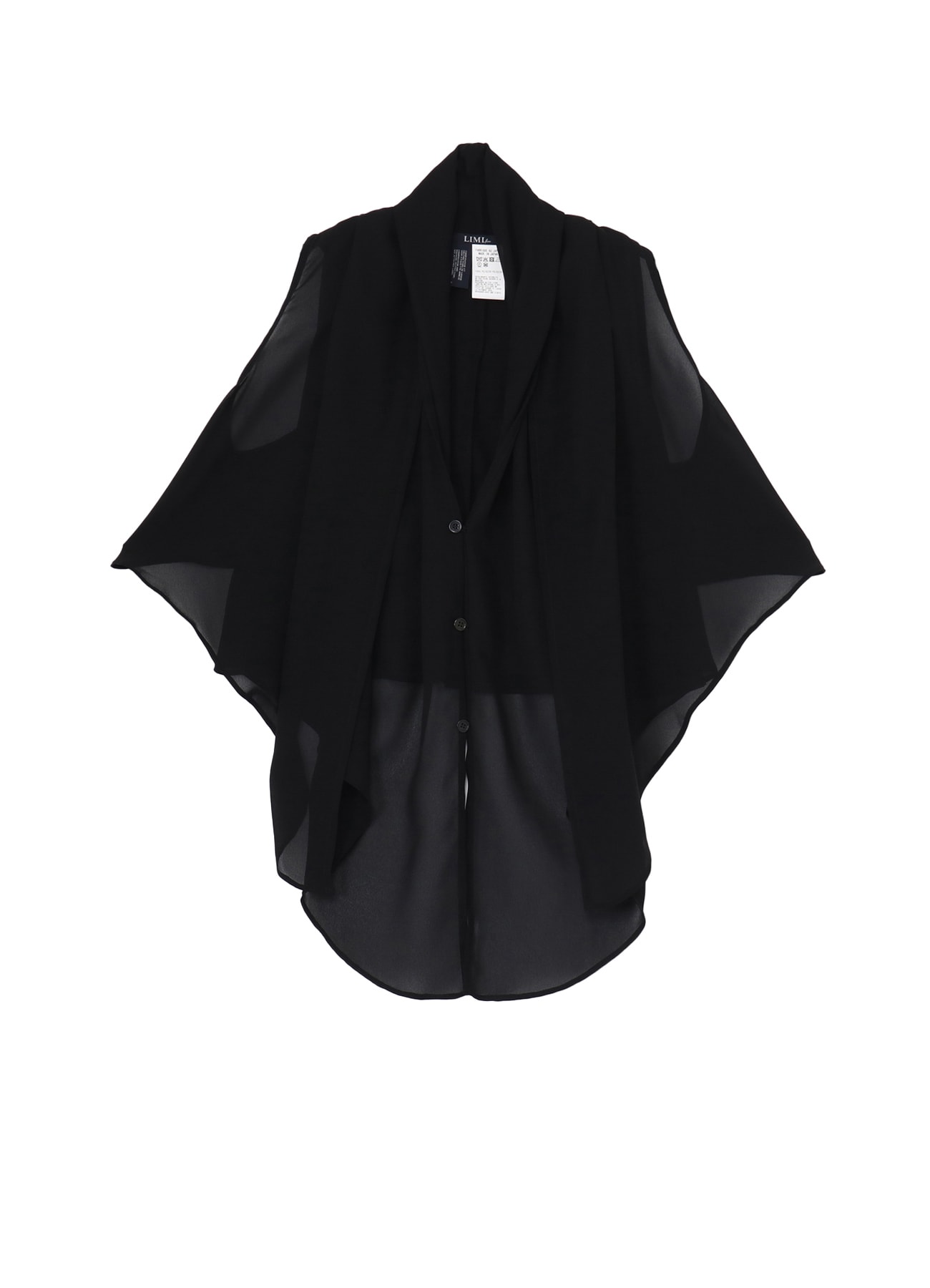 重なり合うストールのようなディテールを配したブラウス。ジョーゼット素材のしなやかさが、揺れのあるシルエットをつくる。