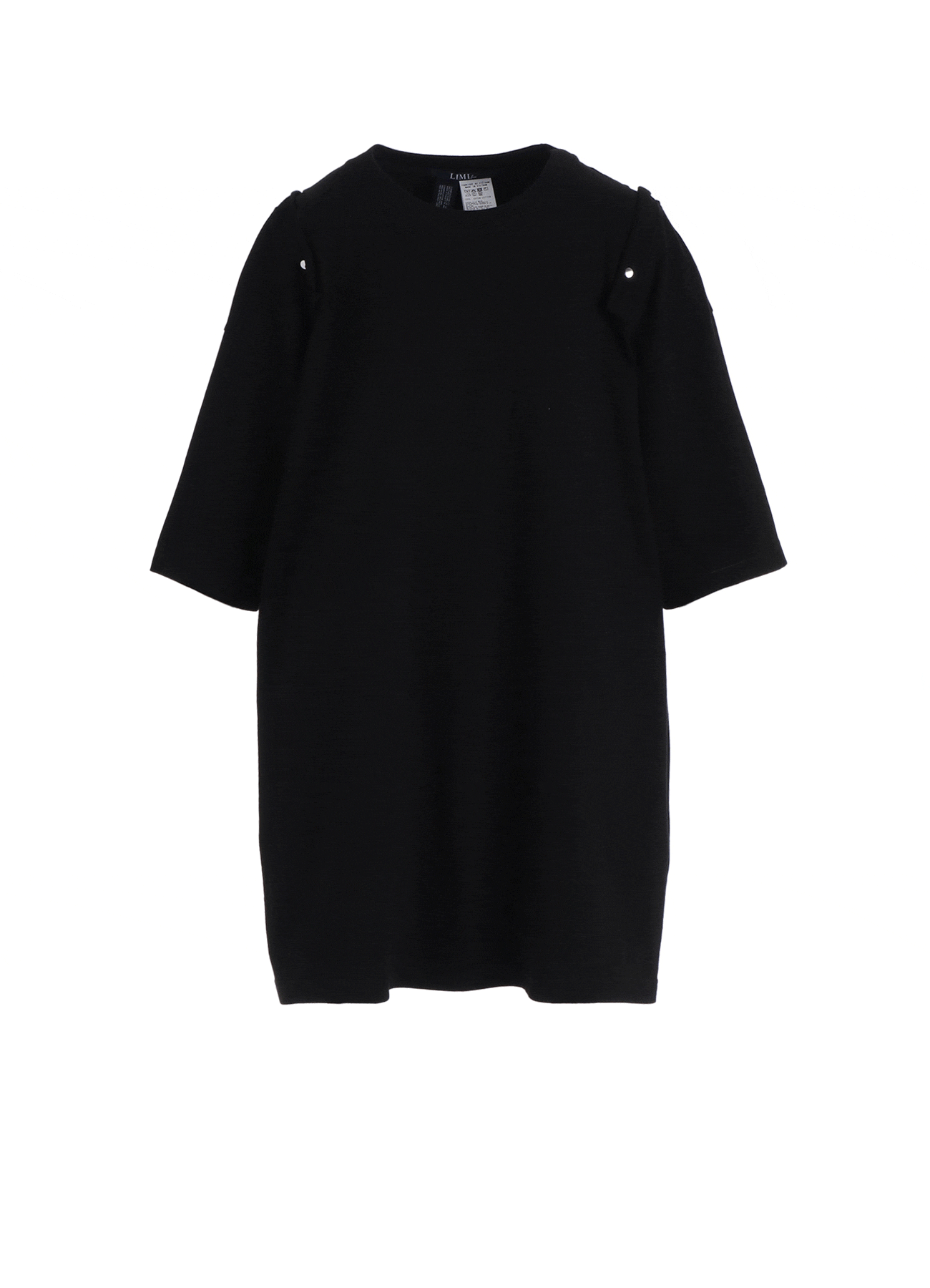 オーバーサイズで身幅にもゆとりを持たせたリメイクTシャツ。肩のドットボタンを外すことで、肌見せやレイヤードなど、着こなしのアレンジをお楽しみいただけます。