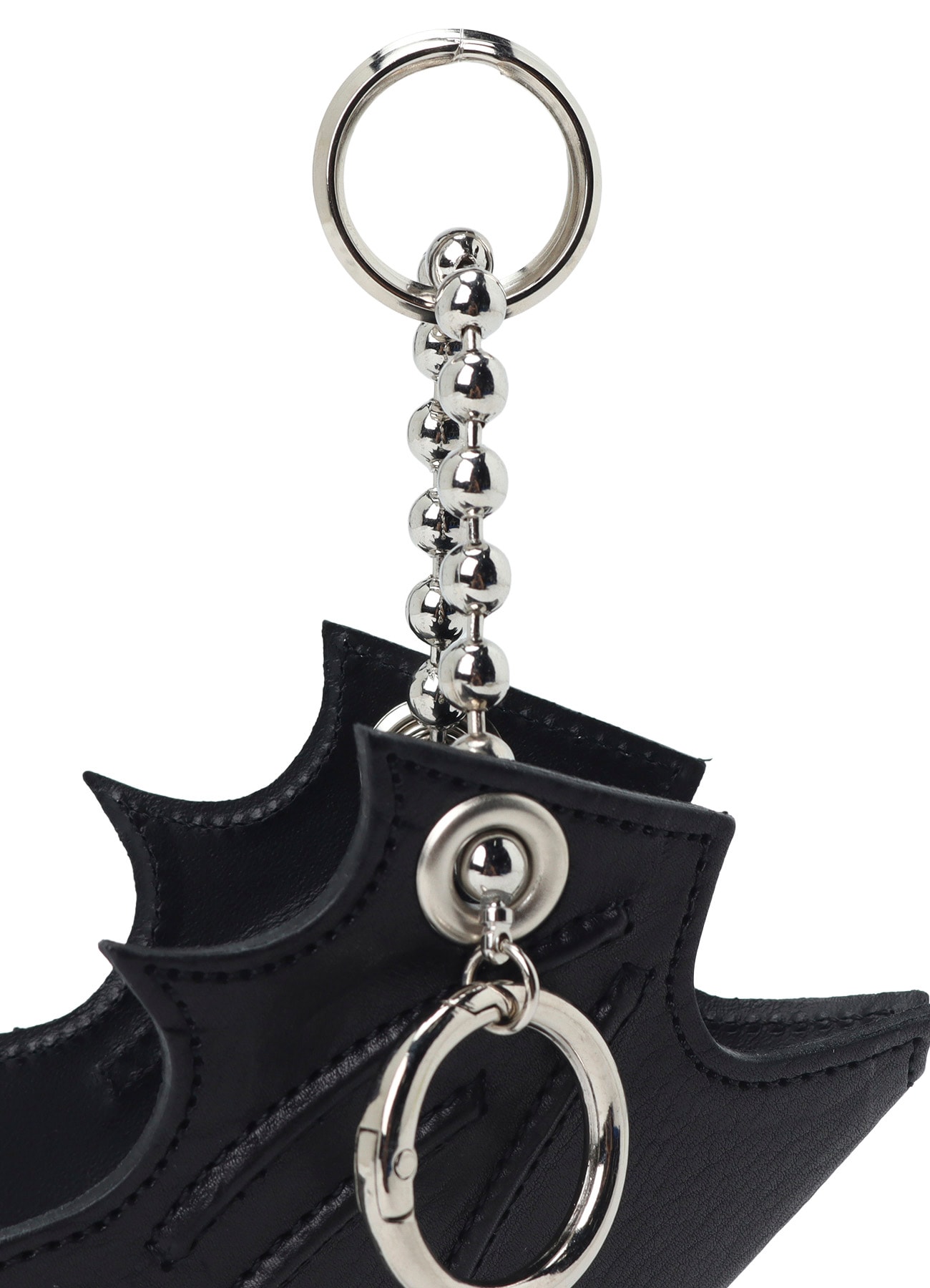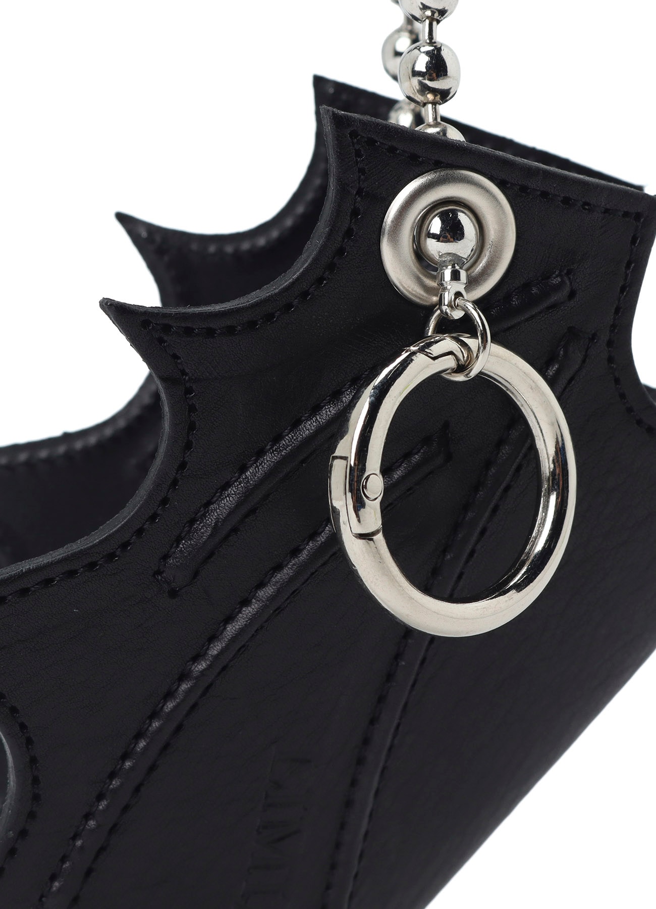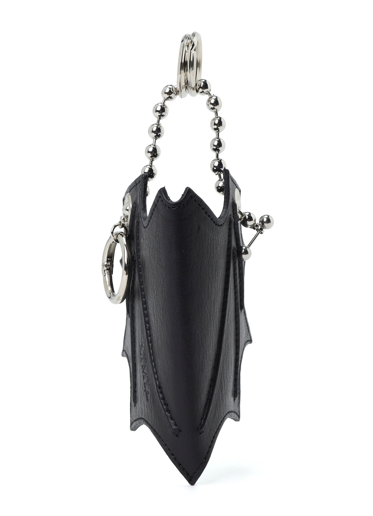しなやかな質感とツヤのあるヌメ革を使用しました。コウモリの羽をモチーフにした本体をチェーンで通し付けています。内側の二重カンに鍵をかけて収納出来ます。