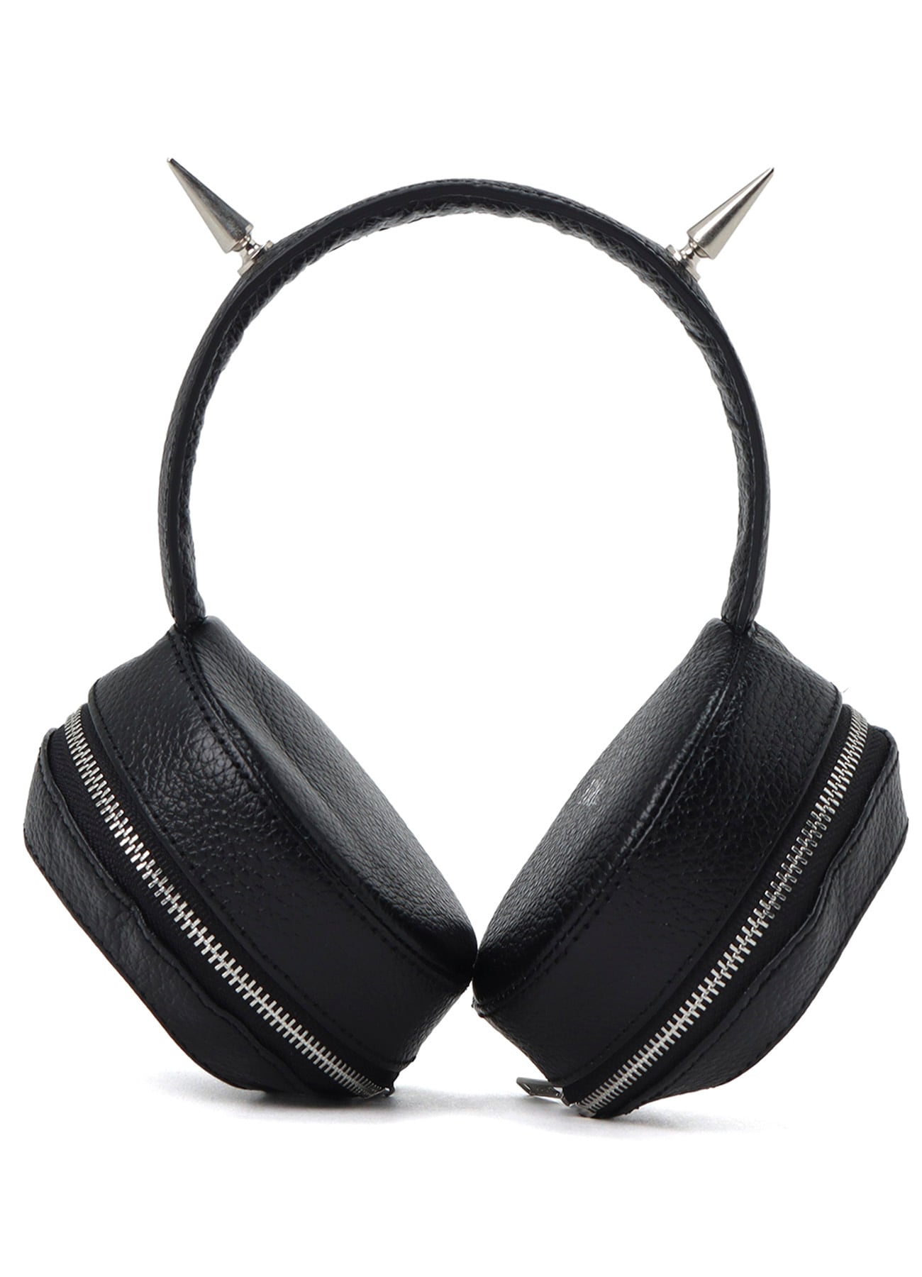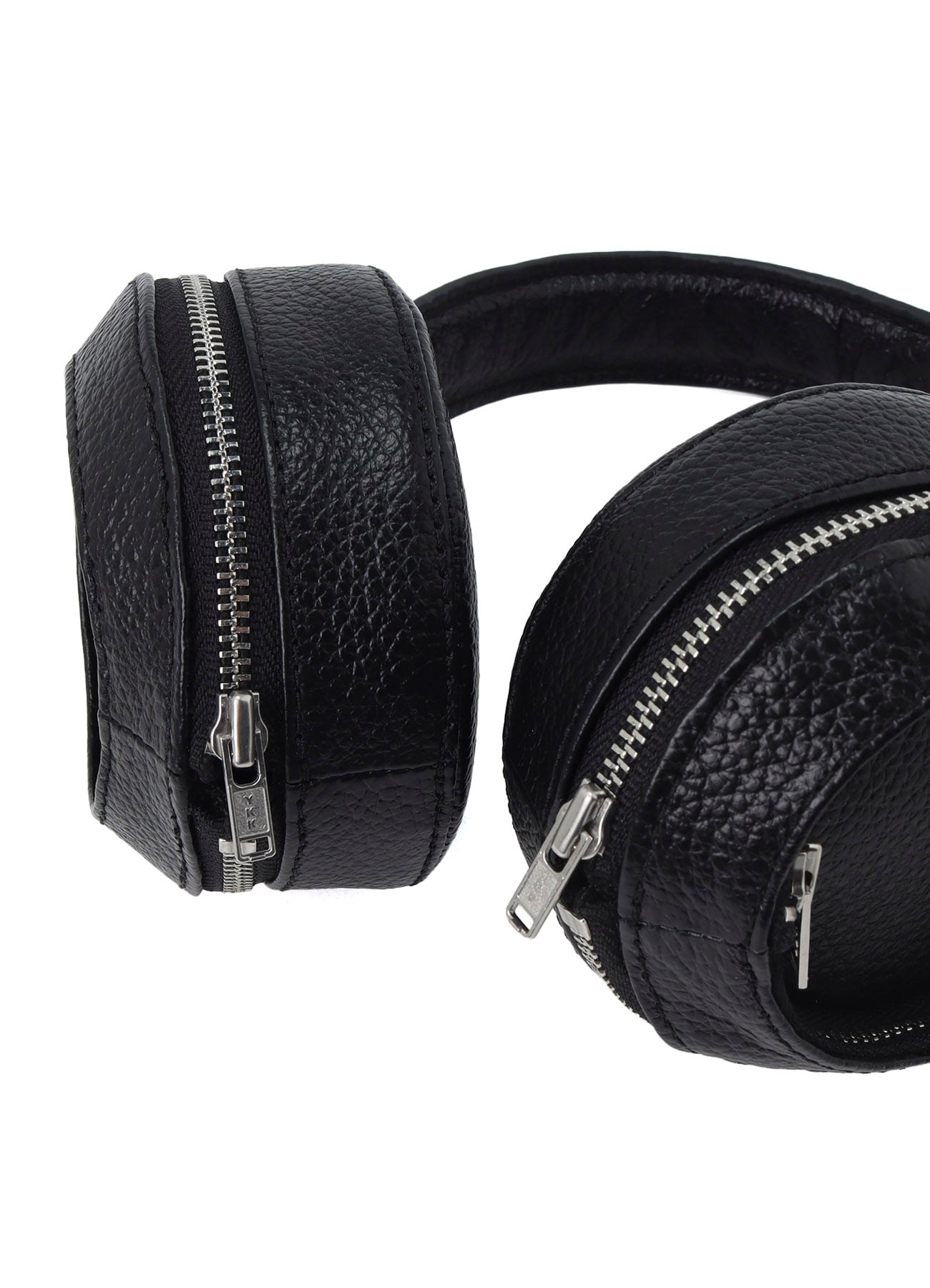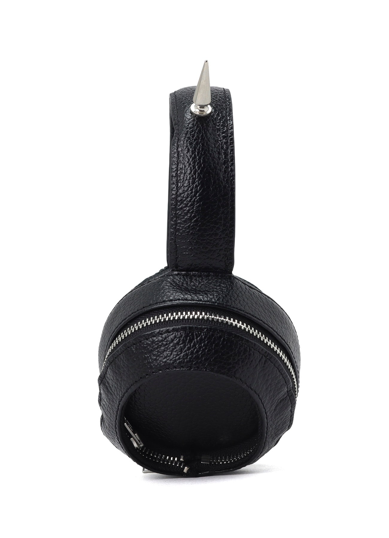 シュリンクの型押し革を使用しました。ヘッドフォン型のポーチです。左右各2段のファスナーで収納出来ます。バッグの持ち手などに引っ掛けてご使用ください。