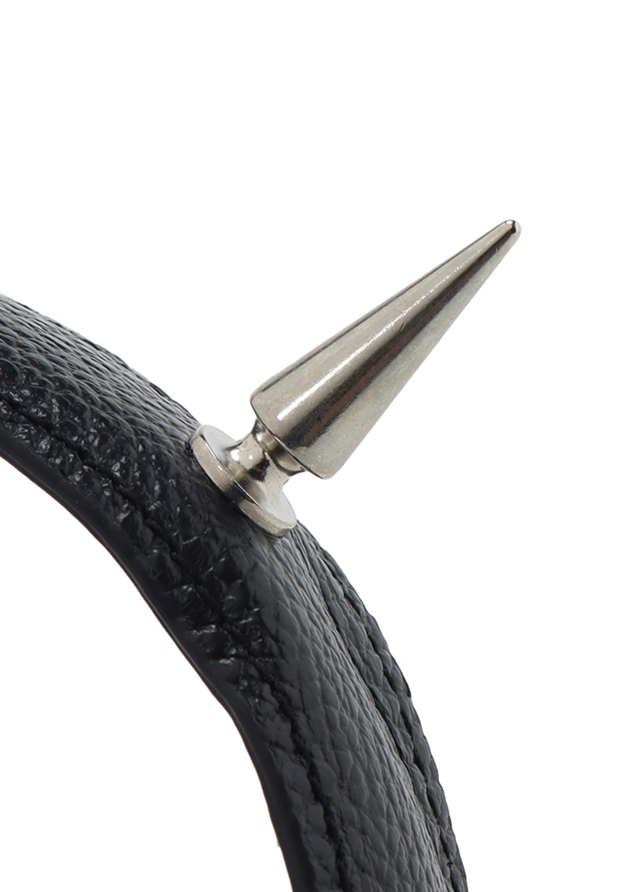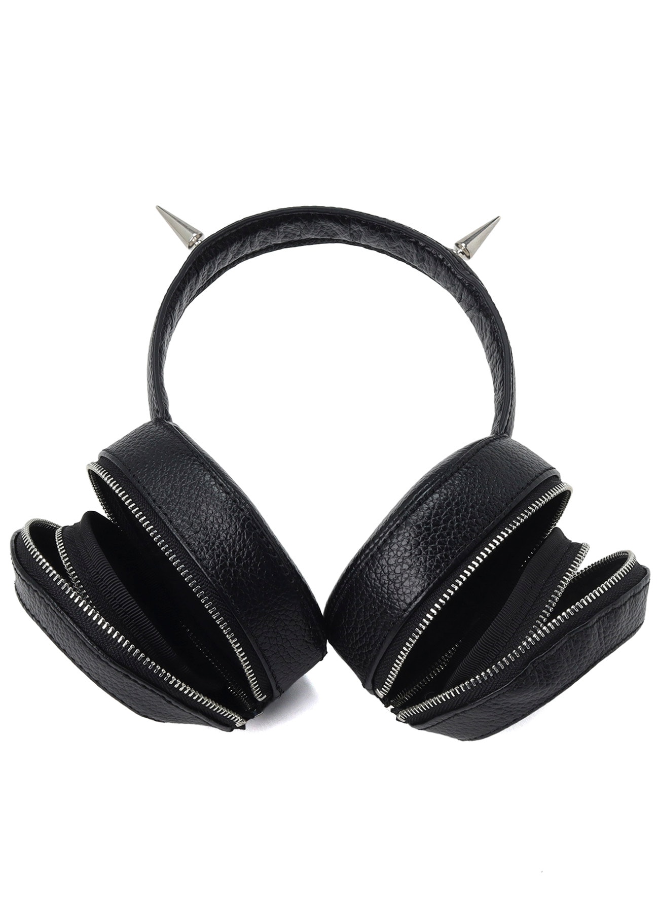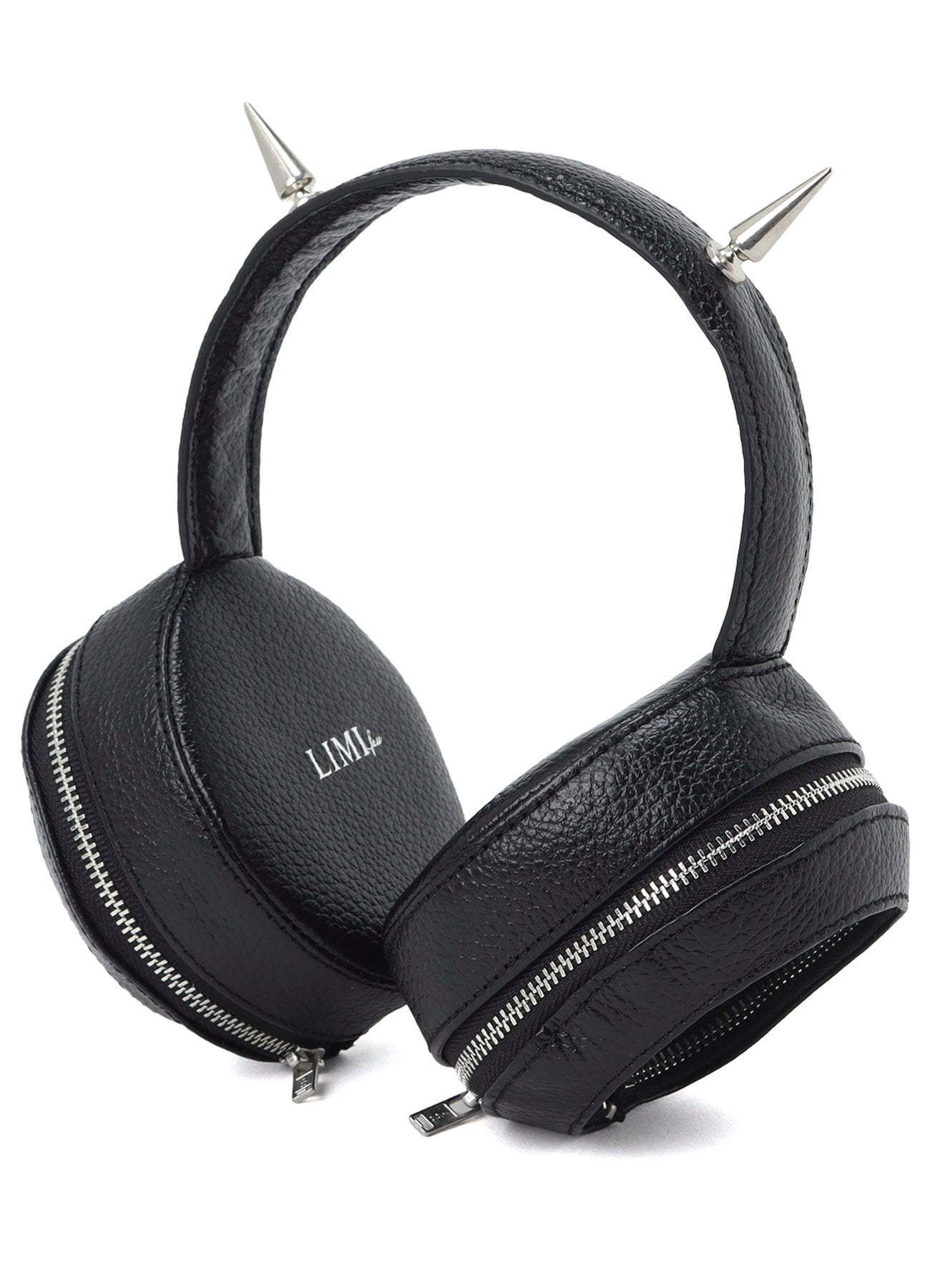シュリンクの型押し革を使用しました。ヘッドフォン型のポーチです。左右各2段のファスナーで収納出来ます。バッグの持ち手などに引っ掛けてご使用ください。