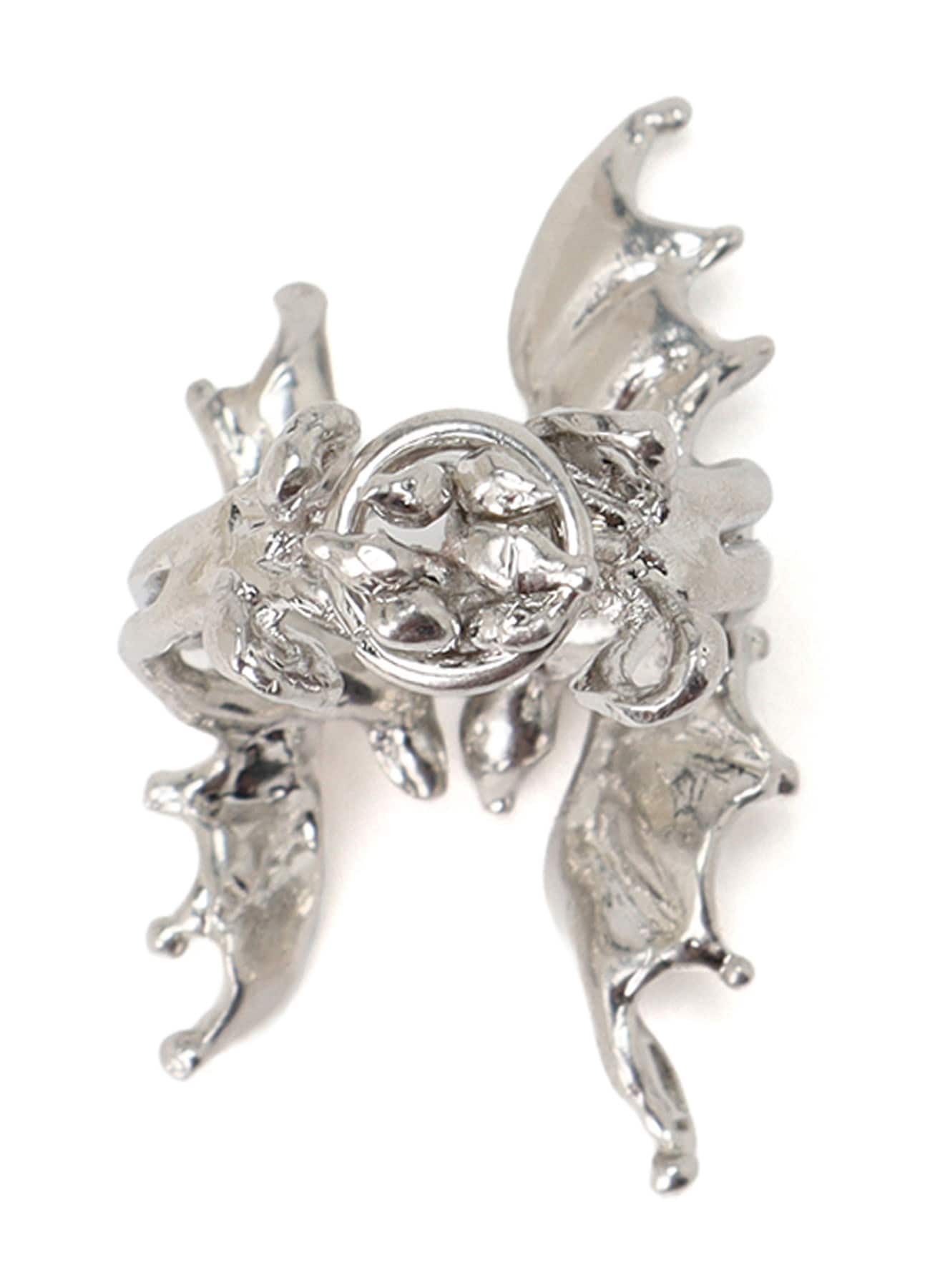 コウモリモチーフのリング&カフです。2匹の蝙蝠がリングを足に持ったデザインです。大きいほうの蝙蝠を前に耳に掛けることで、大振りなイヤーカフとしてもご着用いただけます。