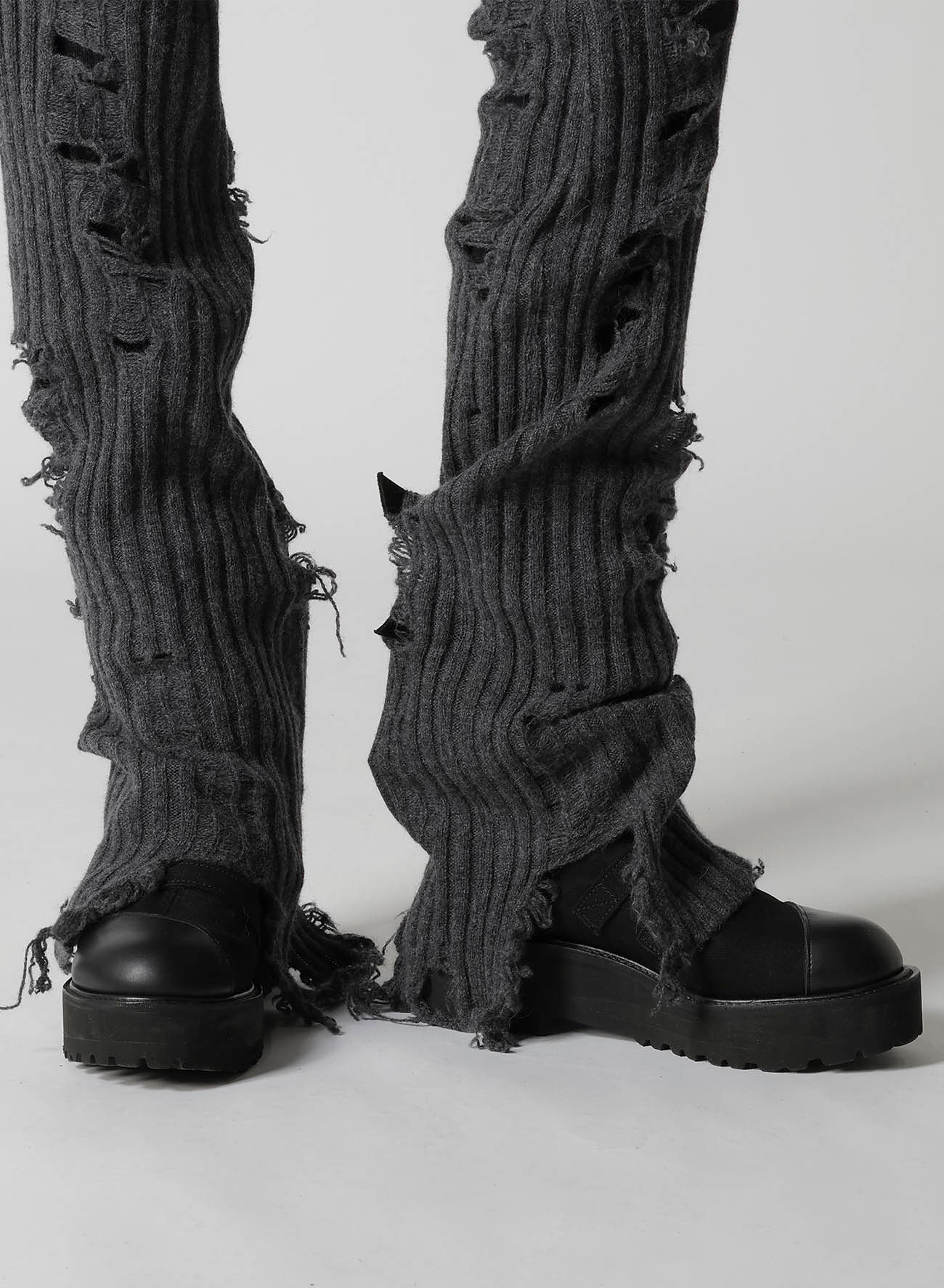 CRUSHED RIB DAMAGED 2WAY WOOL SCARF