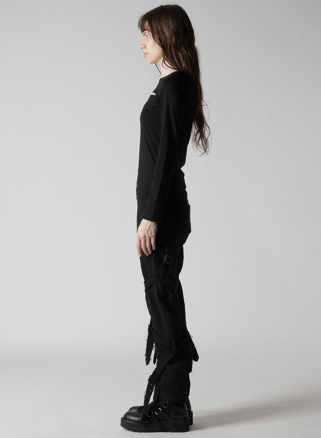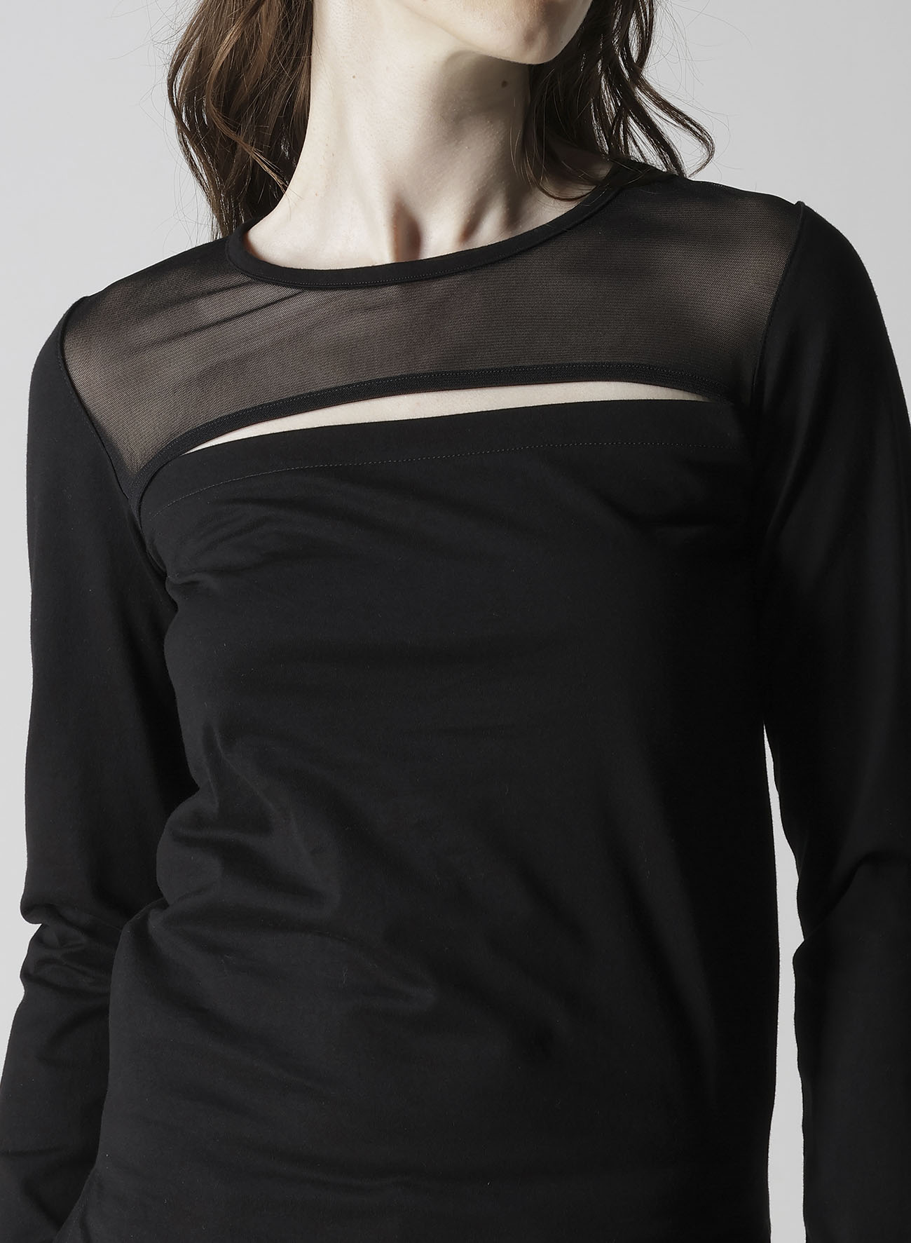 厳選された超長綿を使用した、柔らかな風合いが特徴の綿天竺です。綿糸の毛羽を極限までそぎ落とすことで、目面がきれいな天竺に仕上がっています。あらゆる方向へ伸縮可能なチュール素材です。伸縮性、形状安定性に優れ、非常に軽い素材の為、着用時のストレスを緩和します。胸元にスリットが施されたカットソーです。シンプルな形で一枚でも、様々なコーディネートのインナーとしてご着用頂けます。