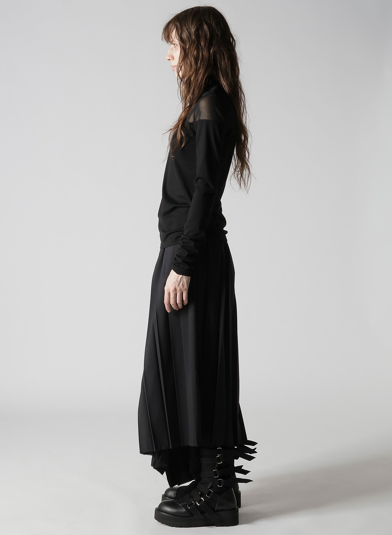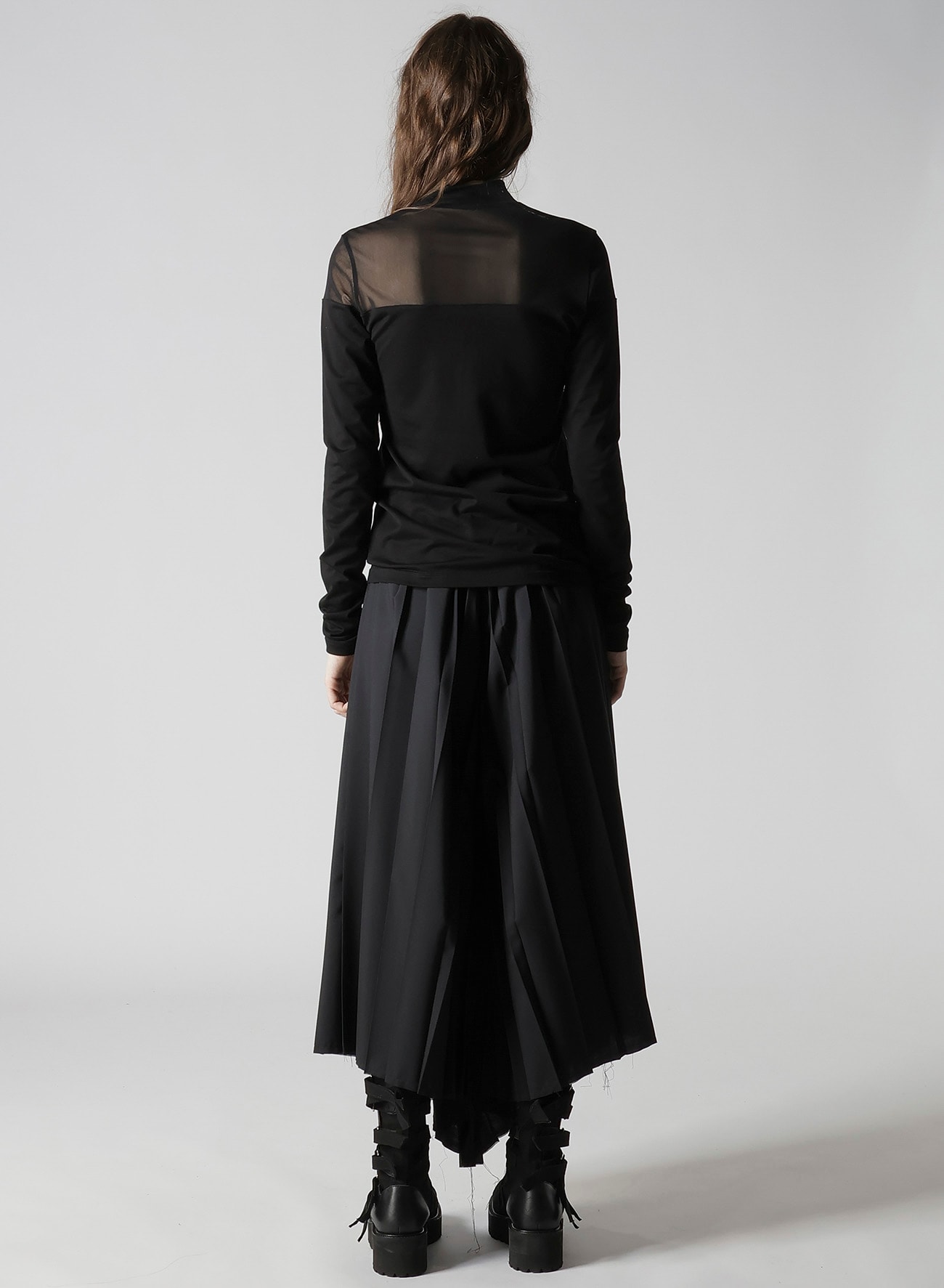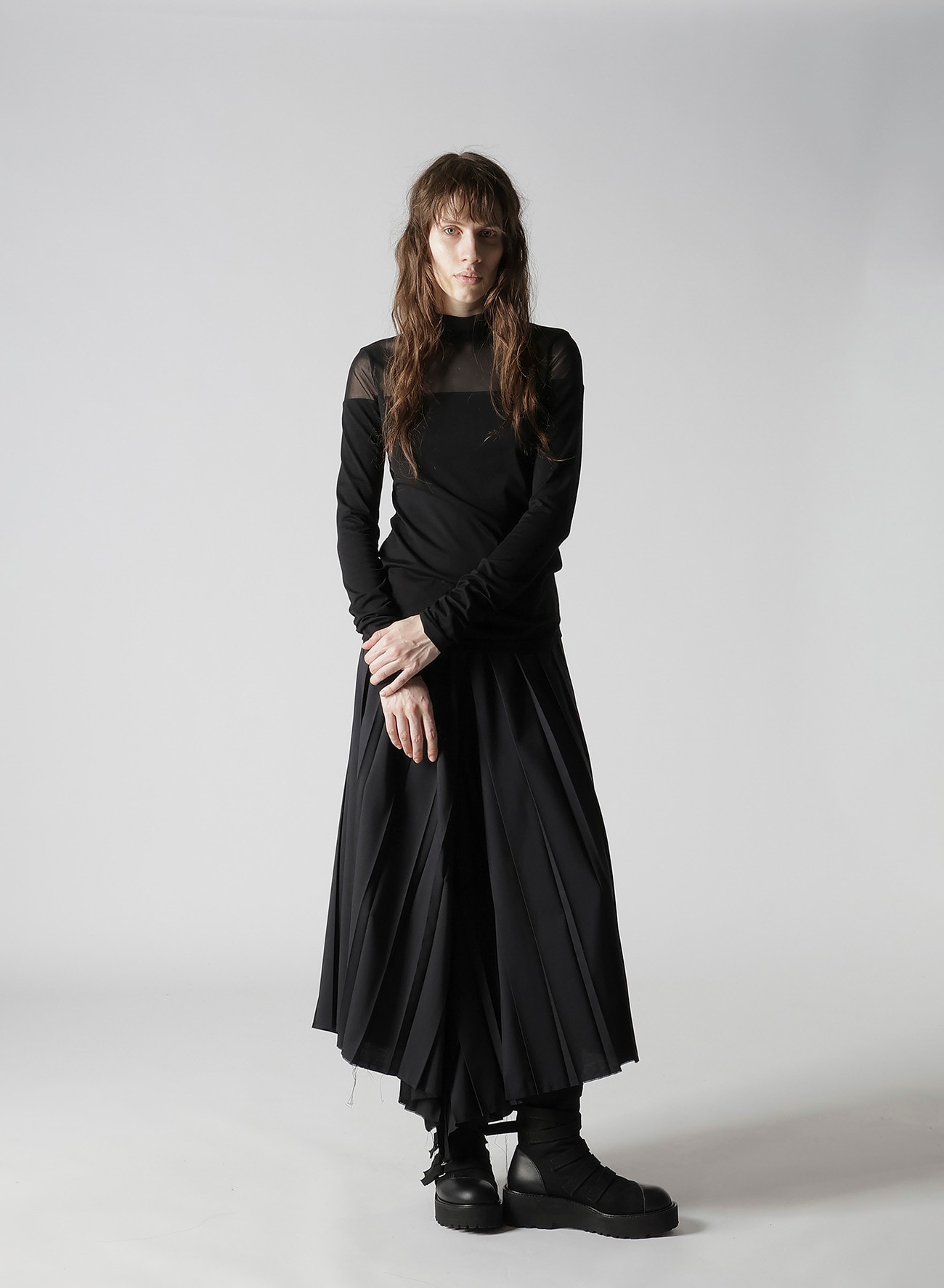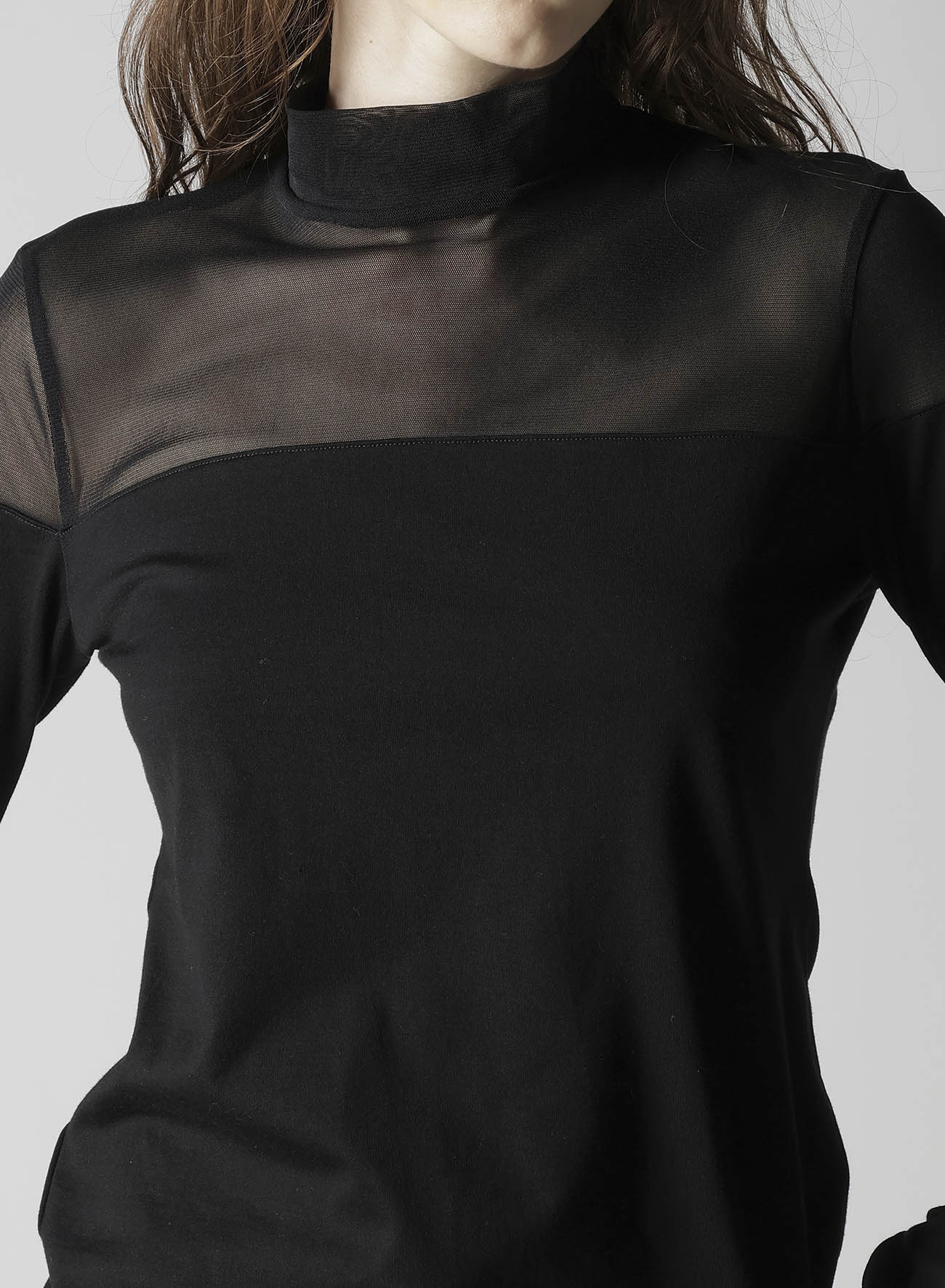 厳選された超長綿を使用した、柔らかな風合いが特徴の綿天竺です。綿糸の毛羽を極限までそぎ落とすことで、目面がきれいな天竺に仕上がっています。あらゆる方向へ伸縮可能なチュール素材です。伸縮性、形状安定性に優れ、非常に軽い素材の為、着用時のストレスを緩和します。肩部分がチュール素材になっているカットソーです。シンプルな形で一枚でも様々なコーディネートのインナーとしてご着用頂けます。