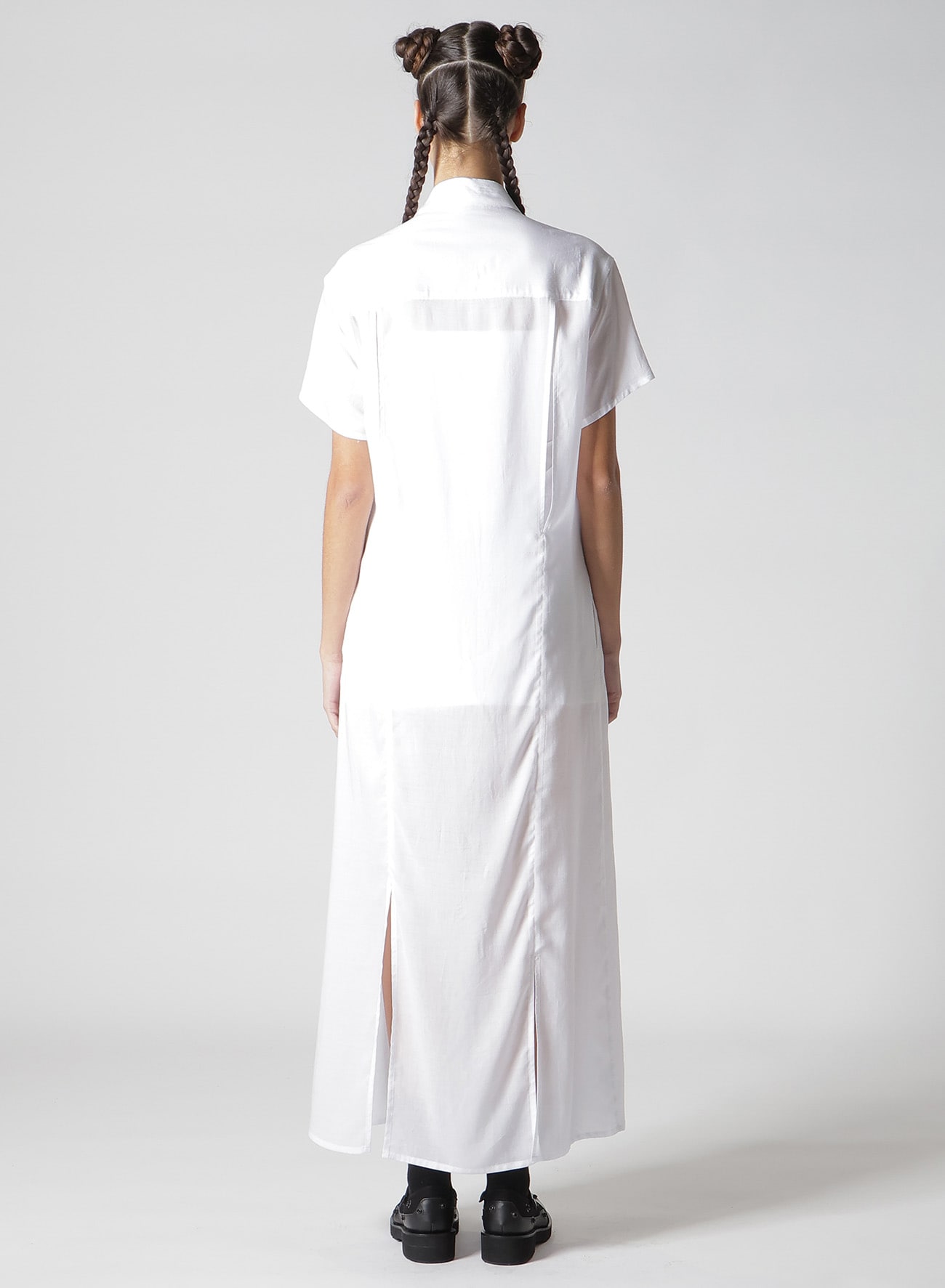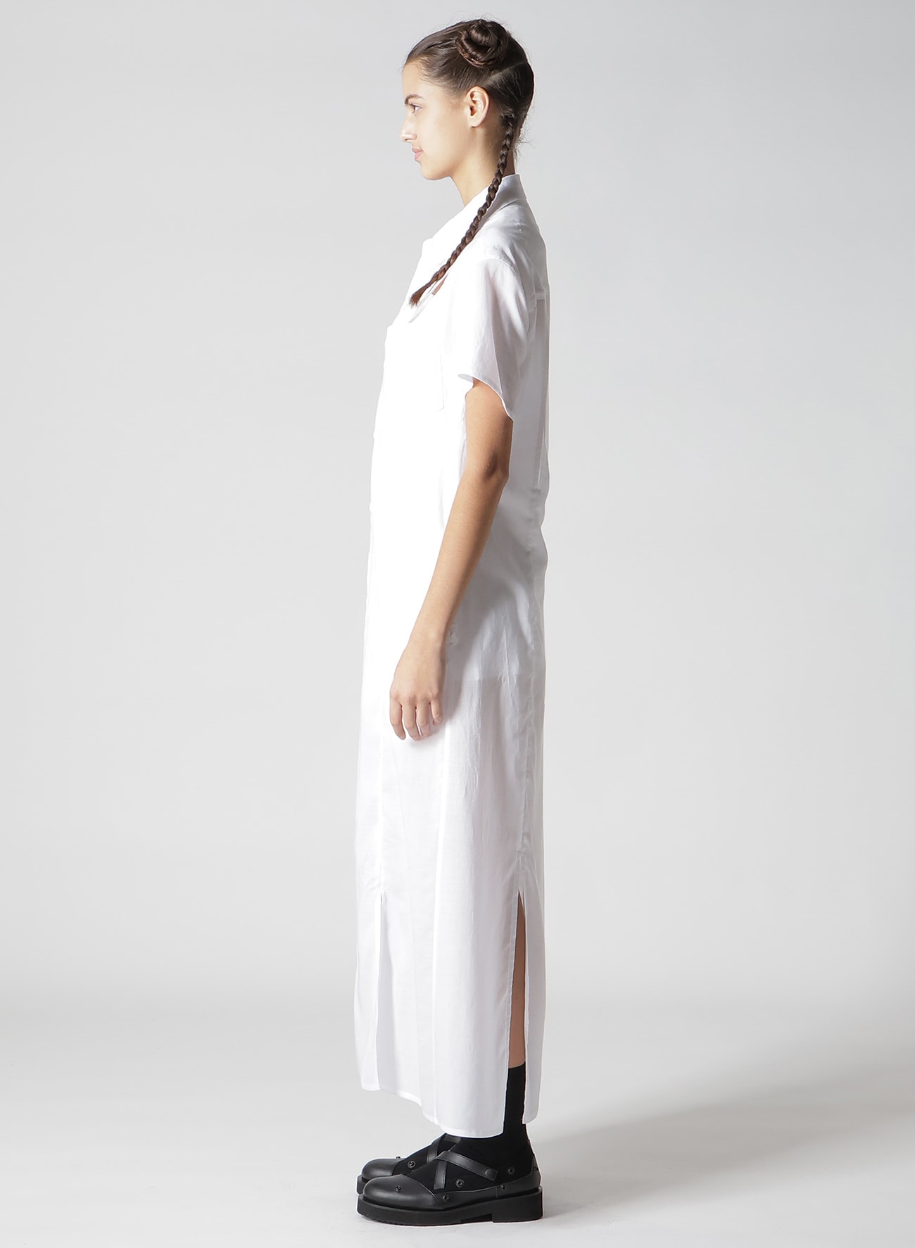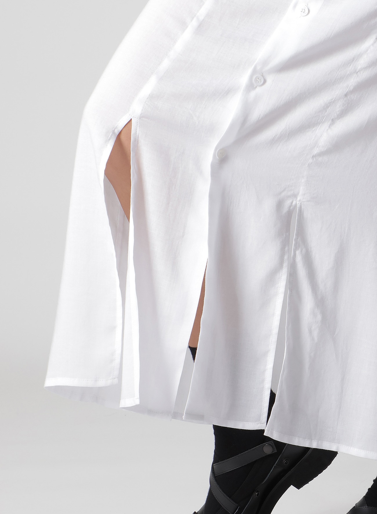 ¥79200柔らかく、微光沢があり、軽やかなドレープ性のある肌触りの良い生地です。裾にスリットが施され、ストレートのロングシャツに動きが生まれます。薄手の生地でレイヤードのスタイリングにも取り入れやすくおすすめです。