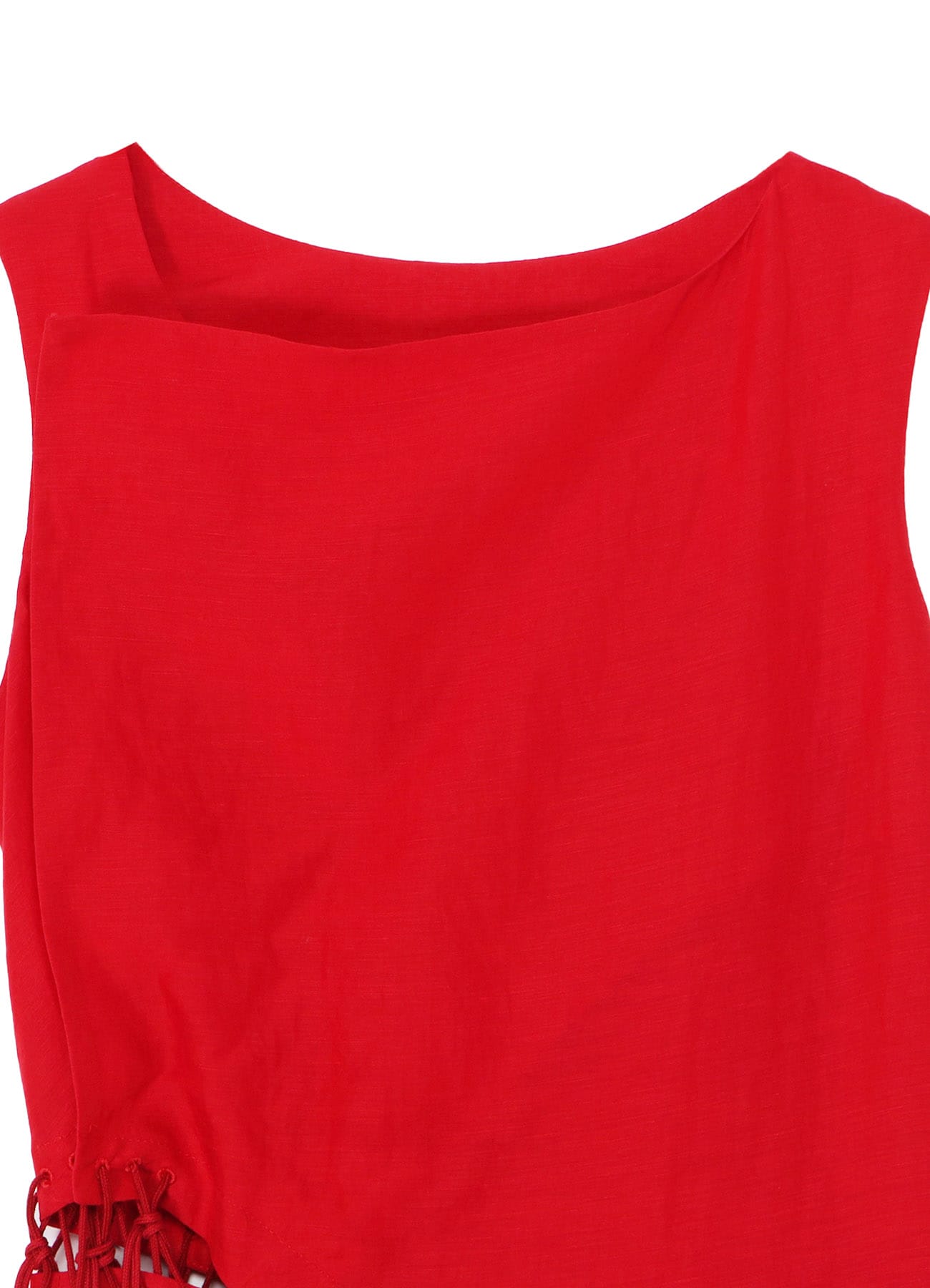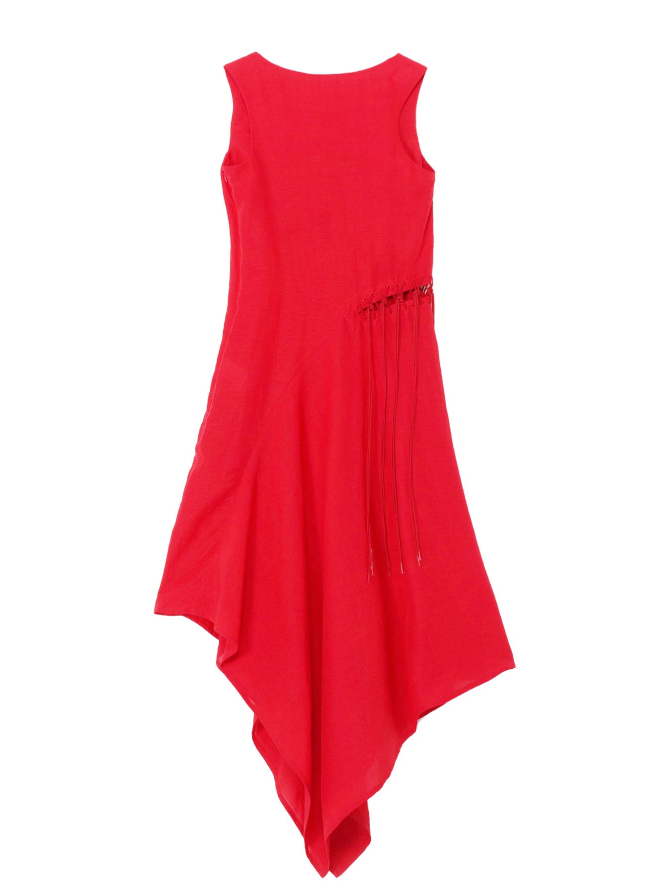 ¥90200リネン特有のナチュラルな表情、ハリ・コシとセルロース特有のドレープ感を兼ね備えたローンです。また生地洗いをして、自然な風合い、表情に仕上げています。糸節、糸ムラ、織りムラが多少ありますが、天然繊維麻の特性の為、ご理解ください。左ウエスト部分、編み上げデザインが特徴的なドレスは、インナーのカットソーで雰囲気の違いをお楽しみ頂けます。鎖骨を綺麗に見せるスクエアネックに螺旋状の袖が施されたドレスです。前身頃にはタックが施されドレープを感じさせるエアリーなシルエットですが、後ろは女性らしいラインのでる一枚です。