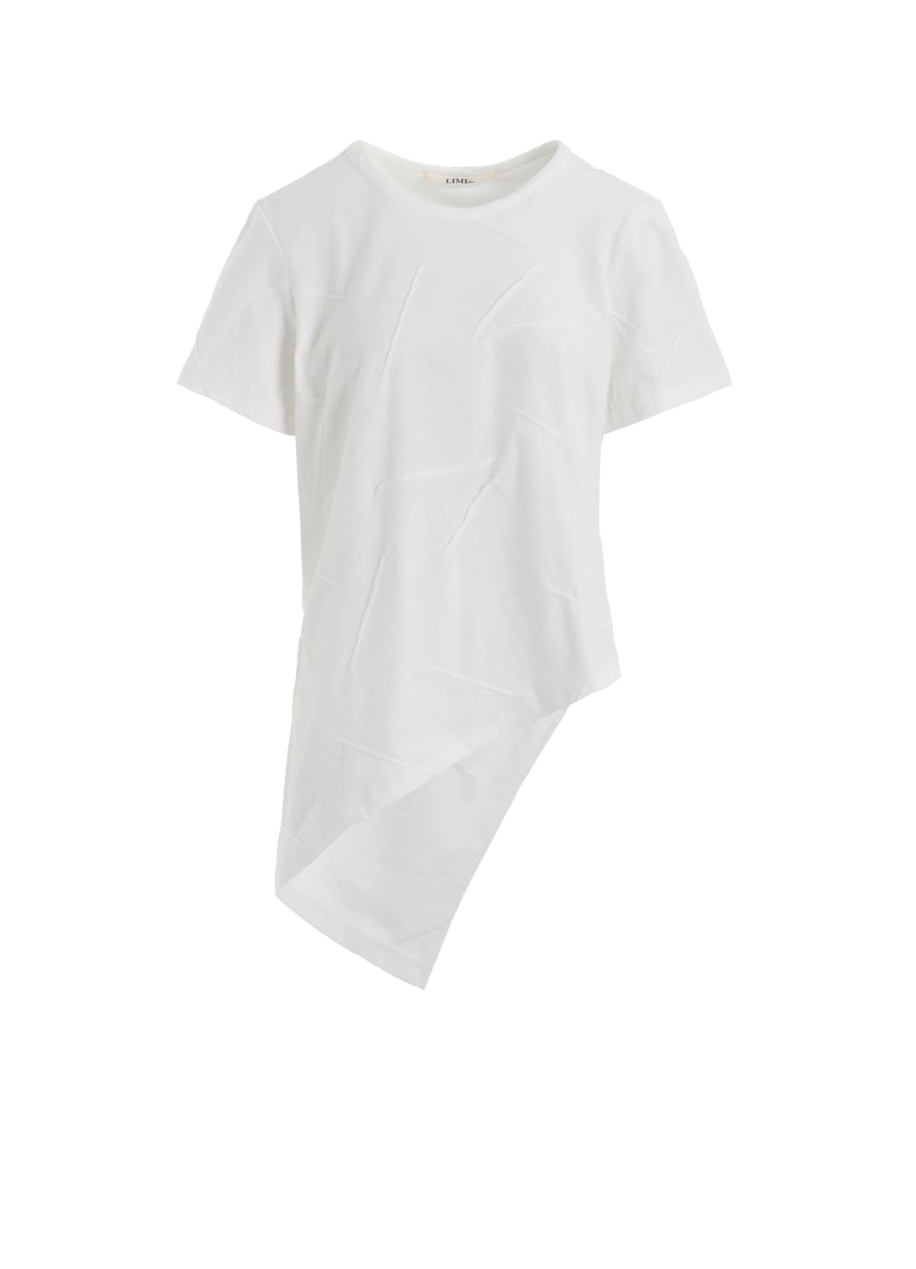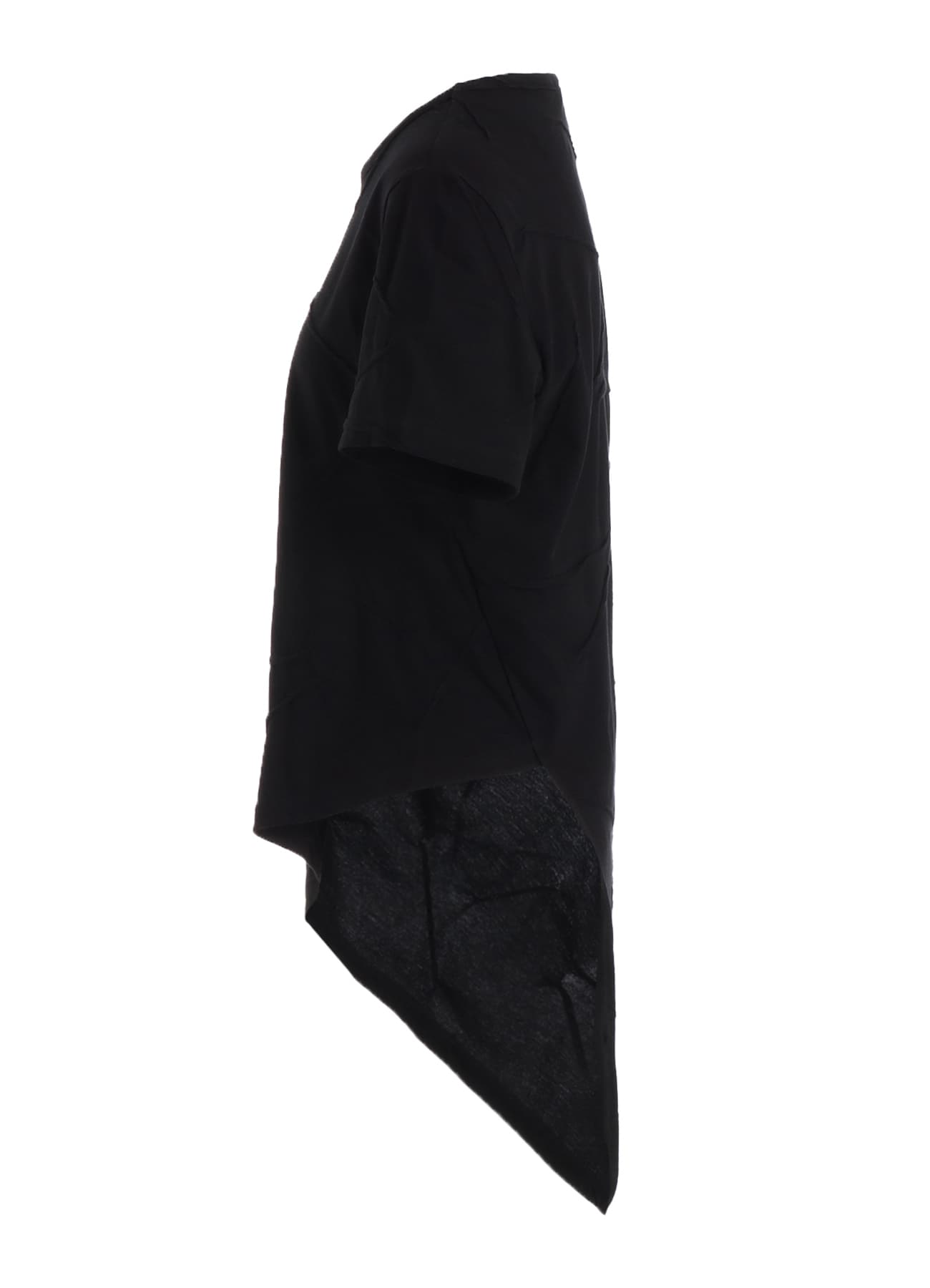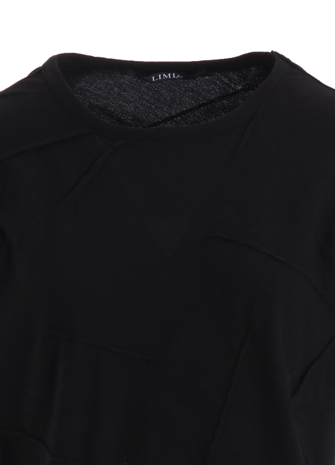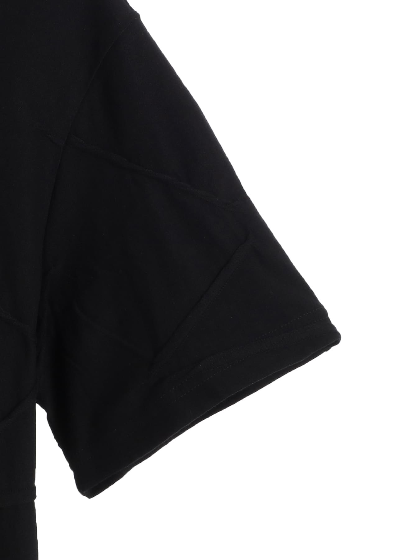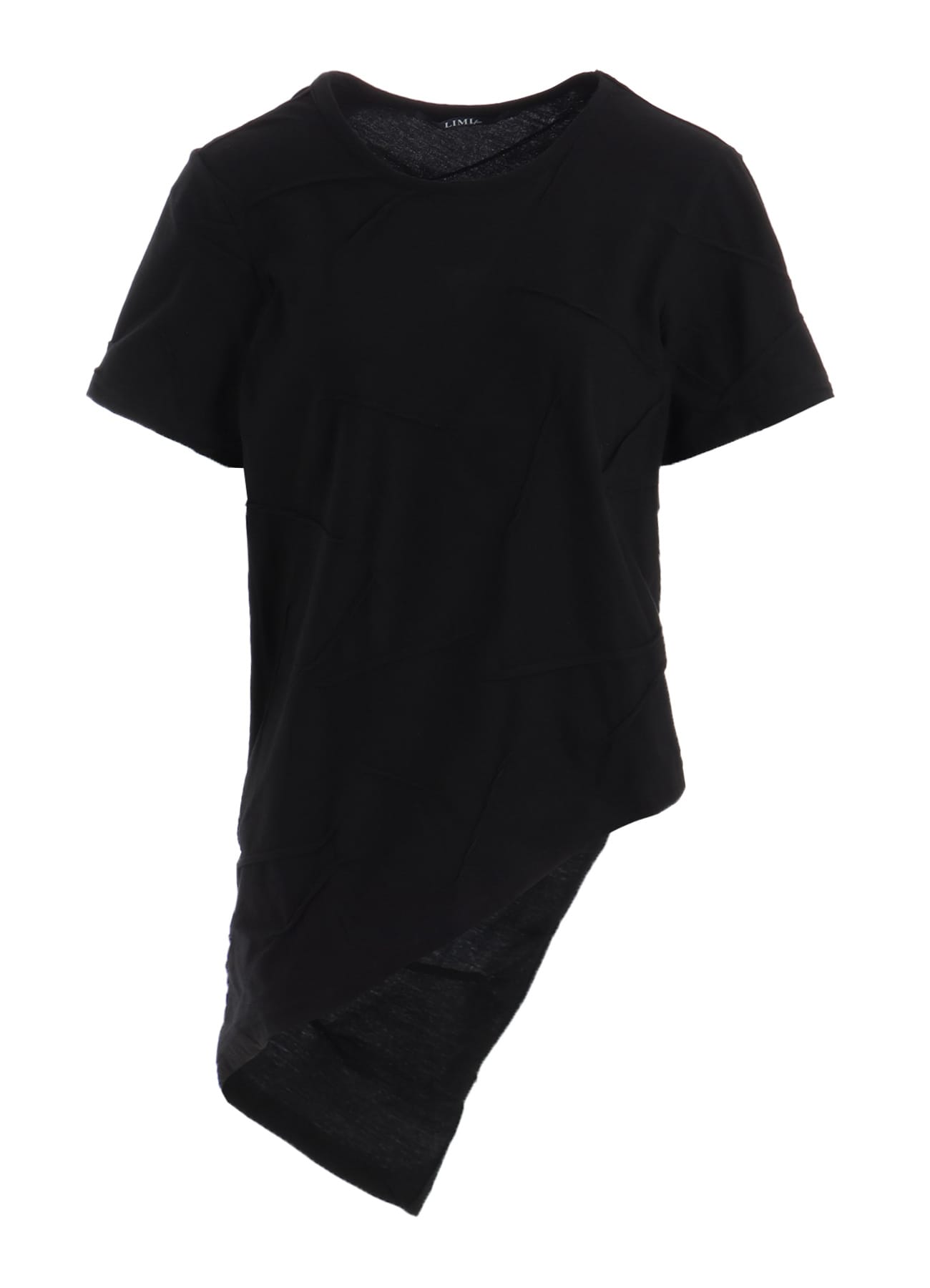 毛羽が少なく、光沢感と柔らかな風合いが特徴の綿コーマ糸を使用しています。ランダムに配置されたタック部分は編み立てが難しく、糸切れが起きないように特殊な機能を使用して編んでいます。シンプルな見た目ながらも、細部にまでこだわって編み立てたジャガードです。アシンメトリーのデザインがシンプルながらも角度によっての表情を変え、幅広いコーディネートにお使い頂けるカットソーです。