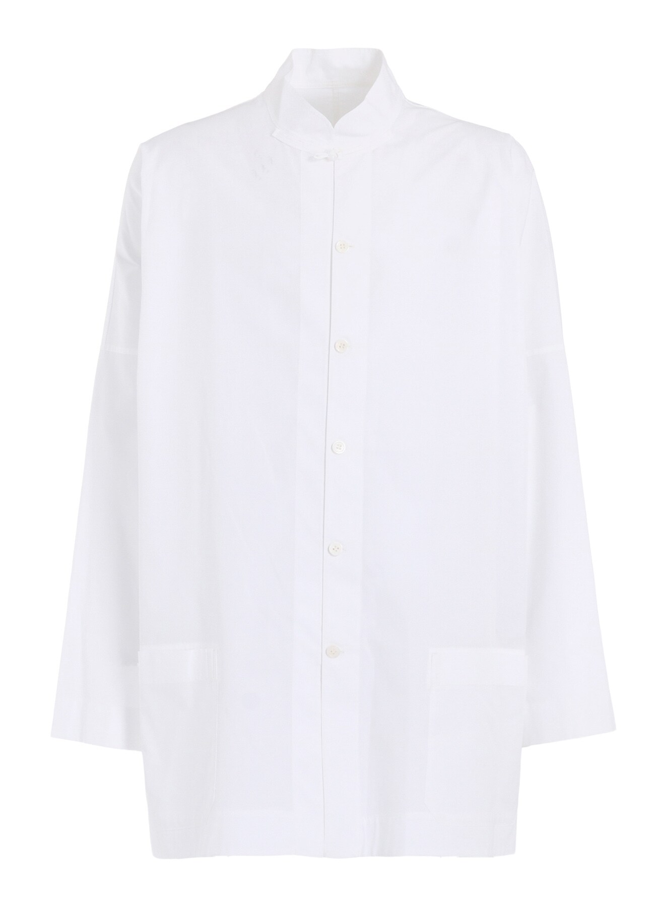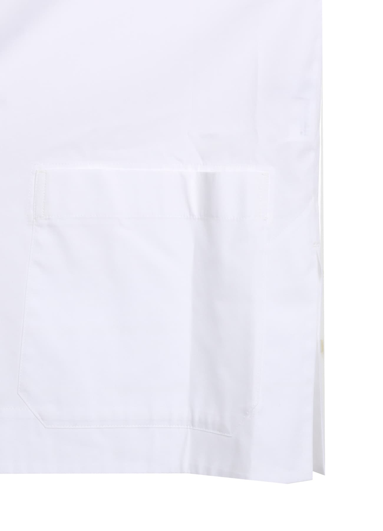 高密度でハリがあり、クリアな表面感を持つシャツ地の定番素材を使用しています。第一ボタンにのみ釈迦ボタンが配されたシャツは、ゆったりとしたシルエットとマッチして1枚で様になるアイテムです。