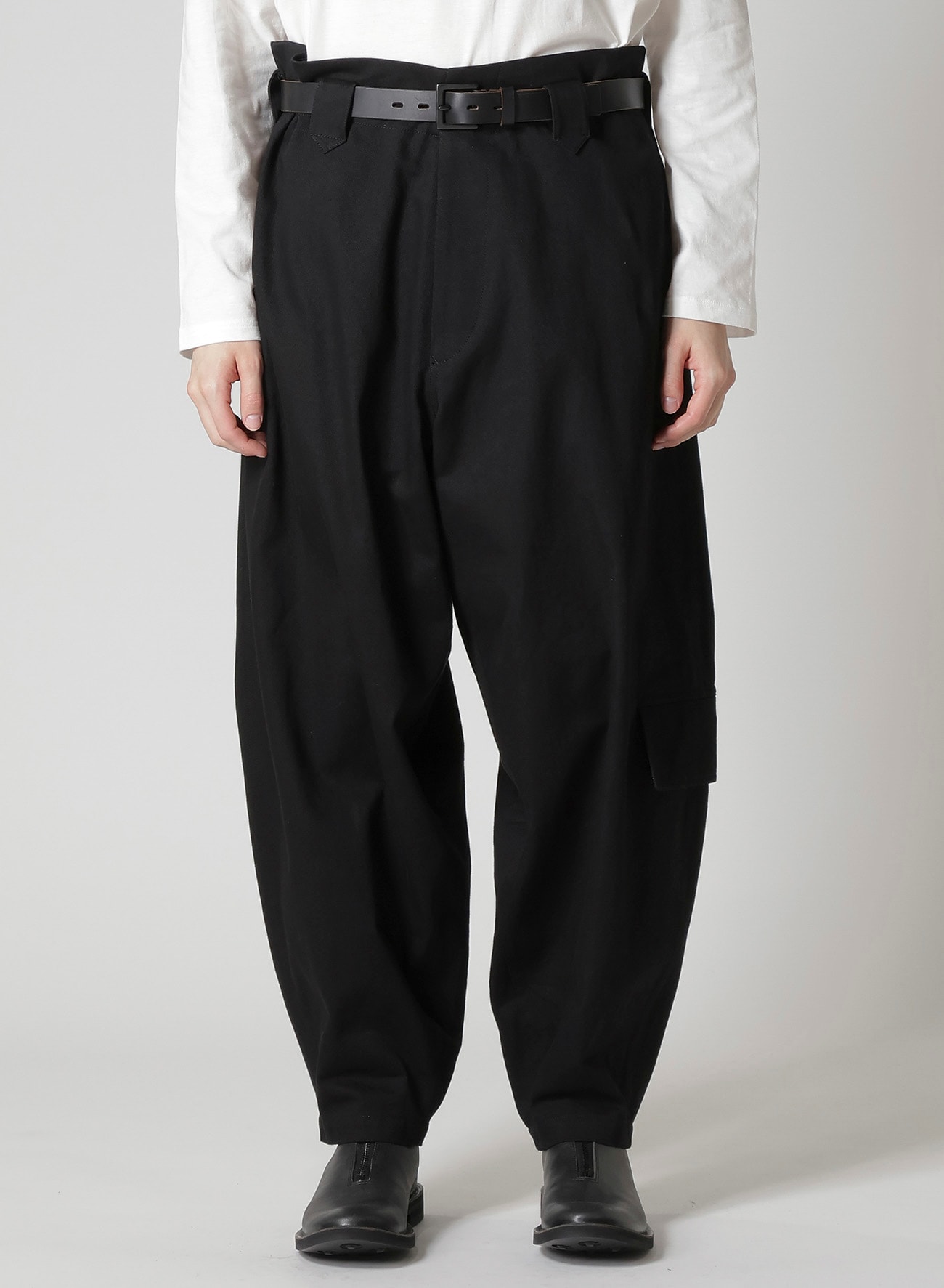 太番手の糸を使用した、タフな生地感が魅力です。ニッカボッカのようなシルエットが特徴的なパンツは、カットソーと併せたラフなスタイリングはもちろん、同素材のジャケットと合わせたカジュアルなセットアップスタイルもおすすめです。