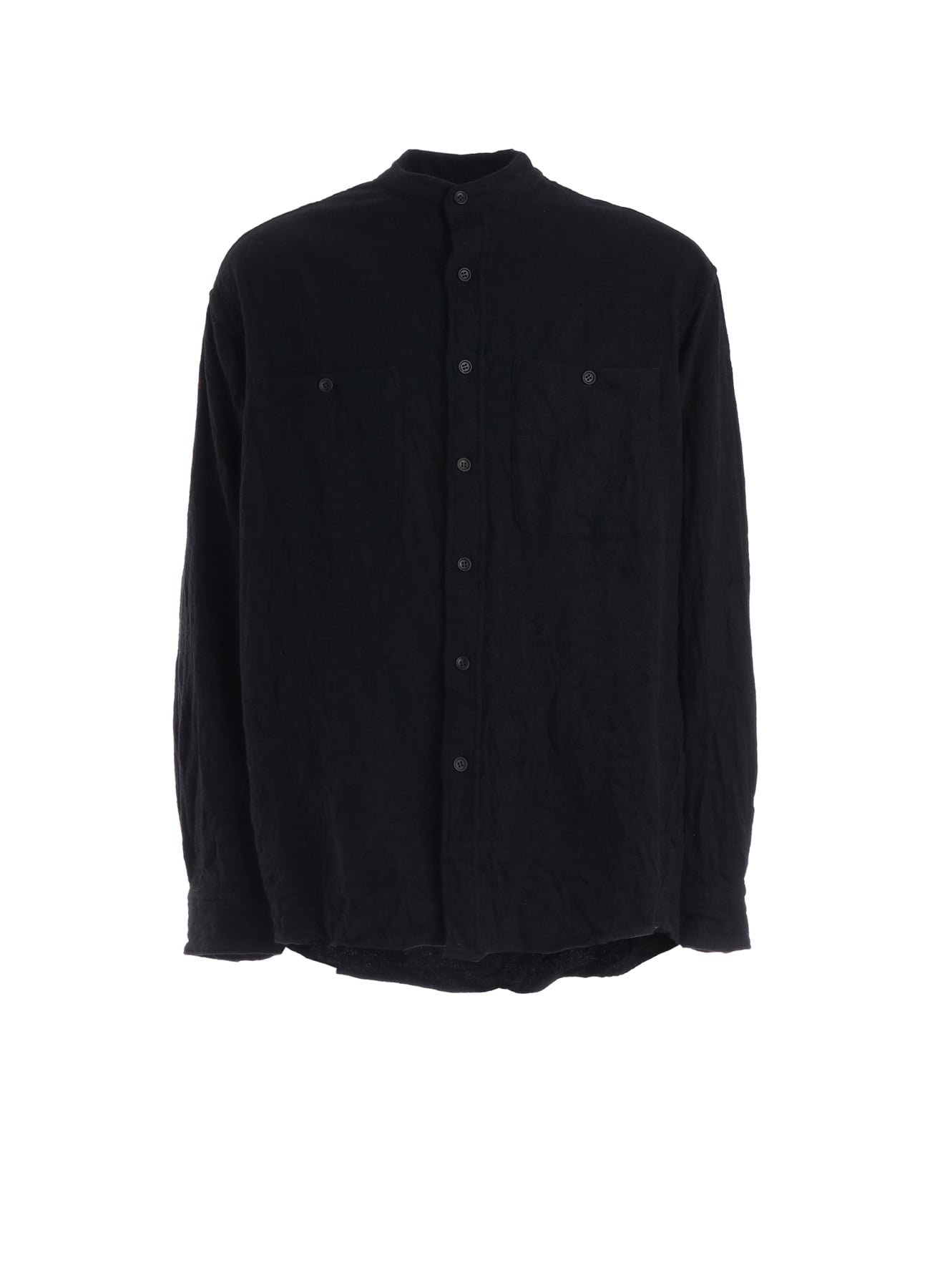 Y's for men × MASSESのコラボレーションアイテム。ライトウェイトな縮絨生地を使用したスタンドカラーシャツ。洗い加工の工程にこだわり、独特の表情と柔らかな風合いを引き出しています。フロント両胸にはボタン付きパッチポケットを配し、ワークシャツの要素をプラス。襟型やカフスにはドレスシャツのディテールを採用し、カジュアルさの中に上品さを併せ持つ仕上がりです。モデル着用画像はサンプルアイテムを使用しています。製品とサイズや風合いが異なる場合がございます。詳しくはサイズ詳細をご確認下さい。