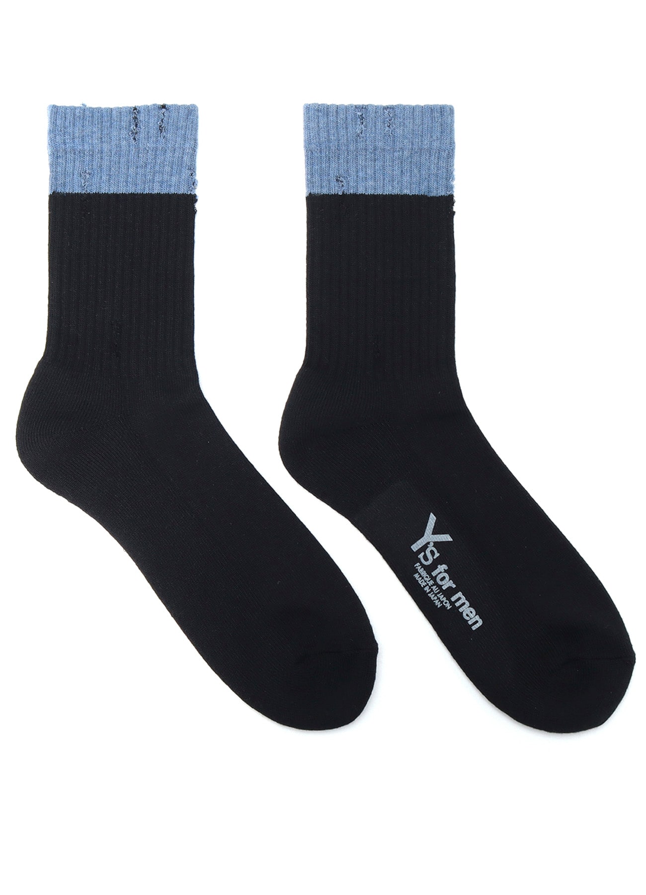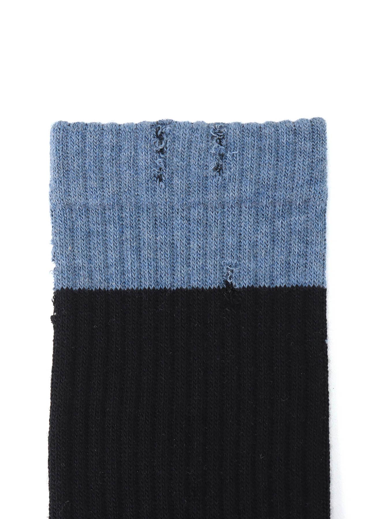 ダメージリブソックス。厚手のリブソックスのところどころに虫食い風のダメージを施しています。