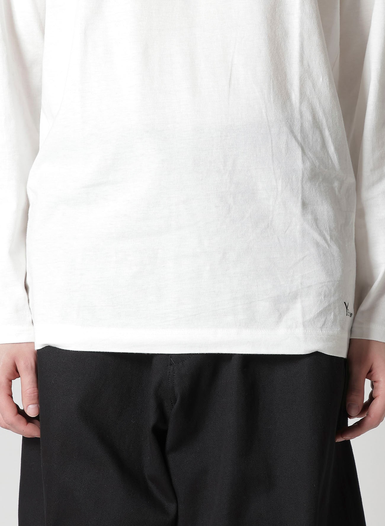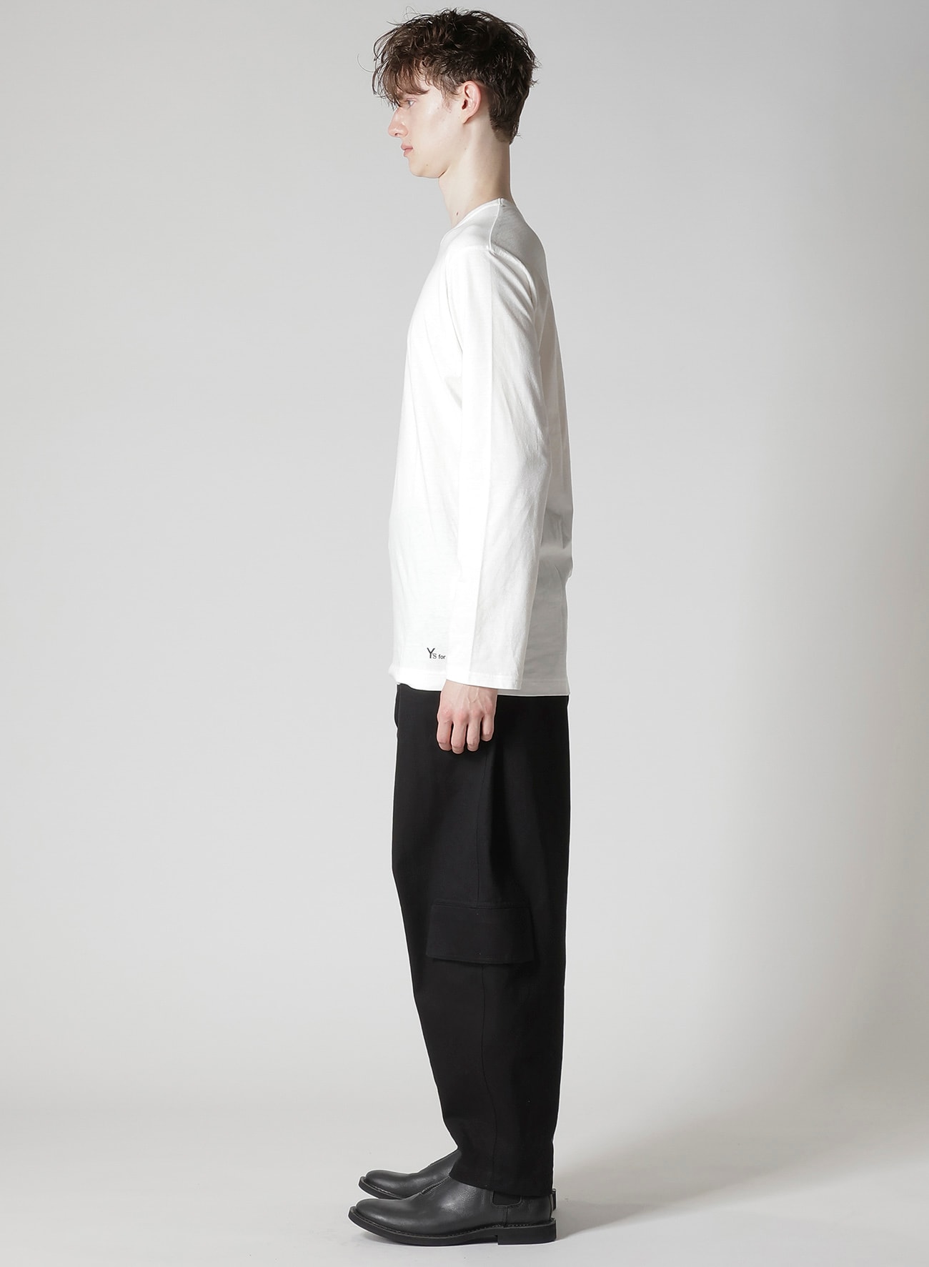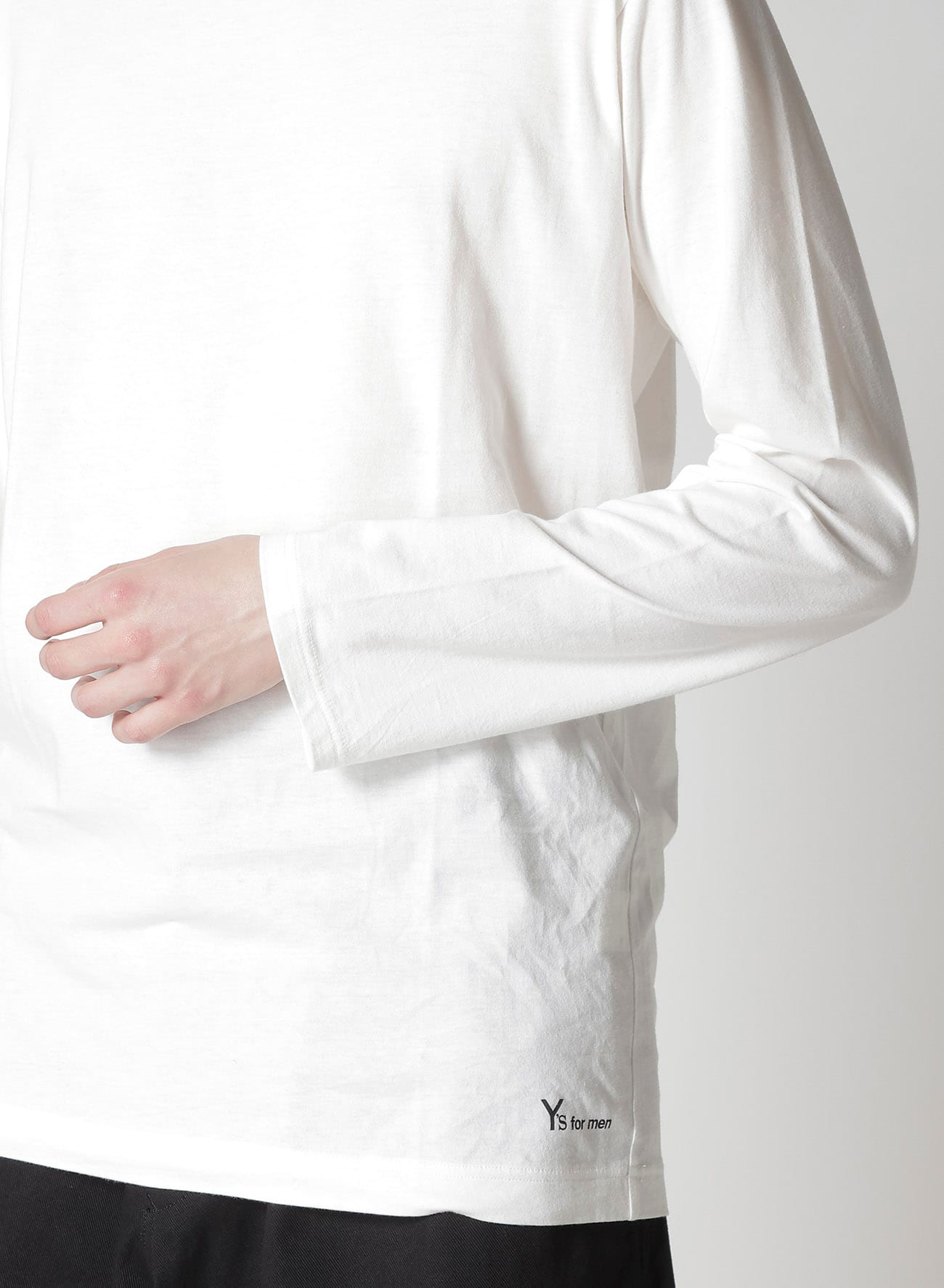 Y's for menロゴ入りコットンロングTシャツ。適度なハリと美しい目面が特徴のコットン天竺生地をシリコン系柔軟剤で仕上げることで風合い、着心地も良く仕上げています。前身頃の左裾には「Y's for men」のロゴをさりげなく配し、スタイリングのアクセントに。モデル着用画像はサンプルアイテムを使用しています。製品とサイズや風合いが異なる場合がございます。詳しくはサイズ詳細をご確認下さい。