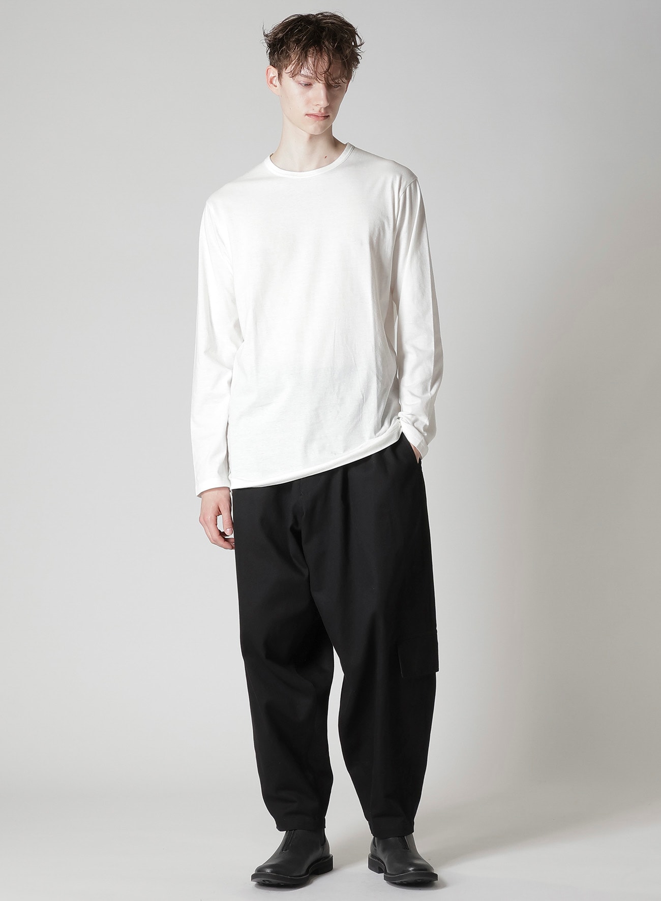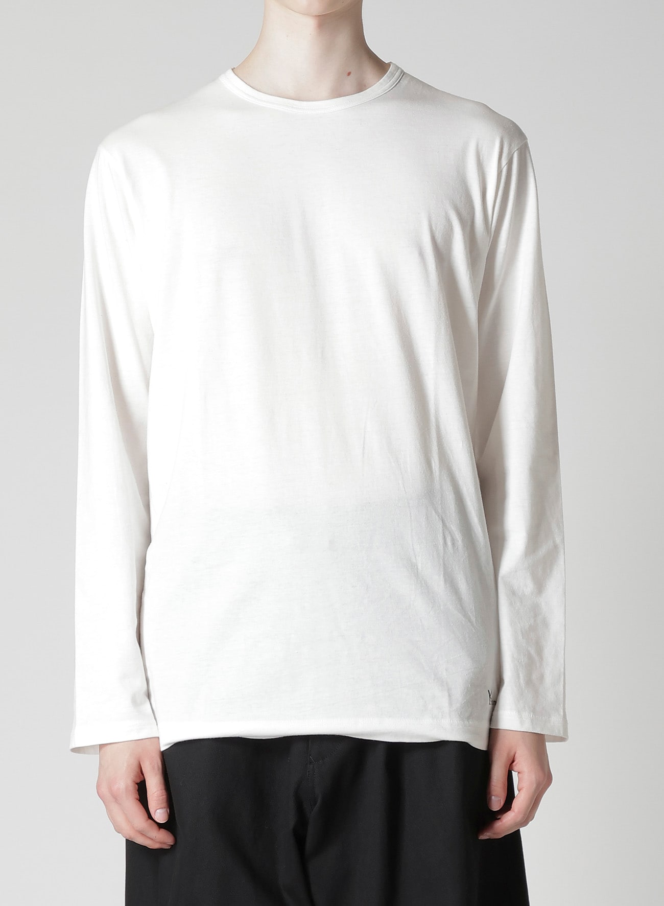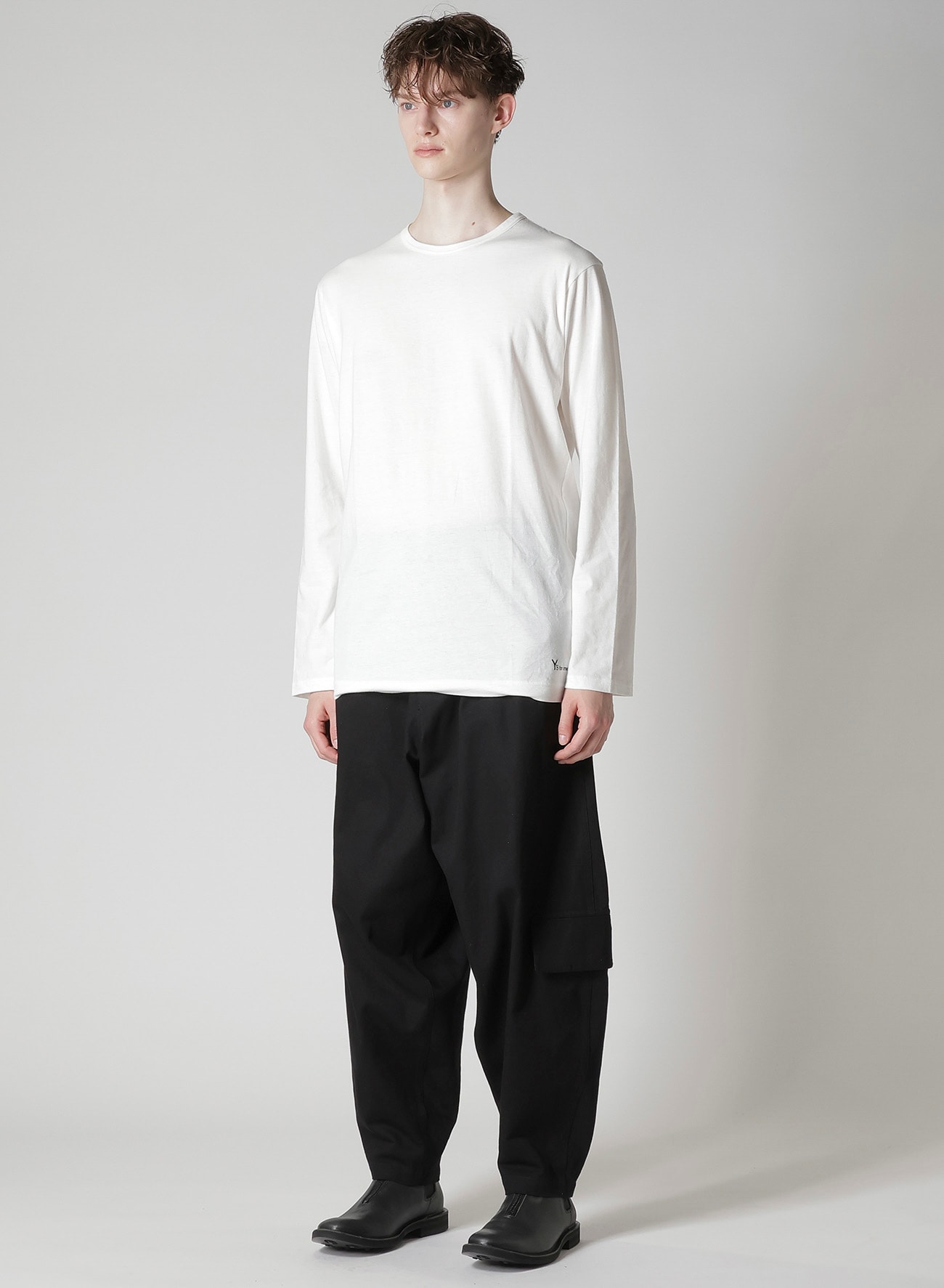 Y's for menロゴ入りコットンロングTシャツ。適度なハリと美しい目面が特徴のコットン天竺生地をシリコン系柔軟剤で仕上げることで風合い、着心地も良く仕上げています。前身頃の左裾には「Y's for men」のロゴをさりげなく配し、スタイリングのアクセントに。モデル着用画像はサンプルアイテムを使用しています。製品とサイズや風合いが異なる場合がございます。詳しくはサイズ詳細をご確認下さい。